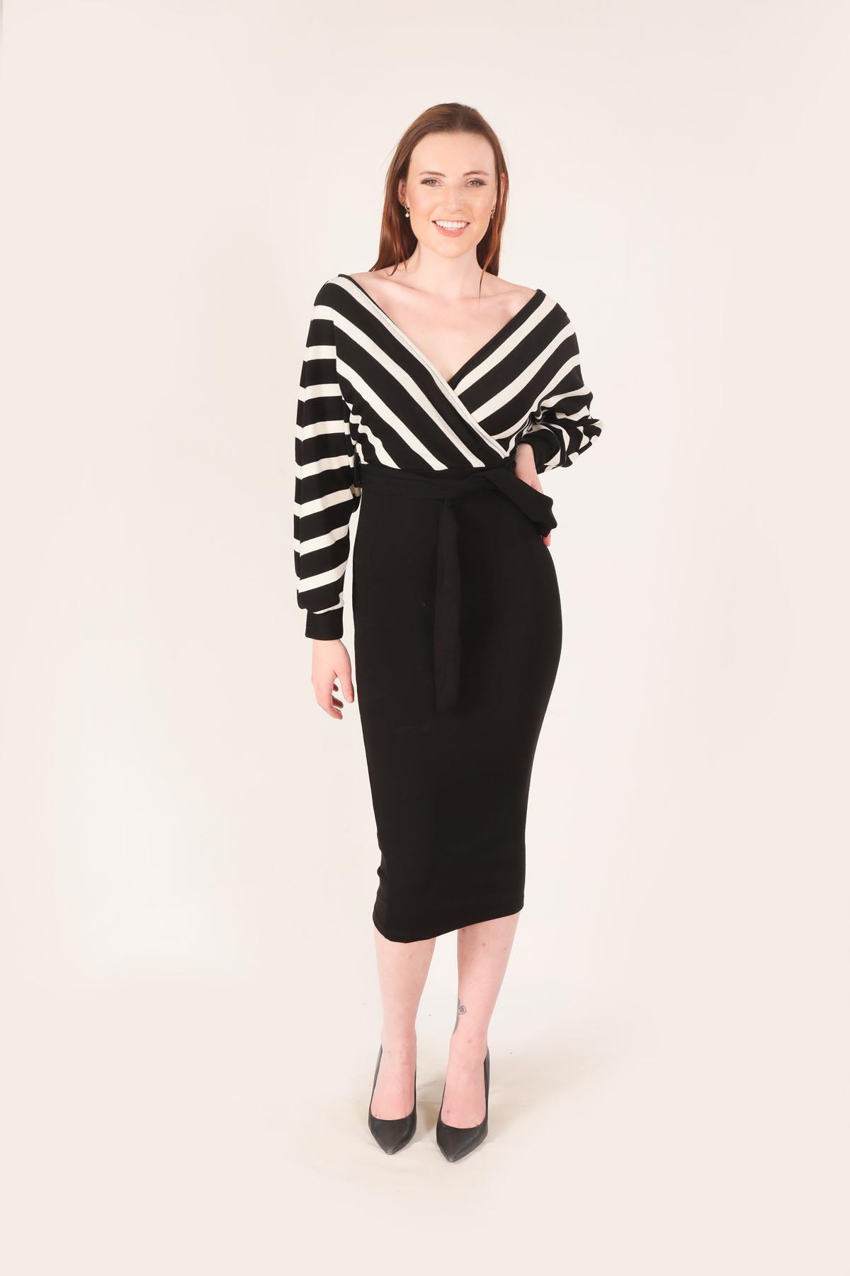 Siyah Dantelli Kemer Detay Elbise 35518 - RAYS Siyah Dantelli Kemer Detay Elbise 35518 - RAYS (1)