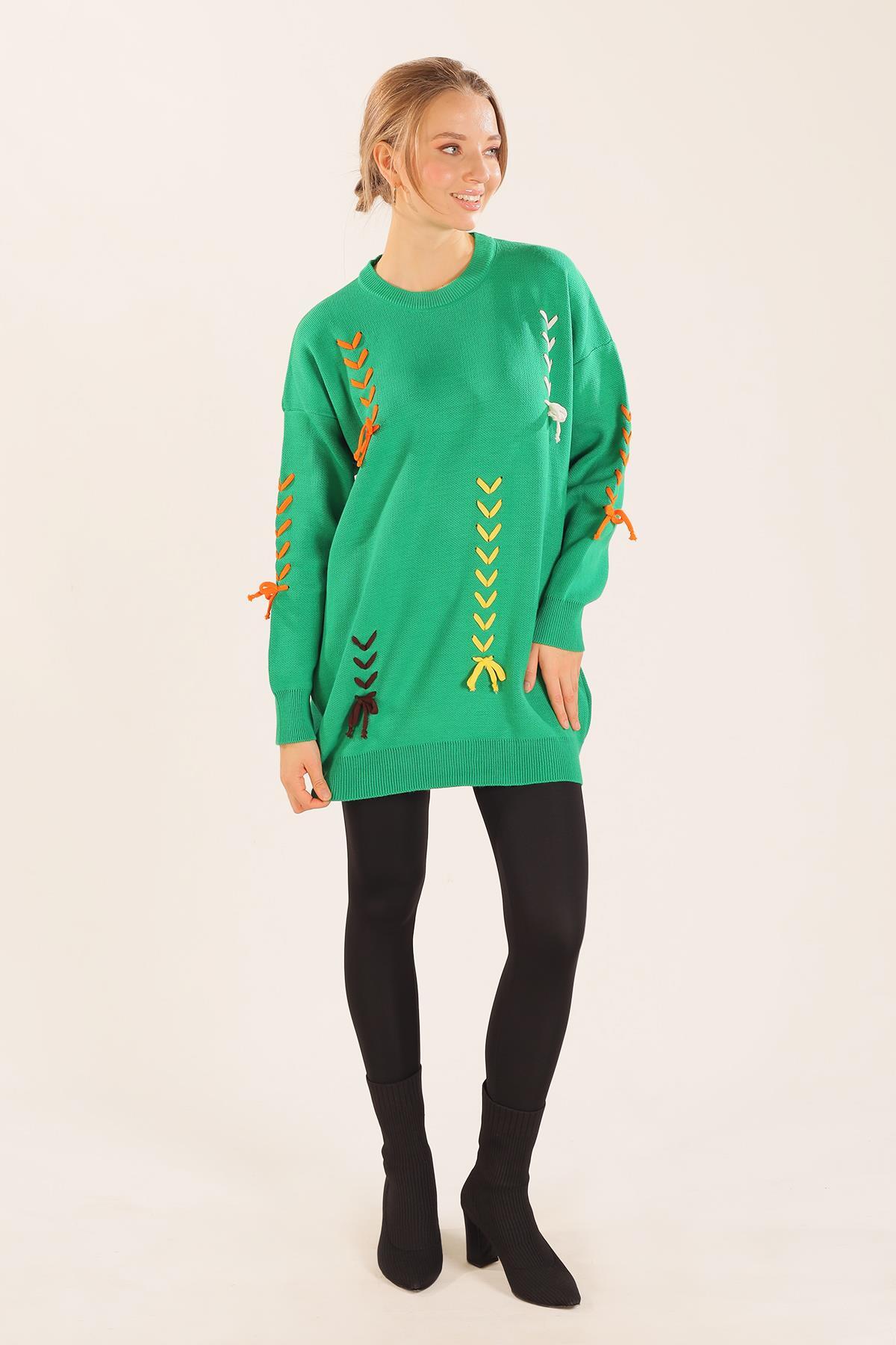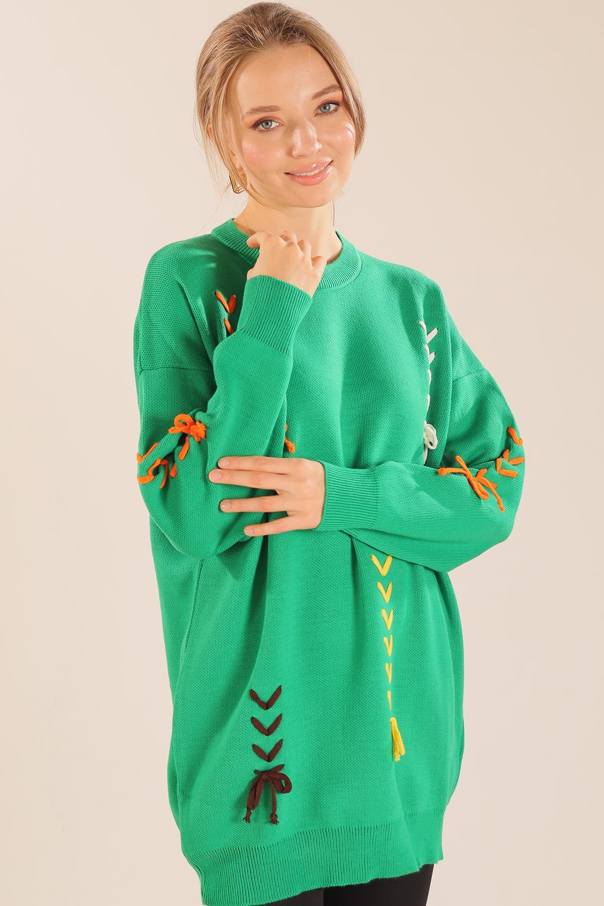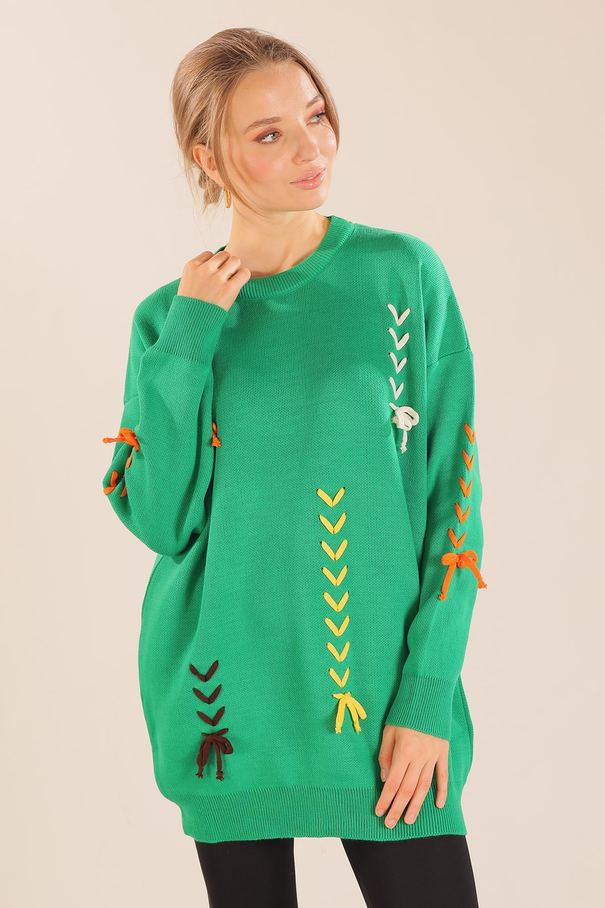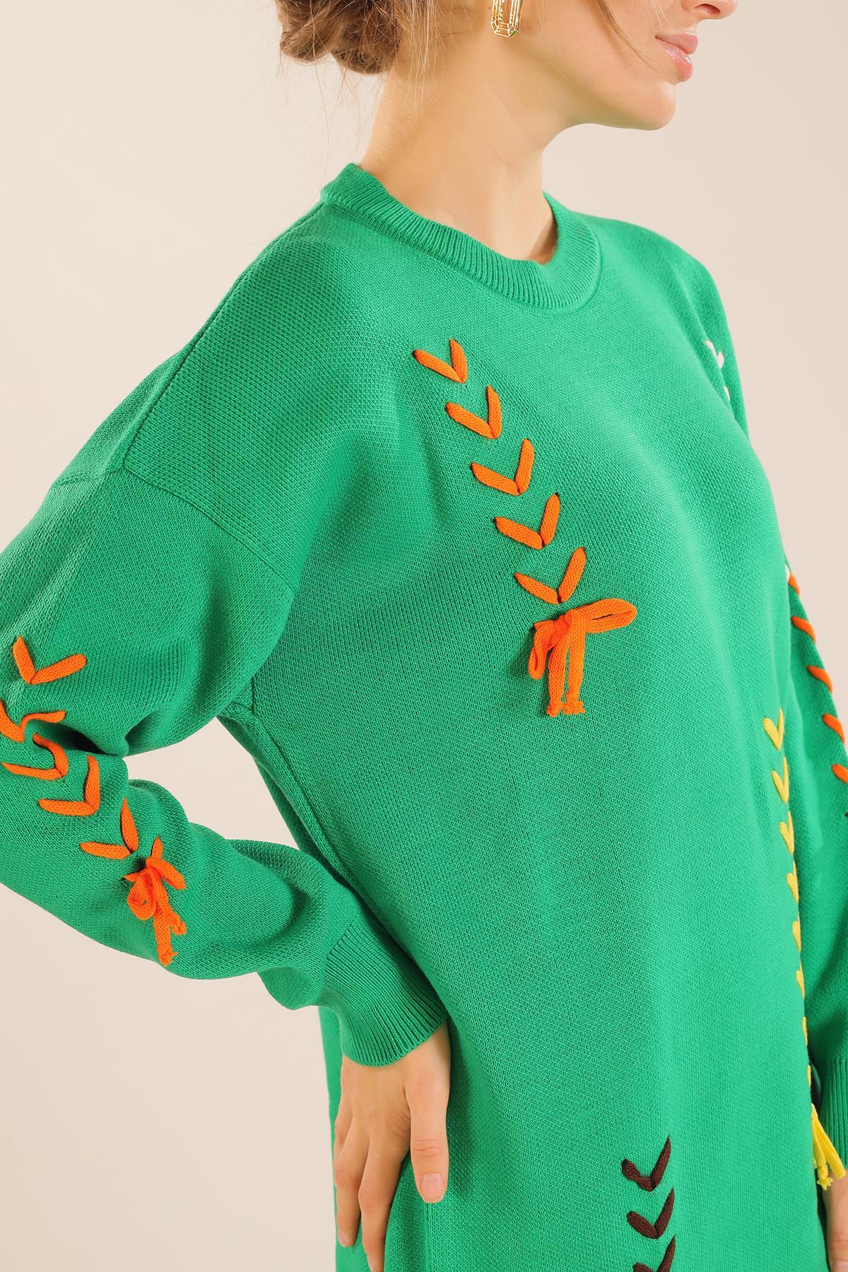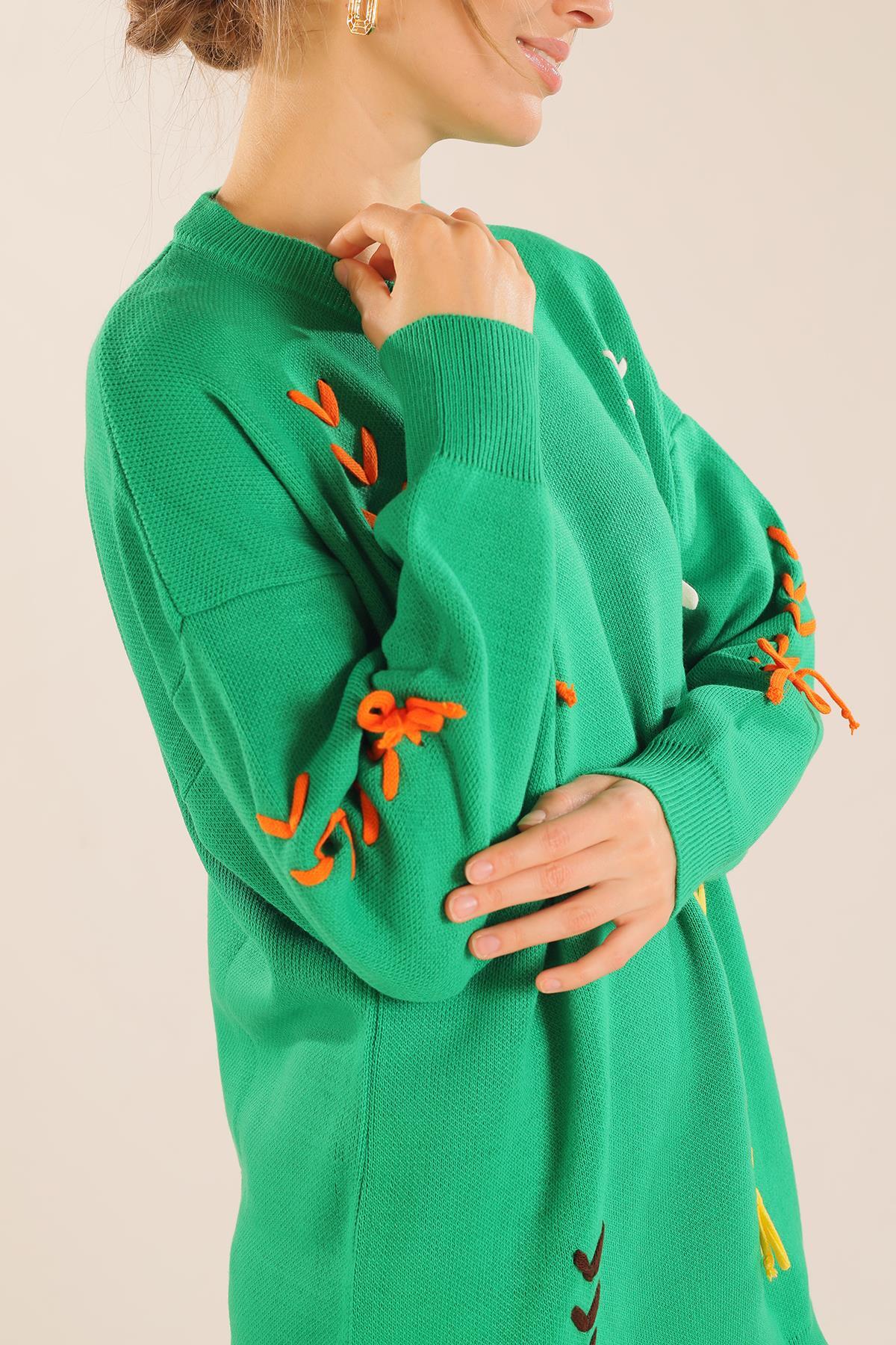 Benetton Yeşili İp Nakışlı Kazak 2024
