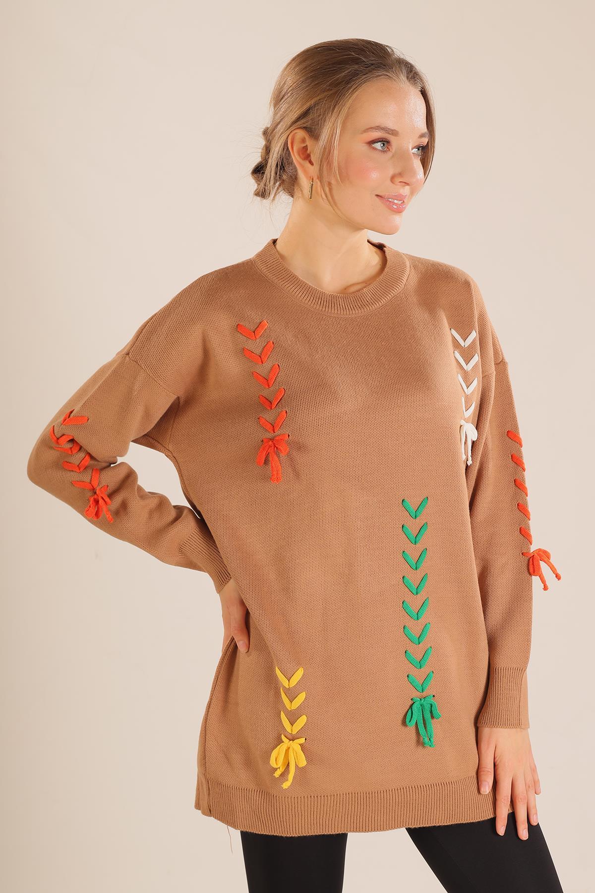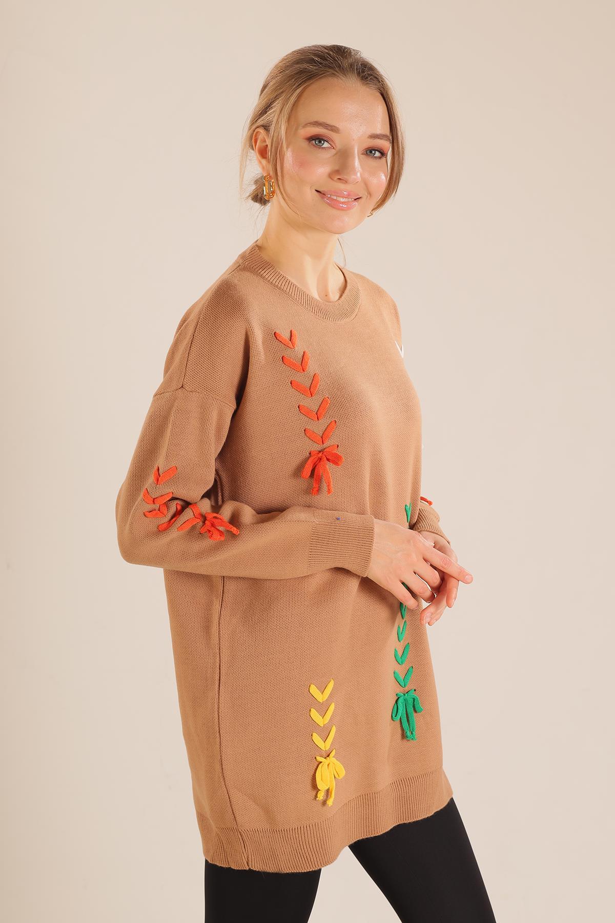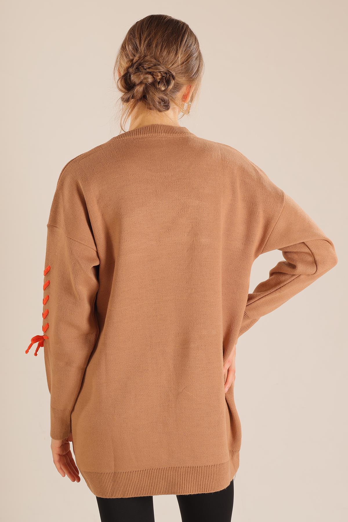 Kahve Kalp Nakışlı Kısa Kazak 2337 - RAYS Kahve Kalp Nakışlı Kısa Kazak 2337 - RAYS (1)