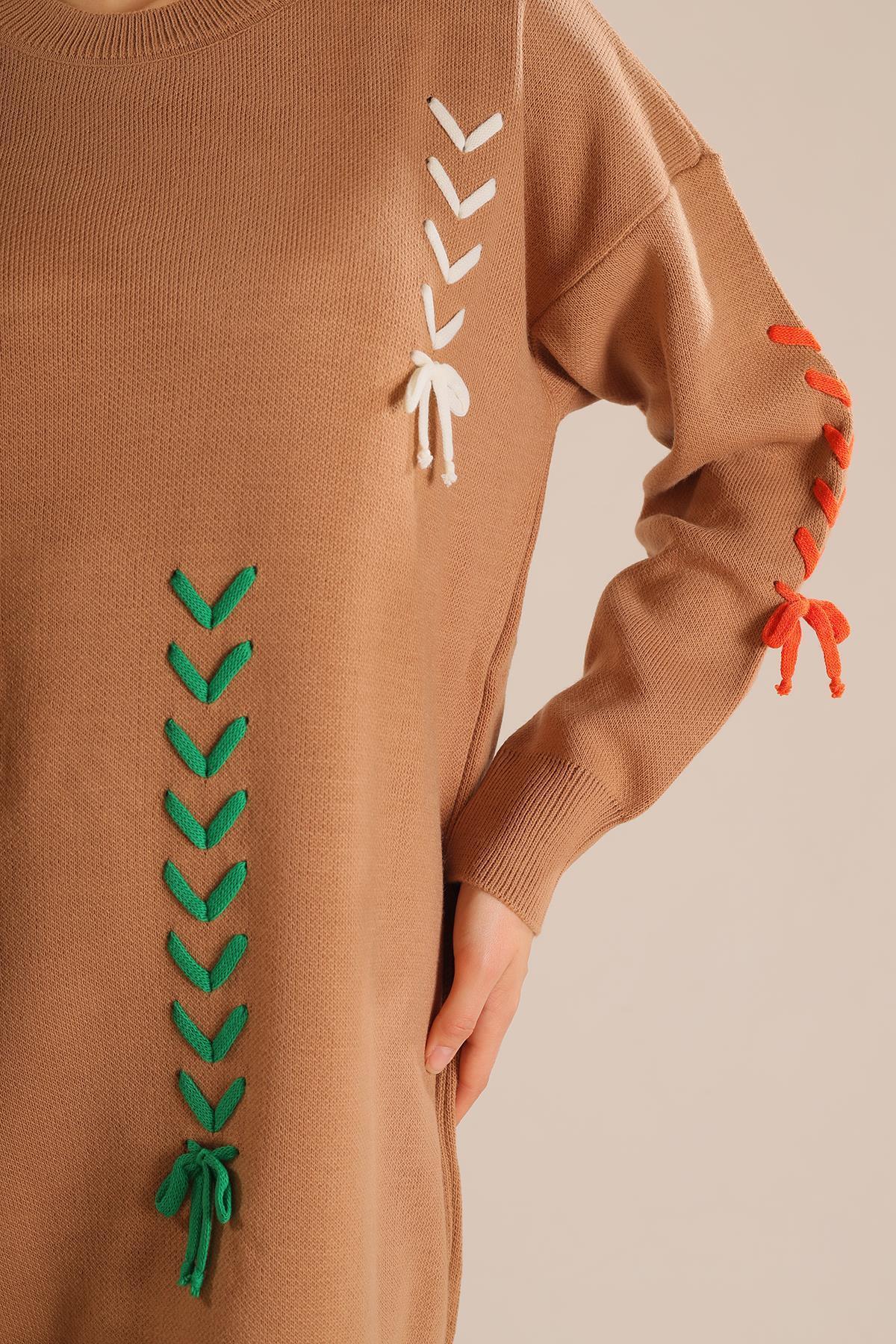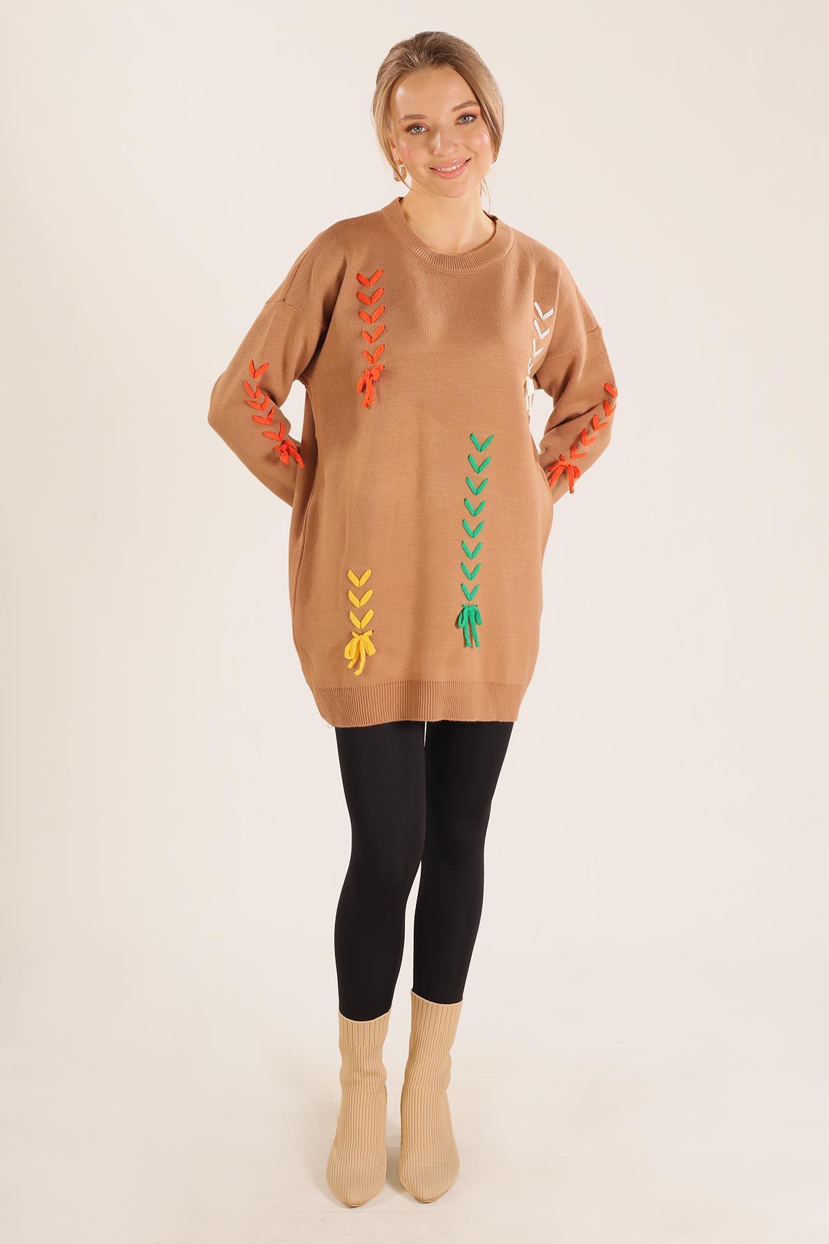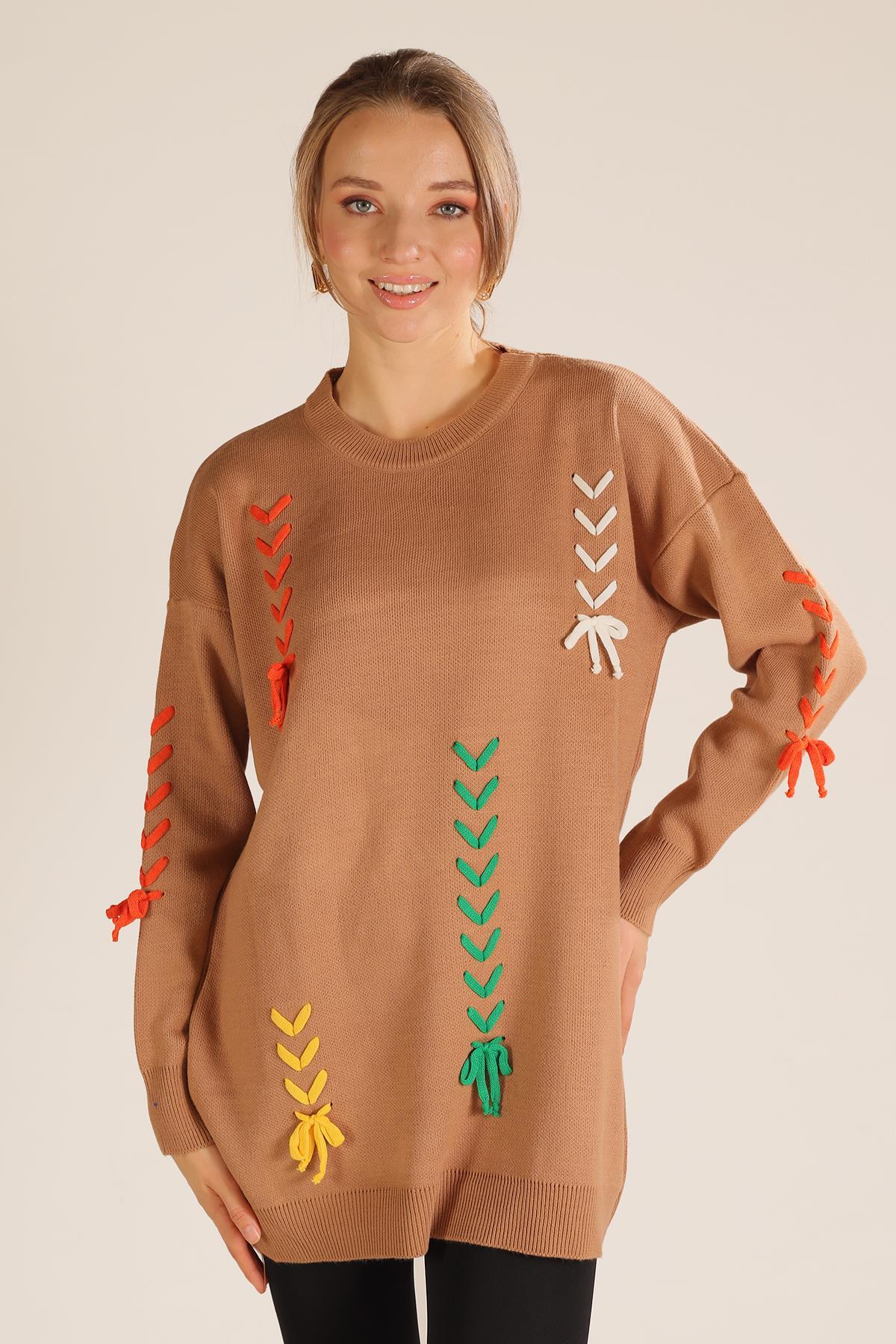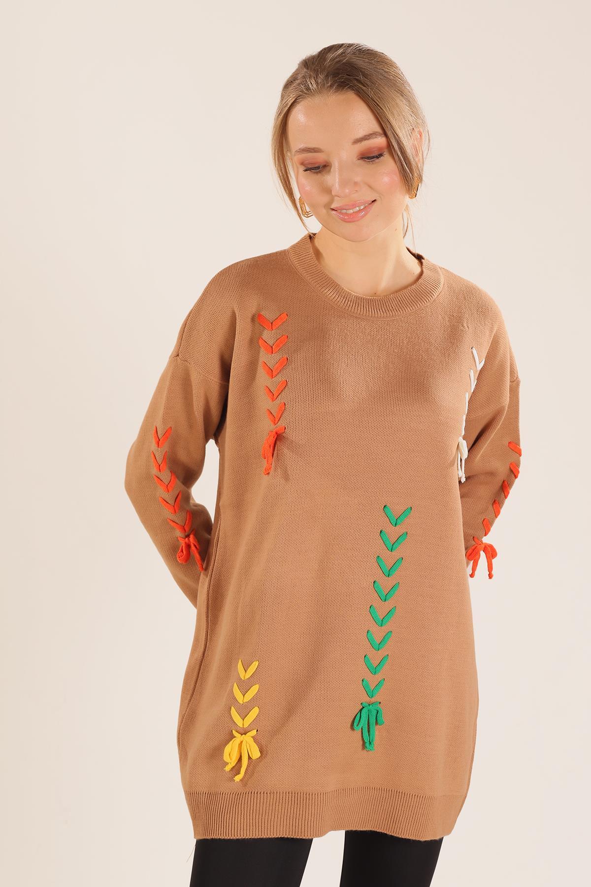 Kahve Kalp Nakışlı Kısa Kazak 2337 - RAYS Kahve Kalp Nakışlı Kısa Kazak 2337 - RAYS (1)