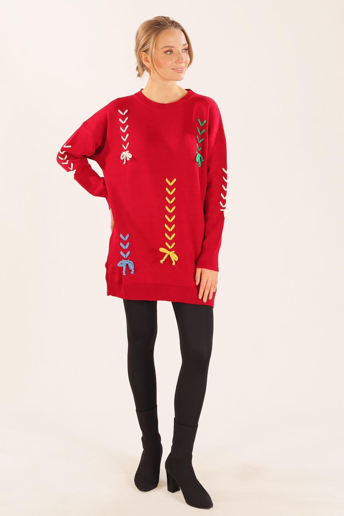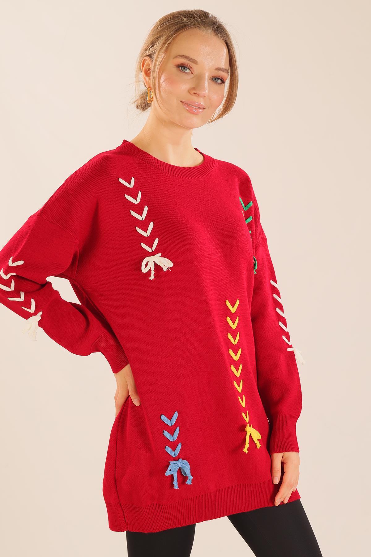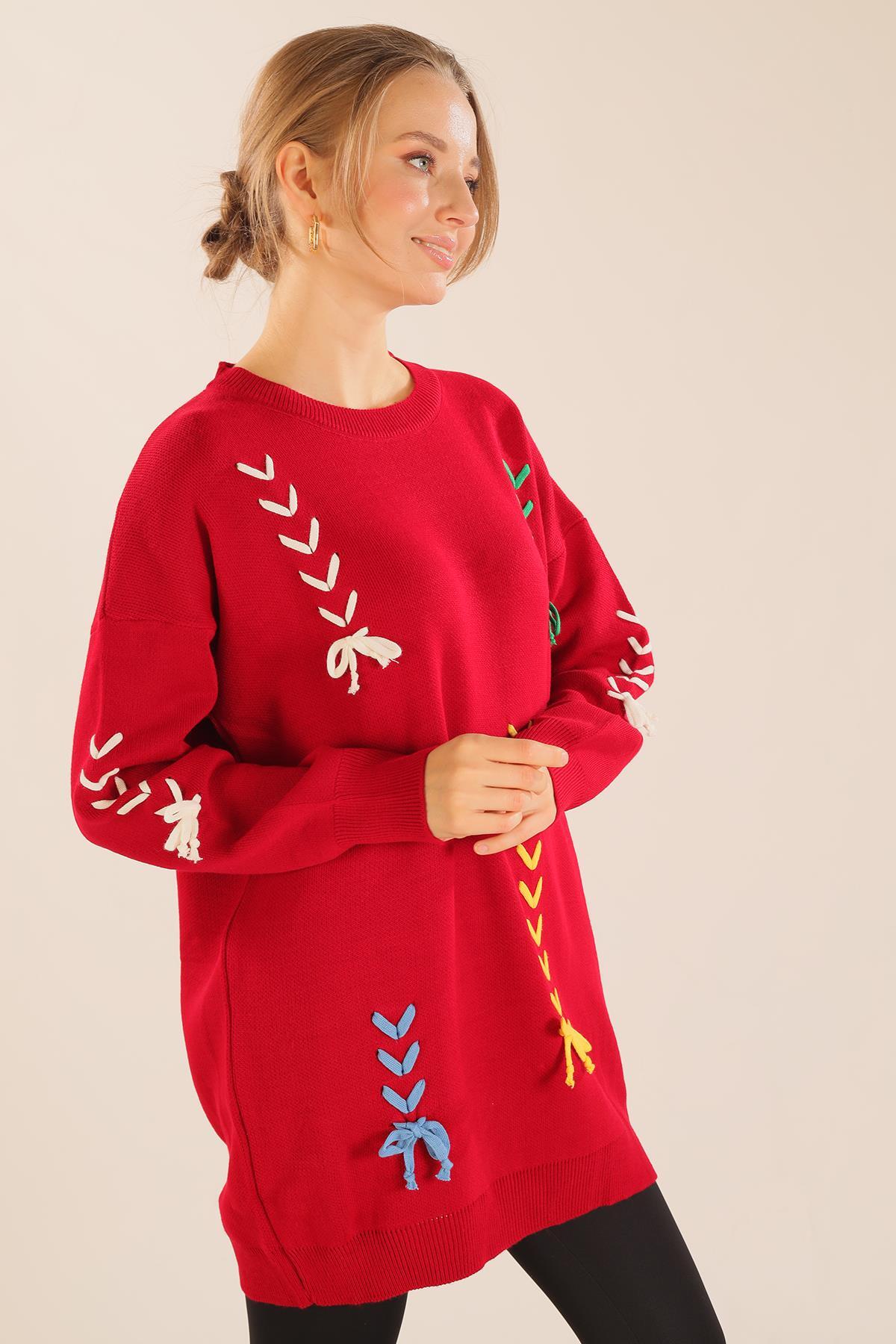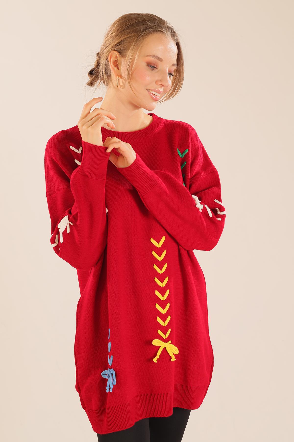 Siyah-Kırmızı Yıldız Baskılı Oversize Kazak 2474 - RAYS Siyah-Kırmızı Yıldız Baskılı Oversize Kazak 2474 - RAYS (1)