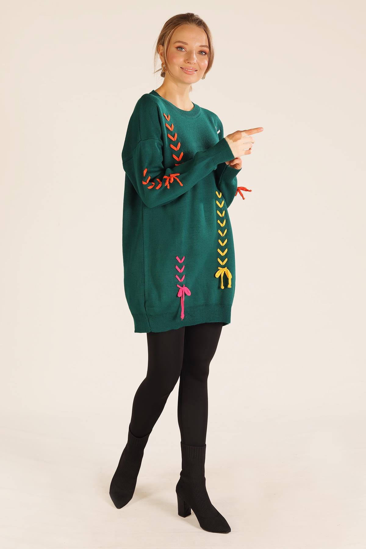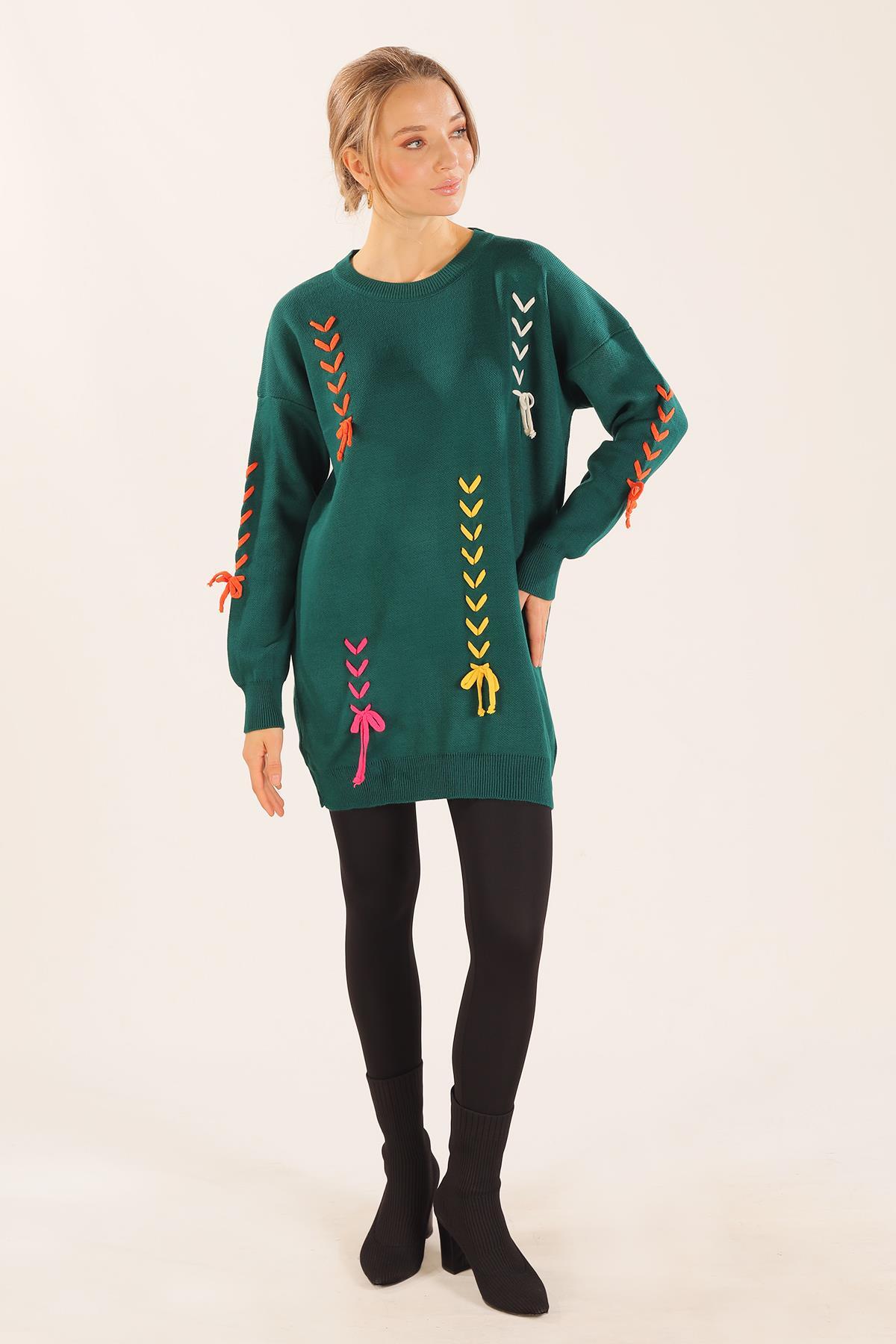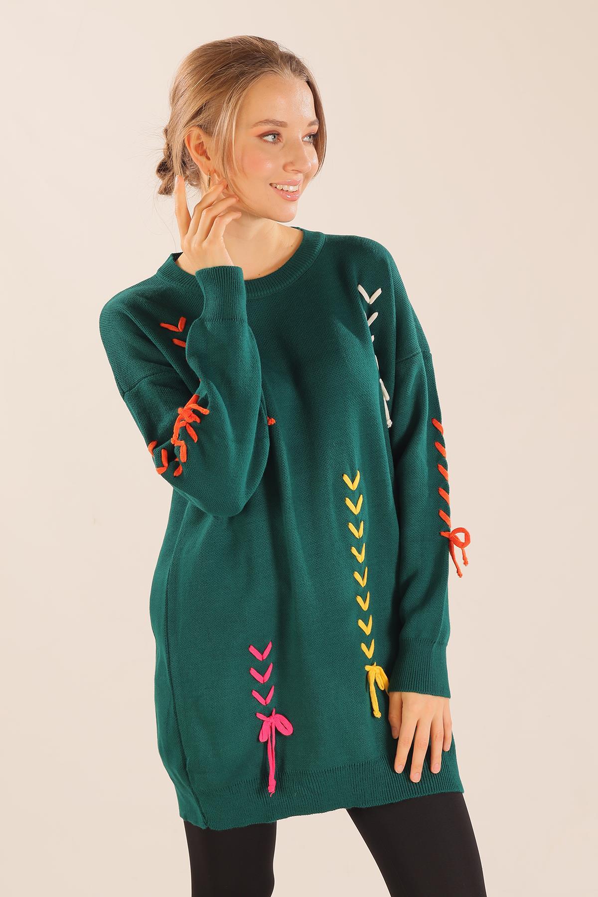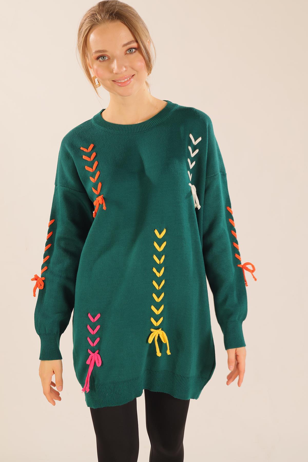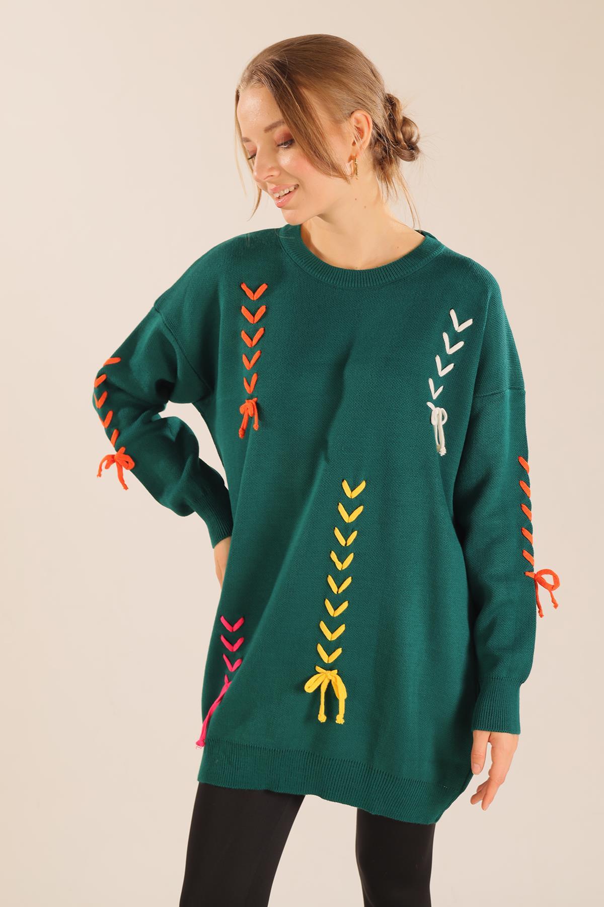 Kahve Kalp Nakışlı Kısa Kazak 2337 - RAYS Kahve Kalp Nakışlı Kısa Kazak 2337 - RAYS (1)