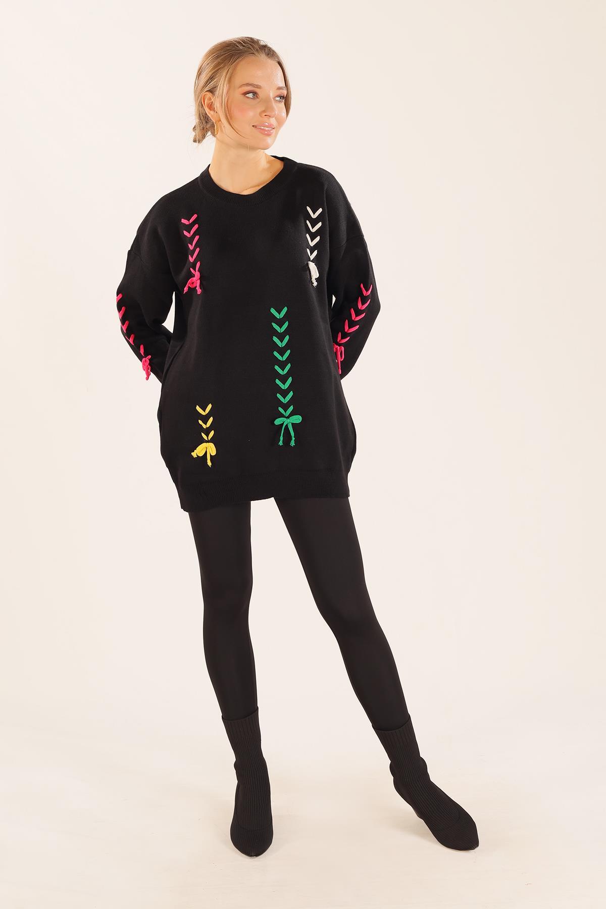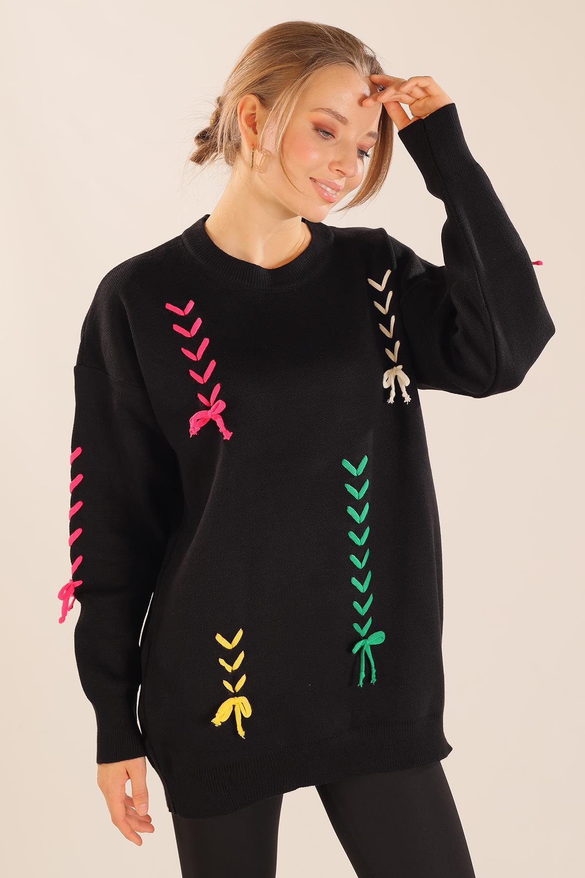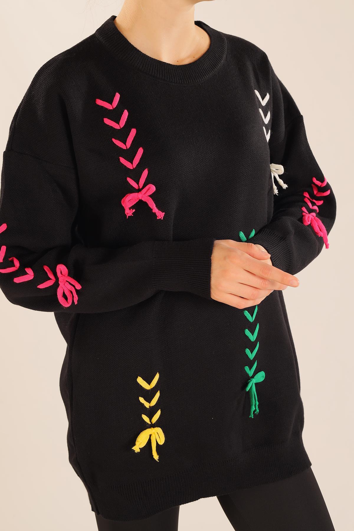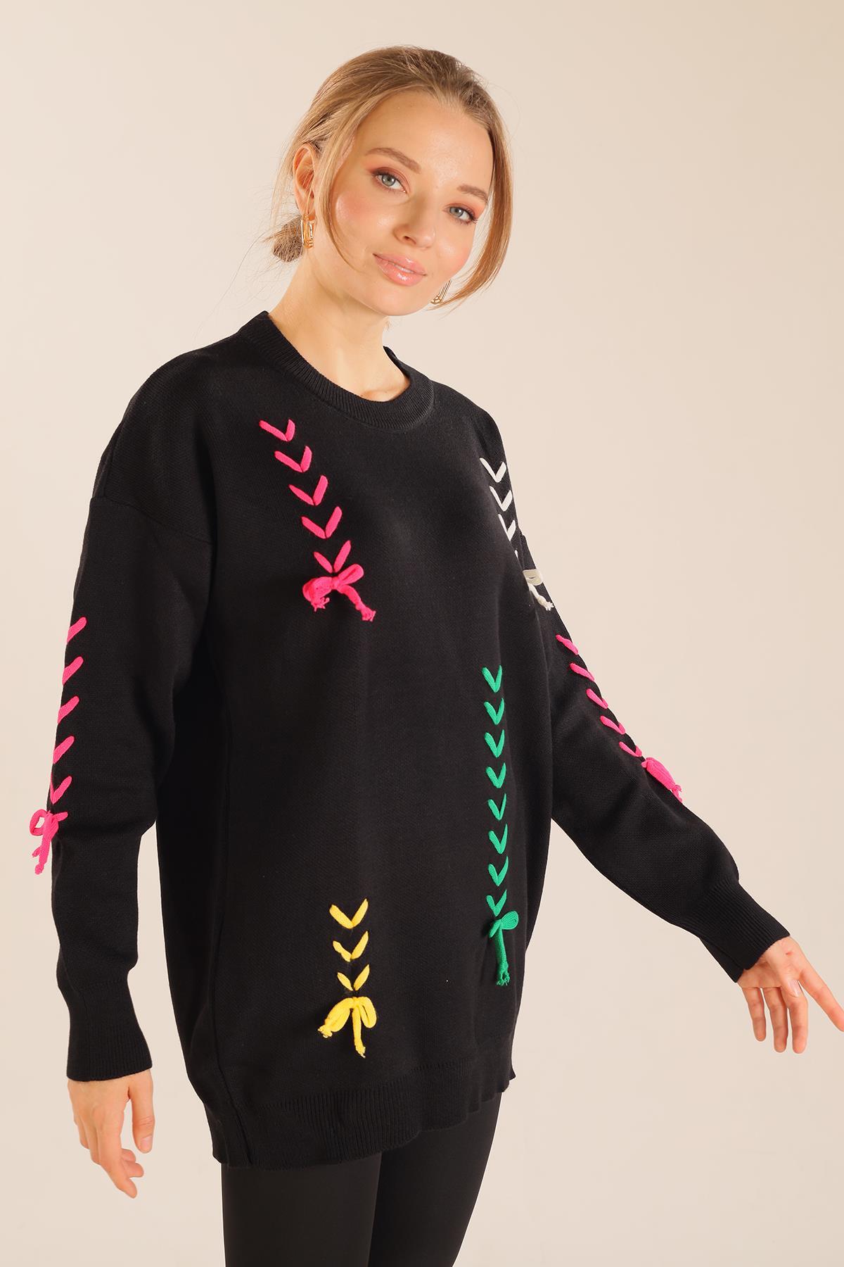 Siyah İp Nakışlı Kazak 2024