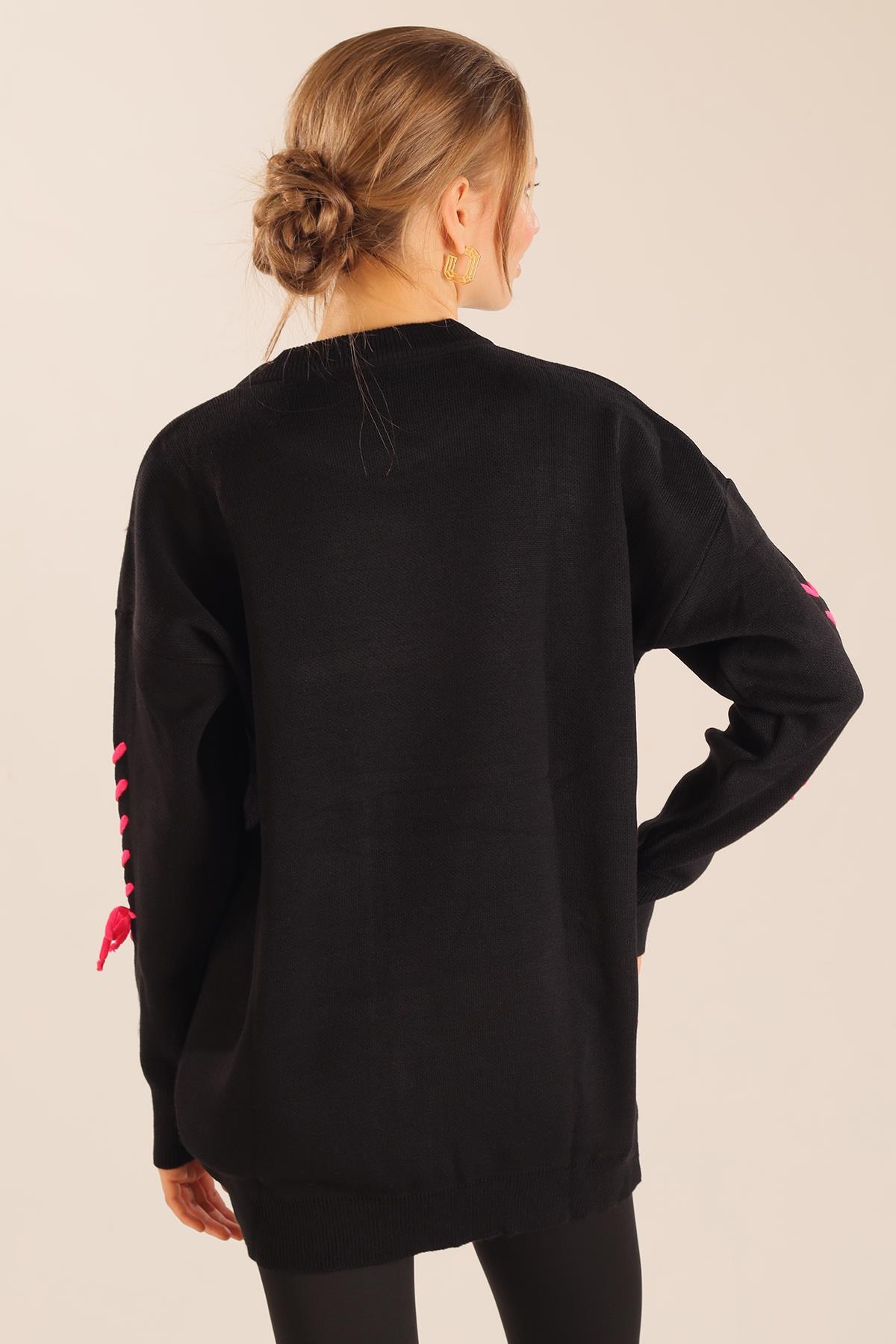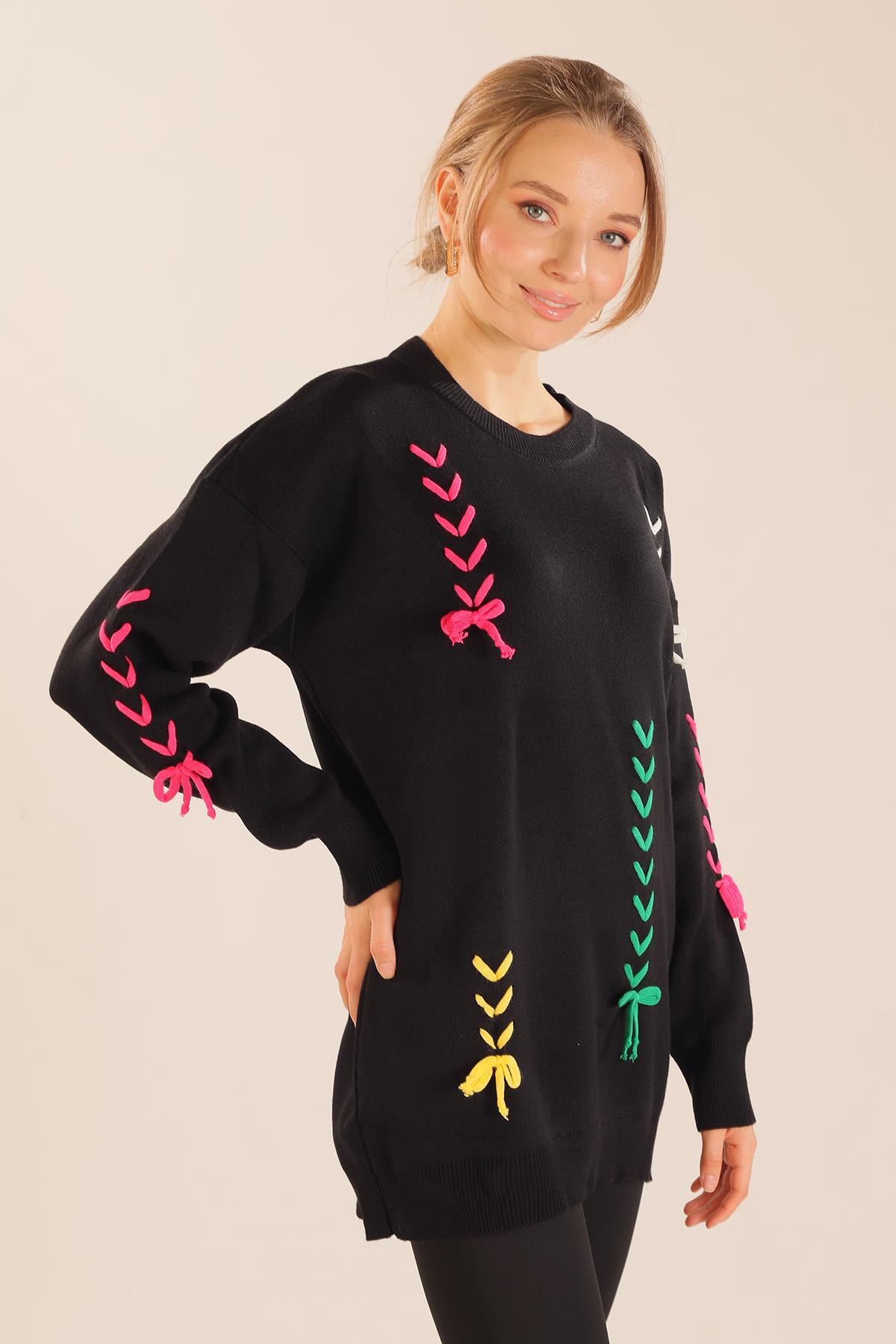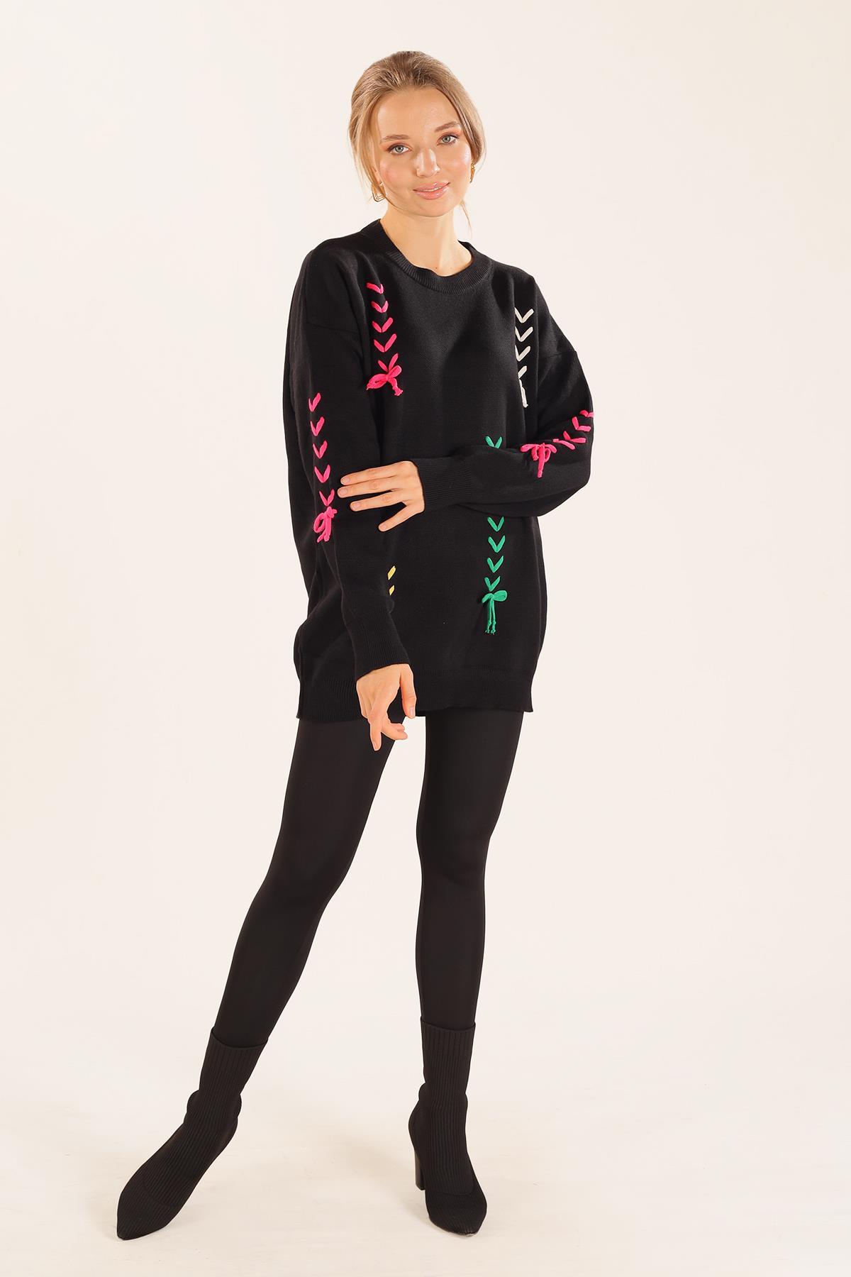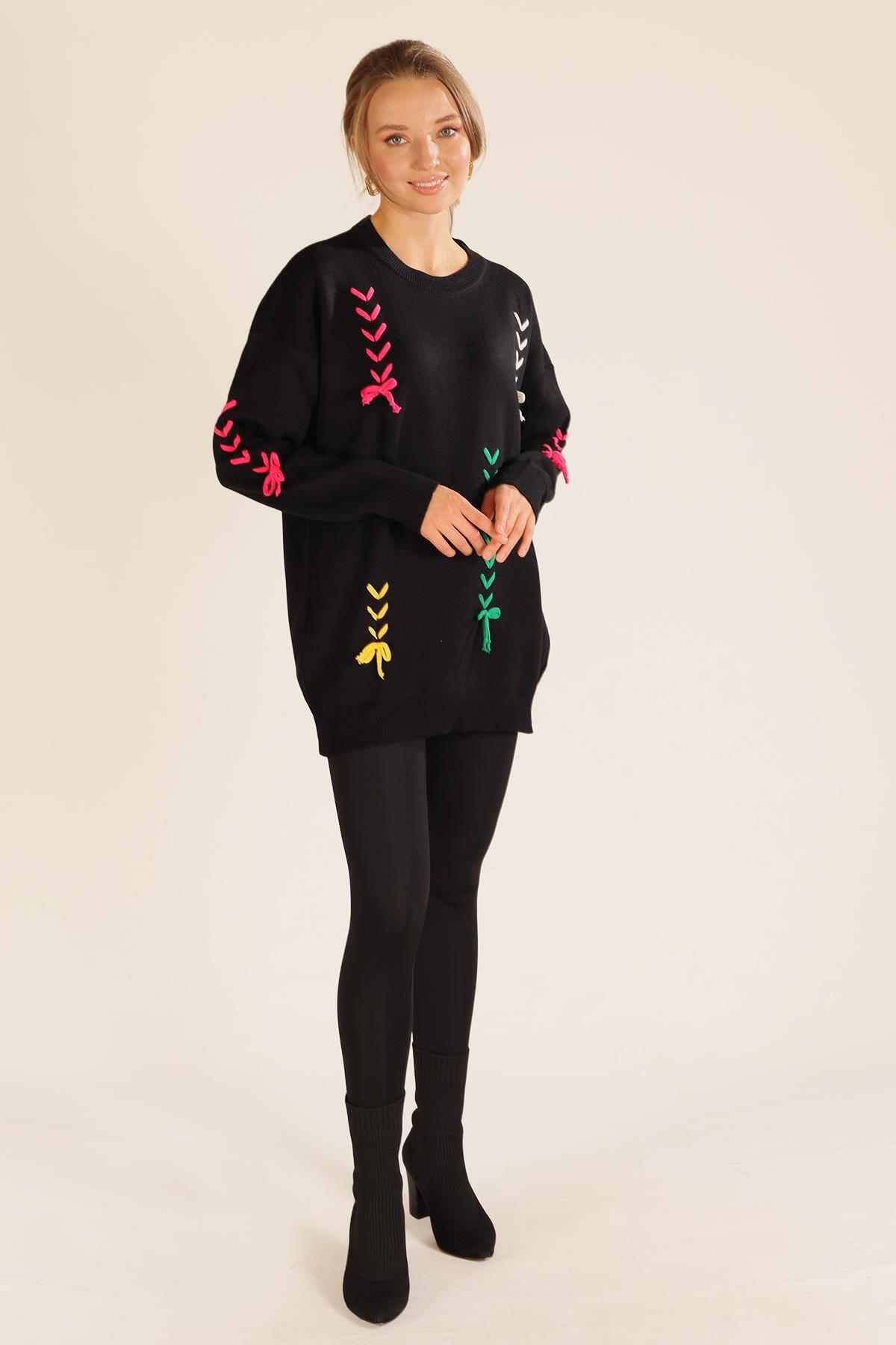 Siyah İp Nakışlı Kazak 2024