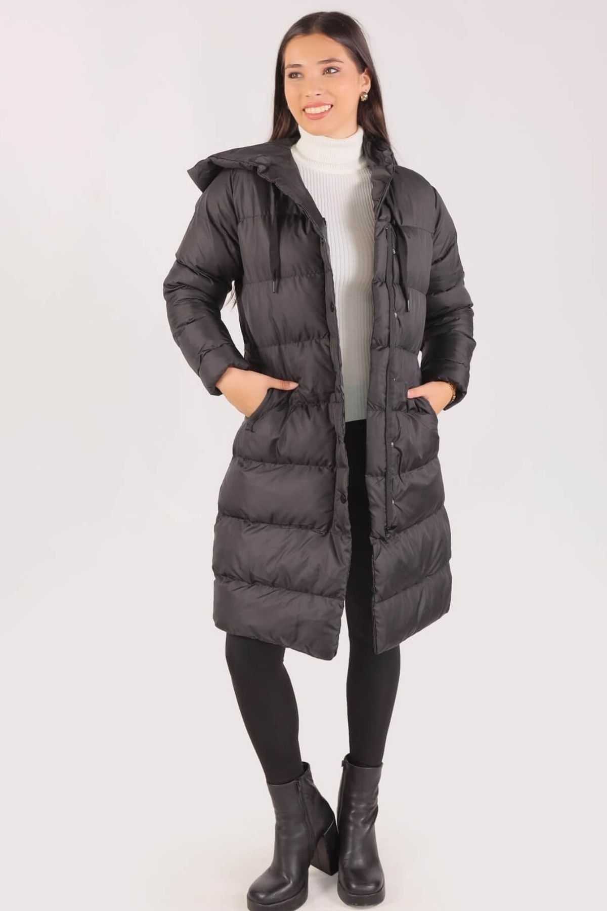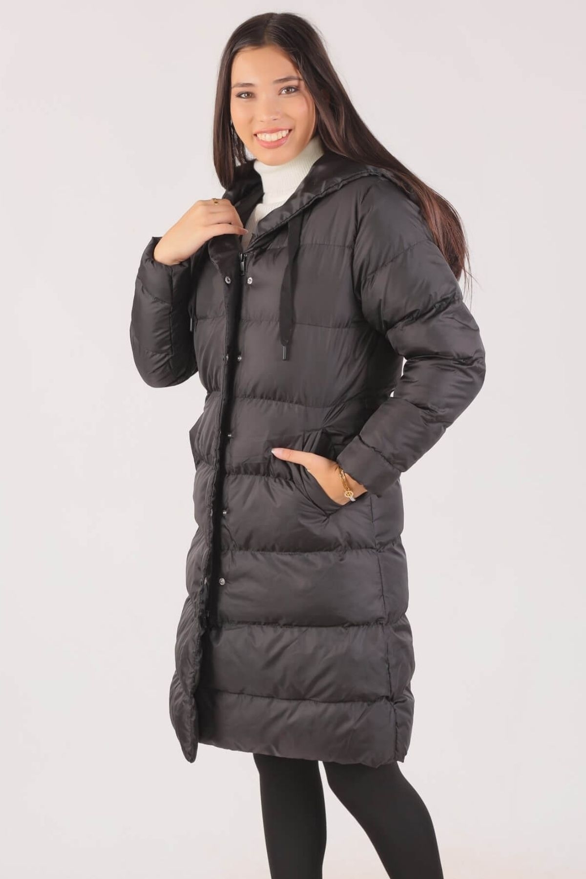 Siyah Oversize Kapüşonlu Uzun Mont 2024
