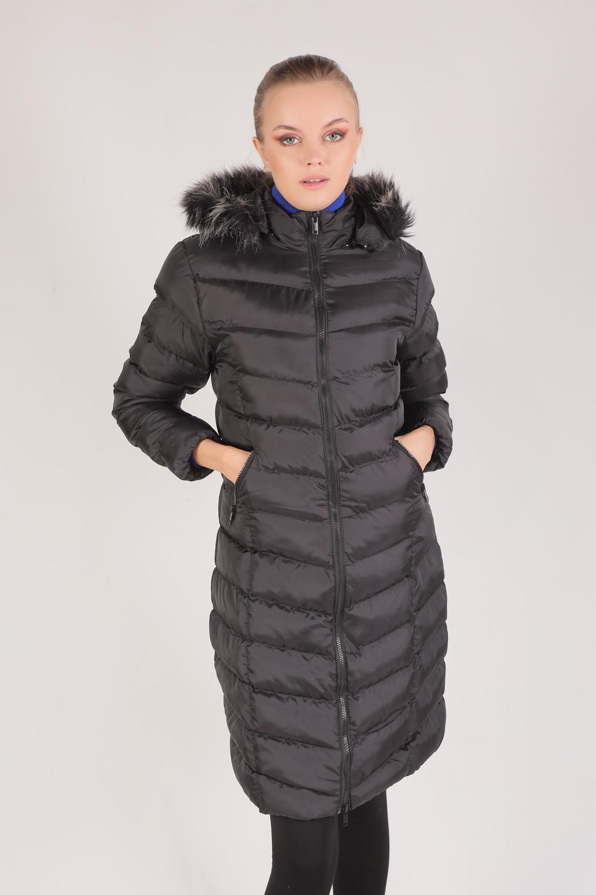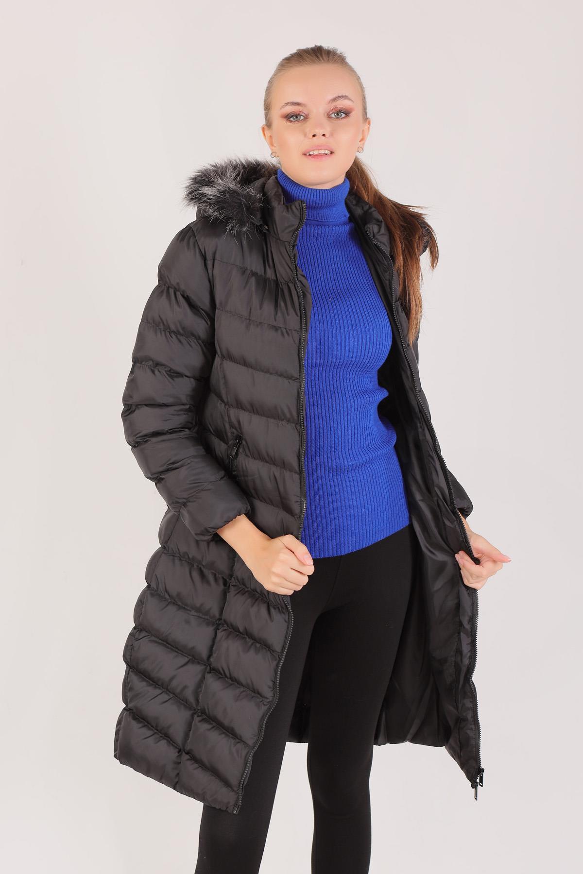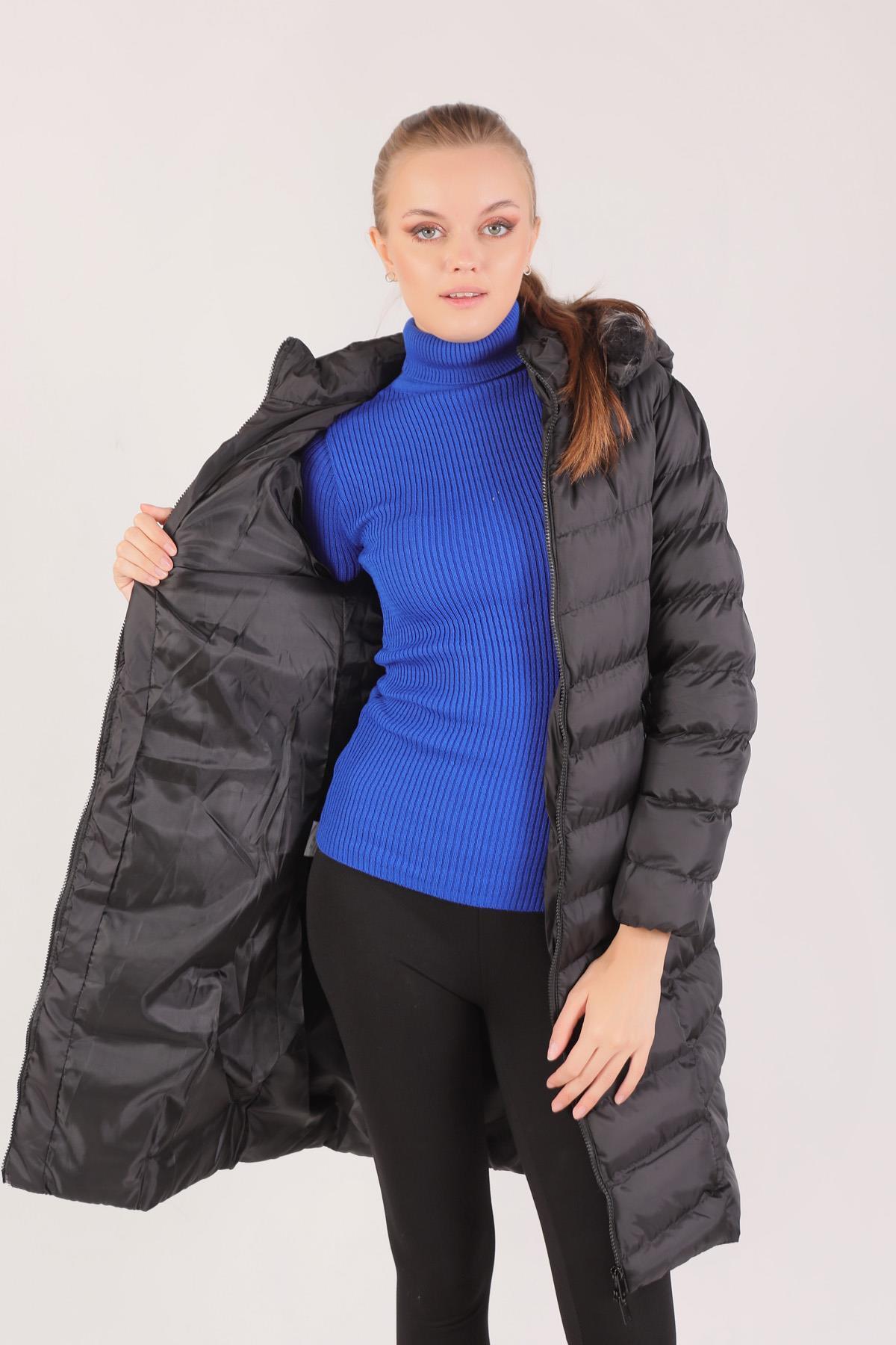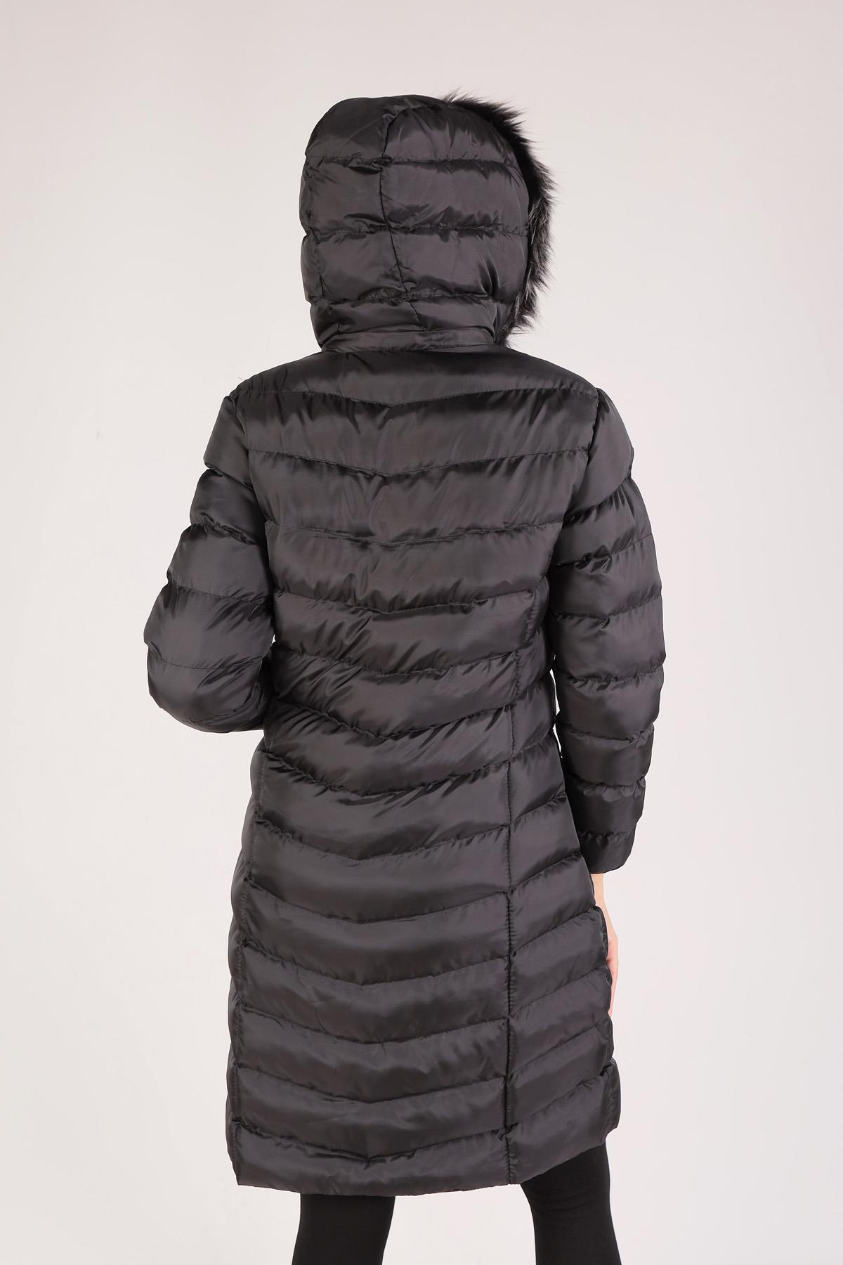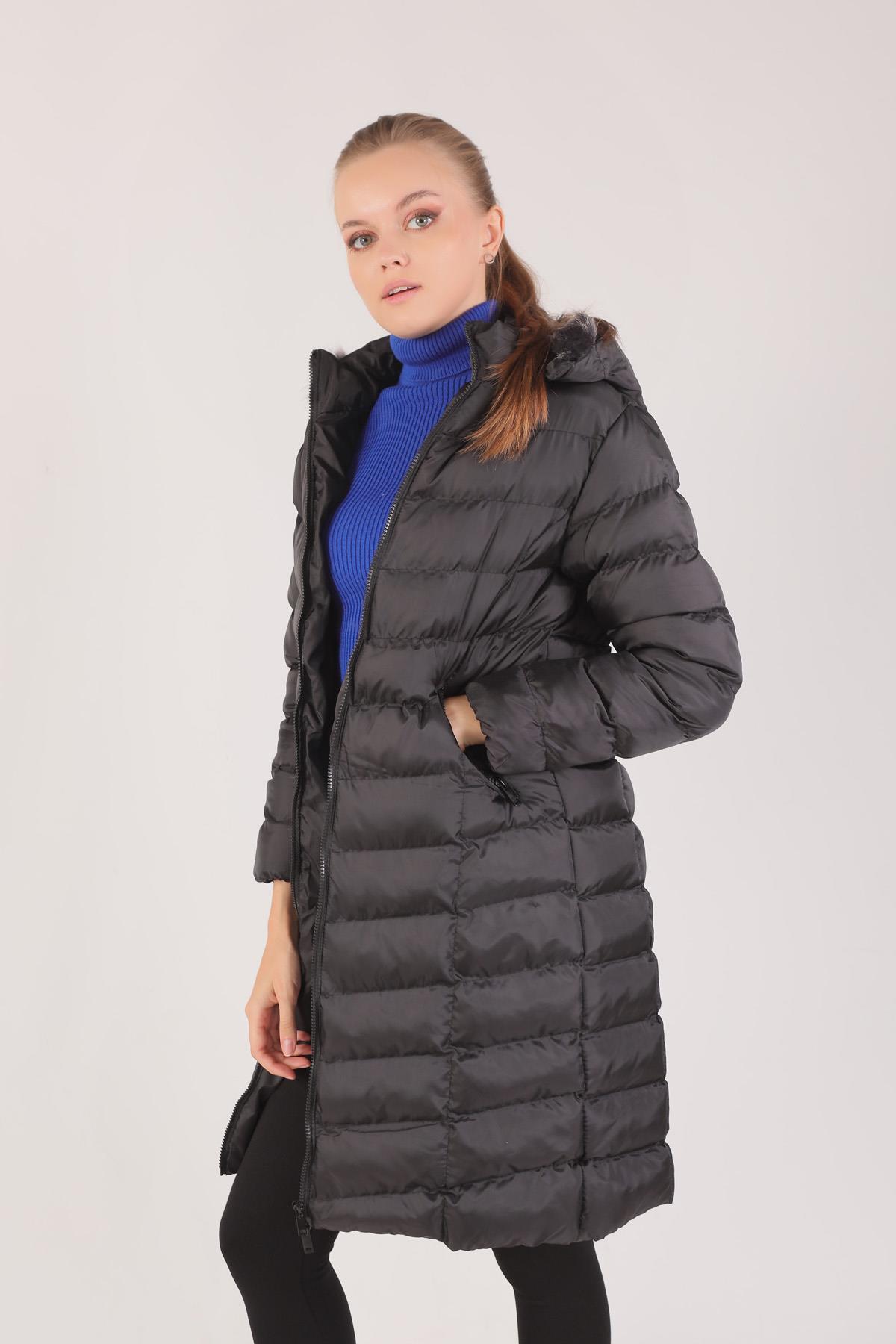 Siyah Kemer Detay Kapüşonlu Mont 2025