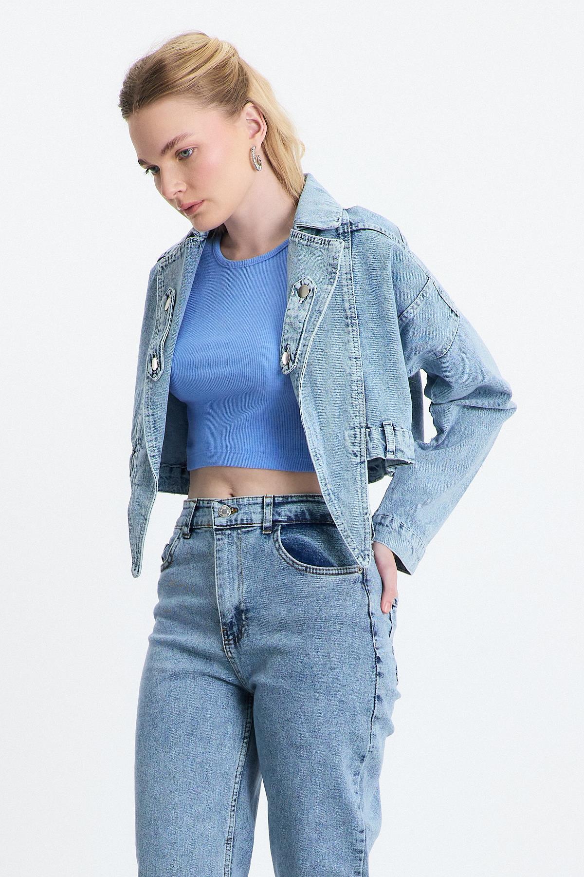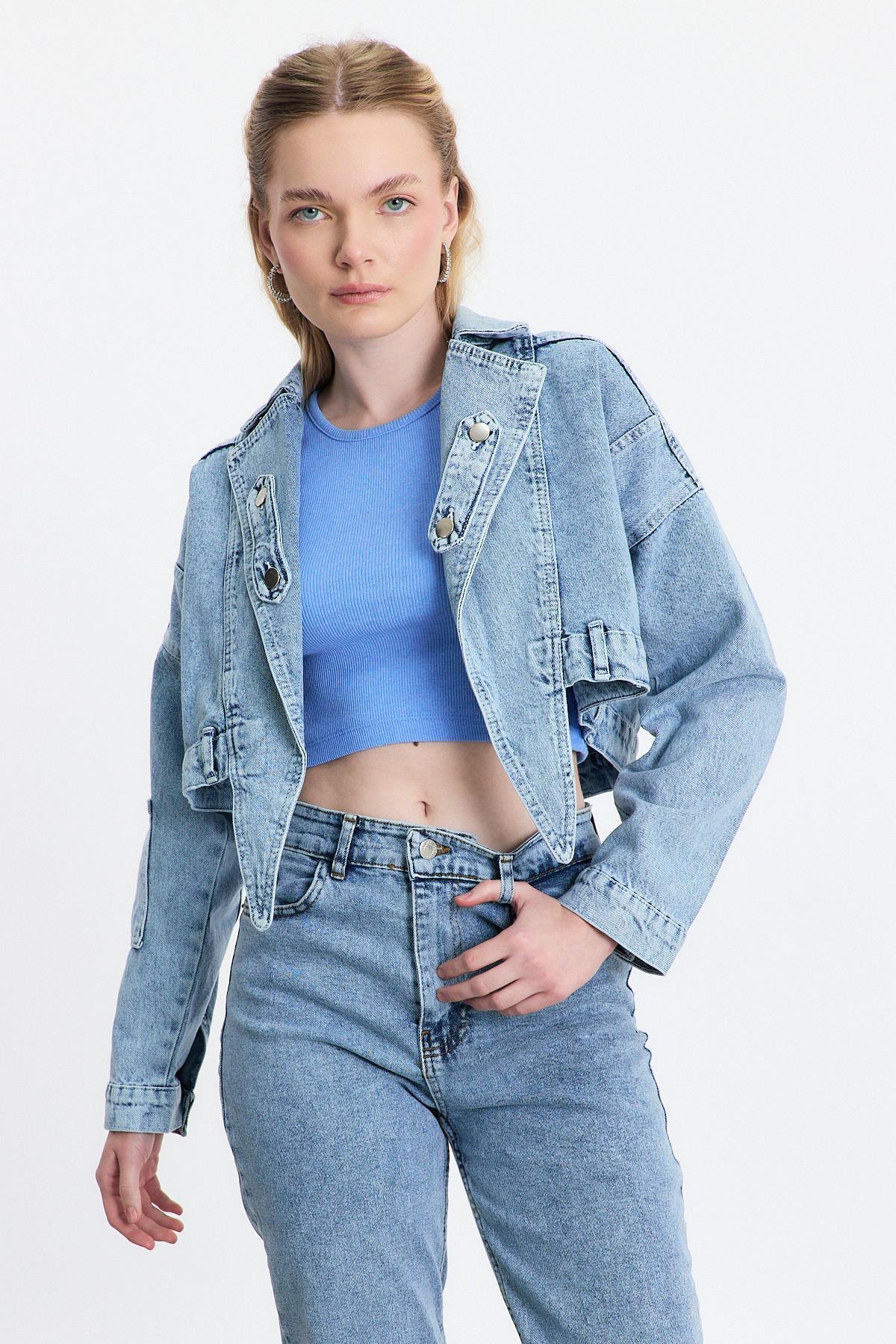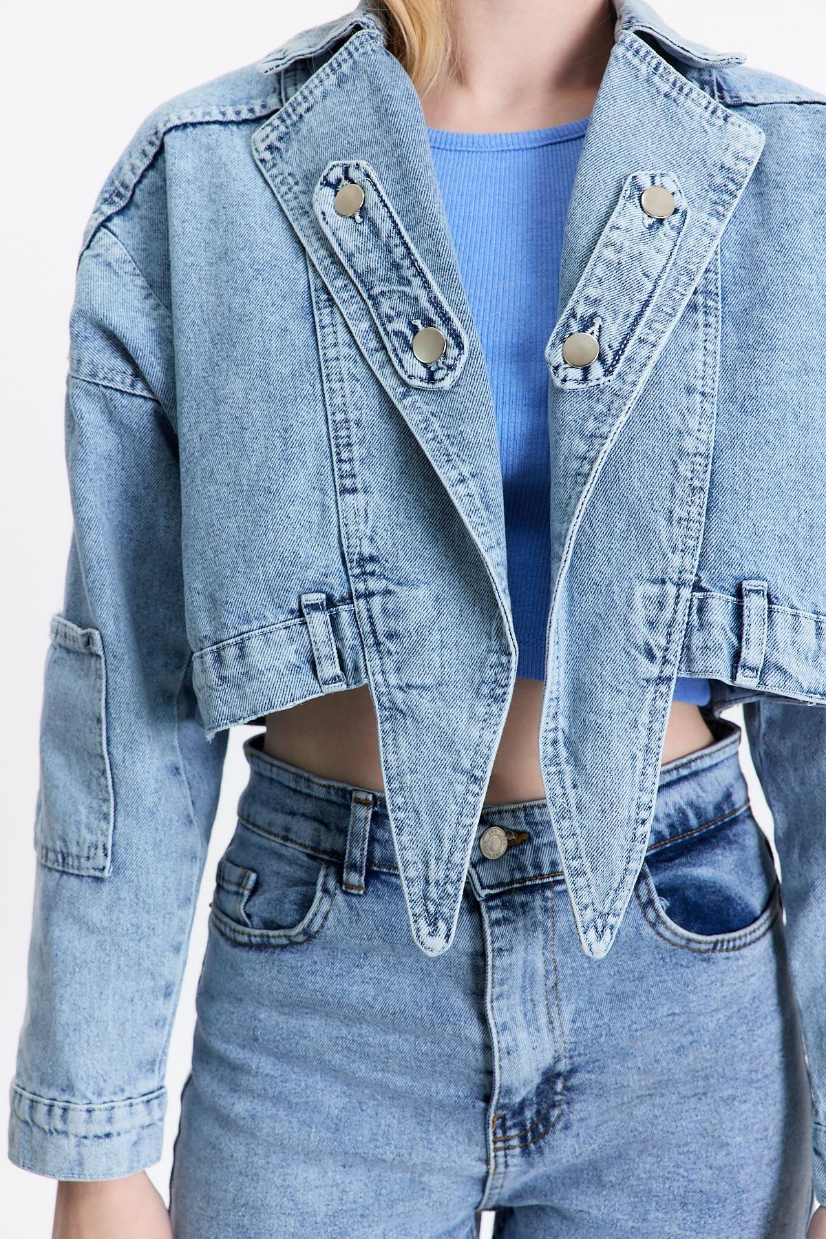Buzkar Ön Bağlama Detay Kot Ceket 2025