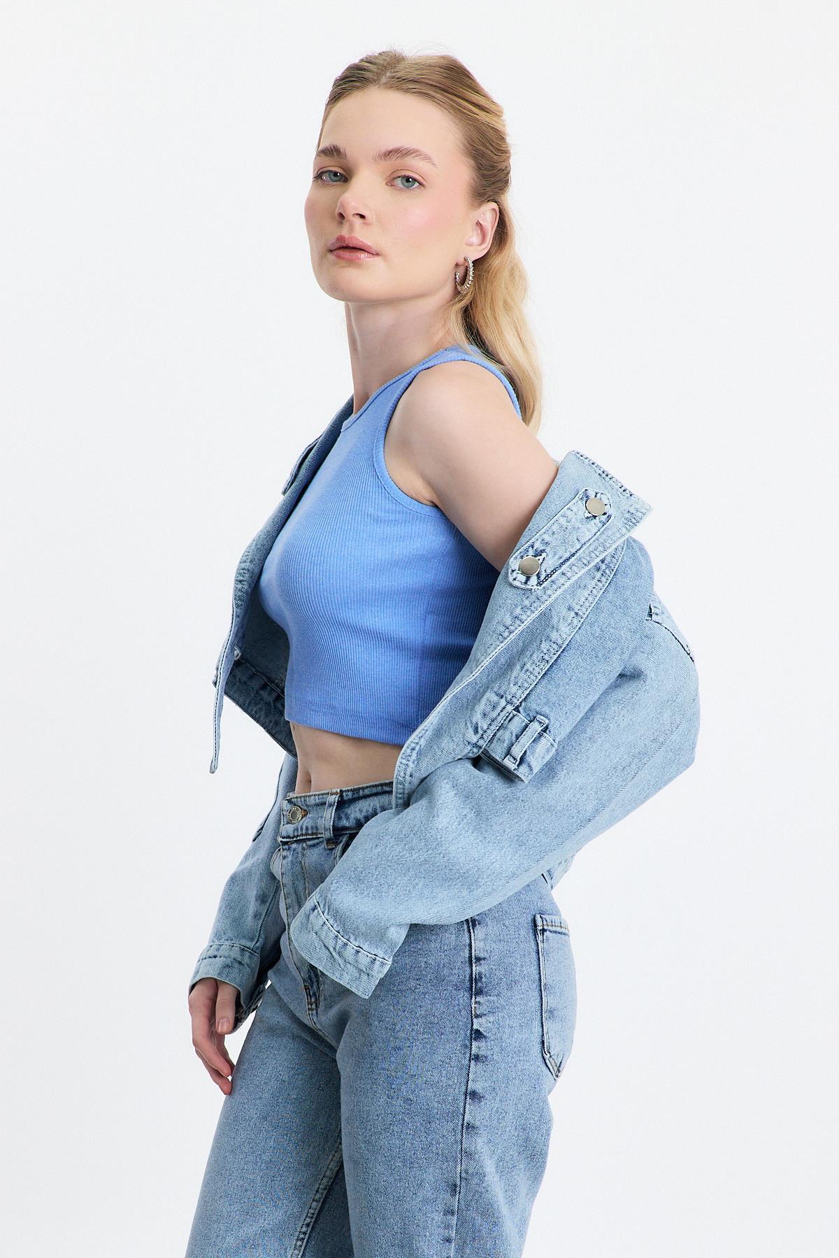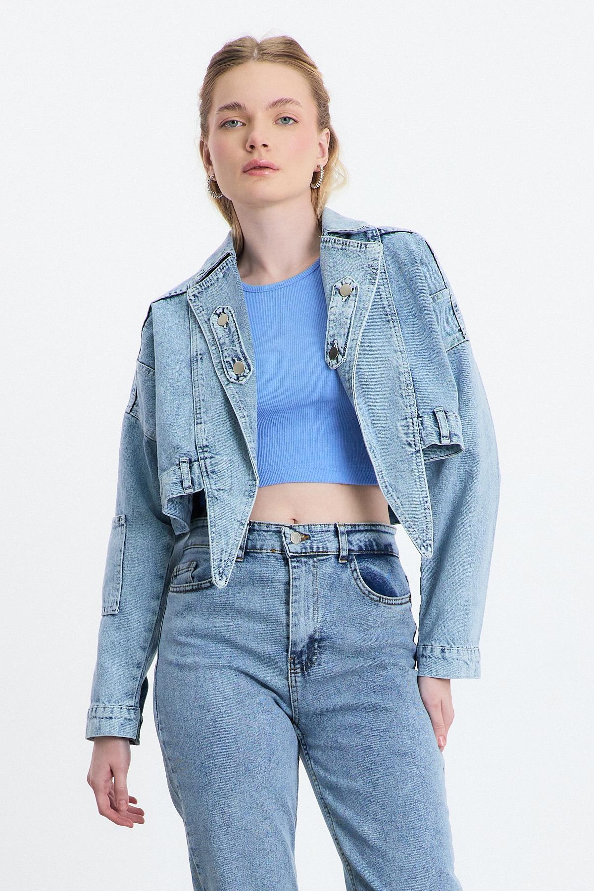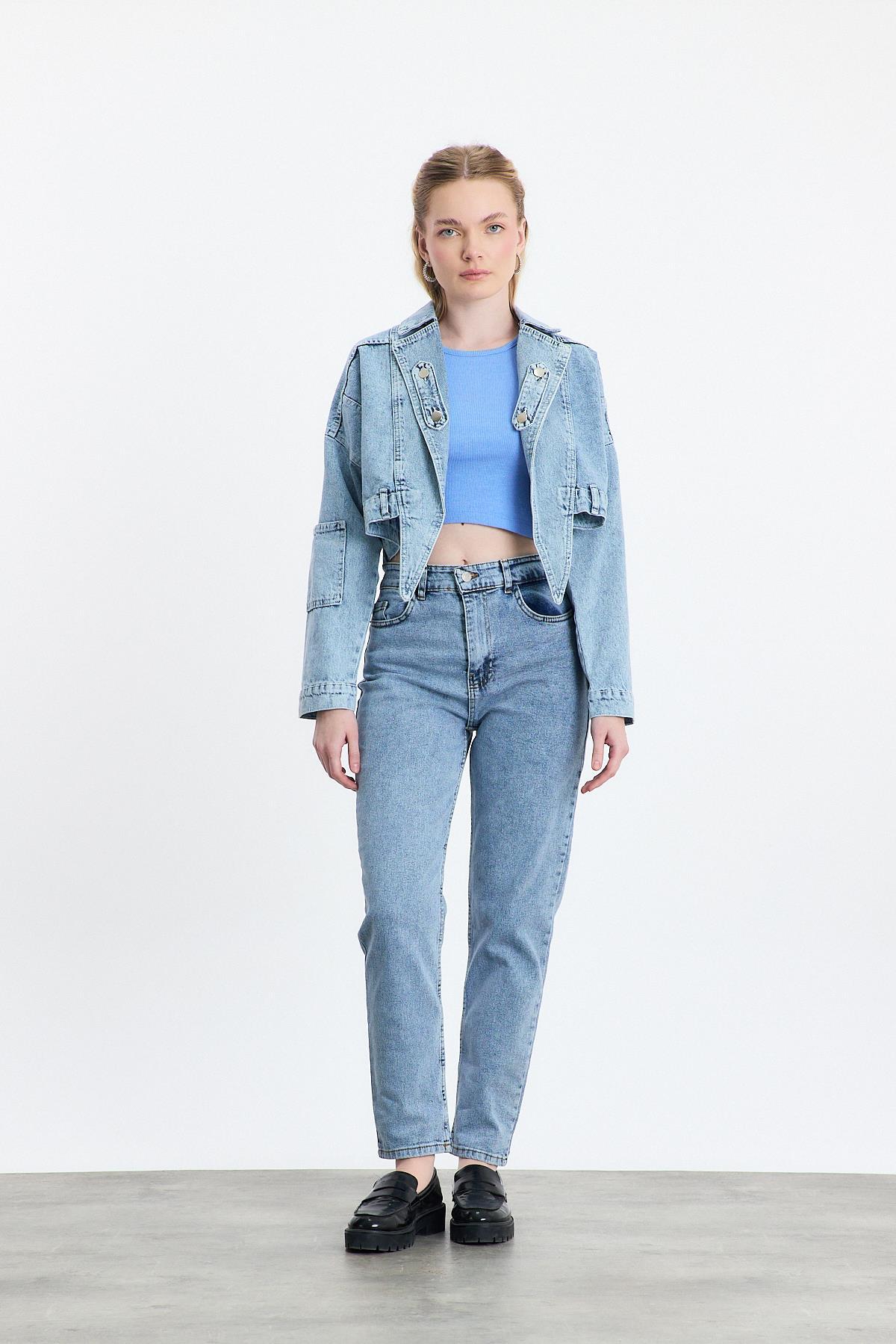 Buzkar Ön Bağlama Detay Kot Ceket 2025