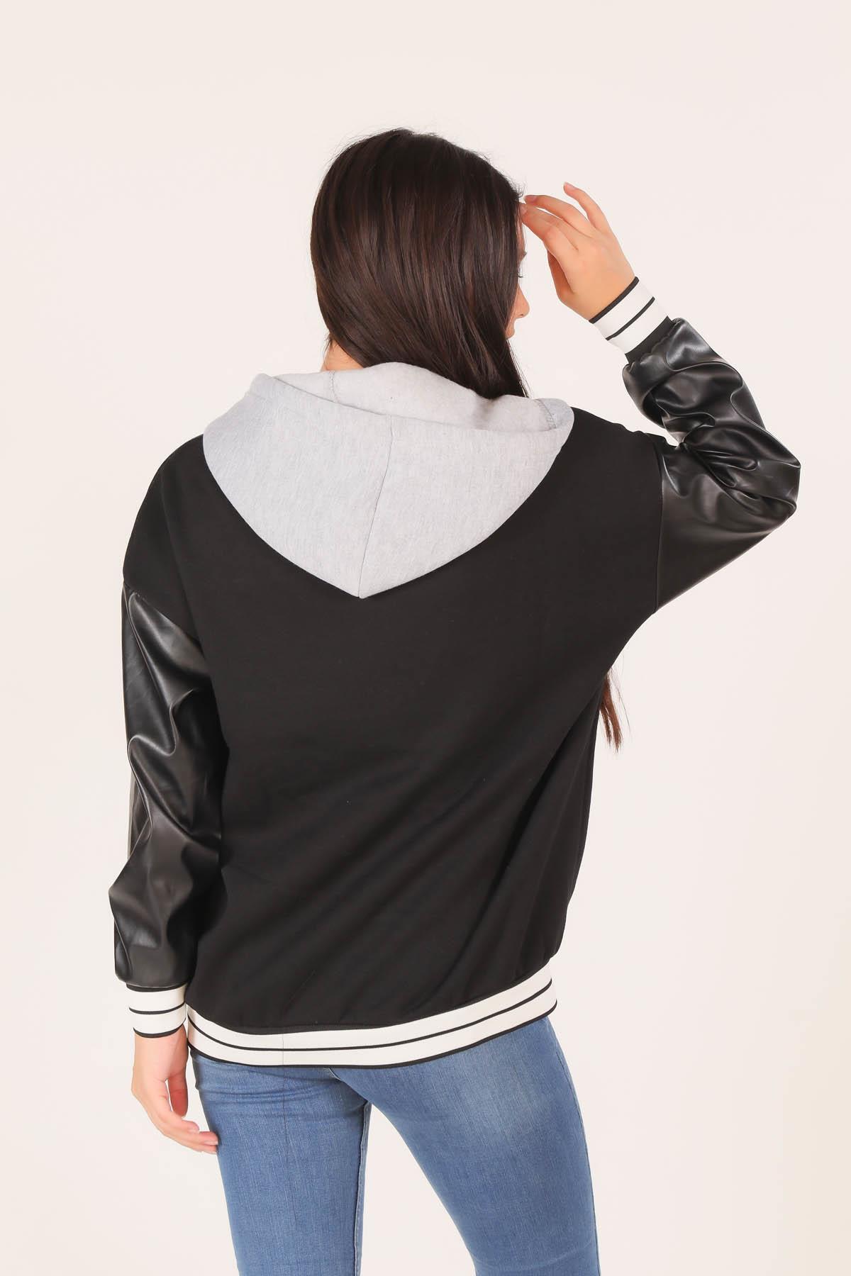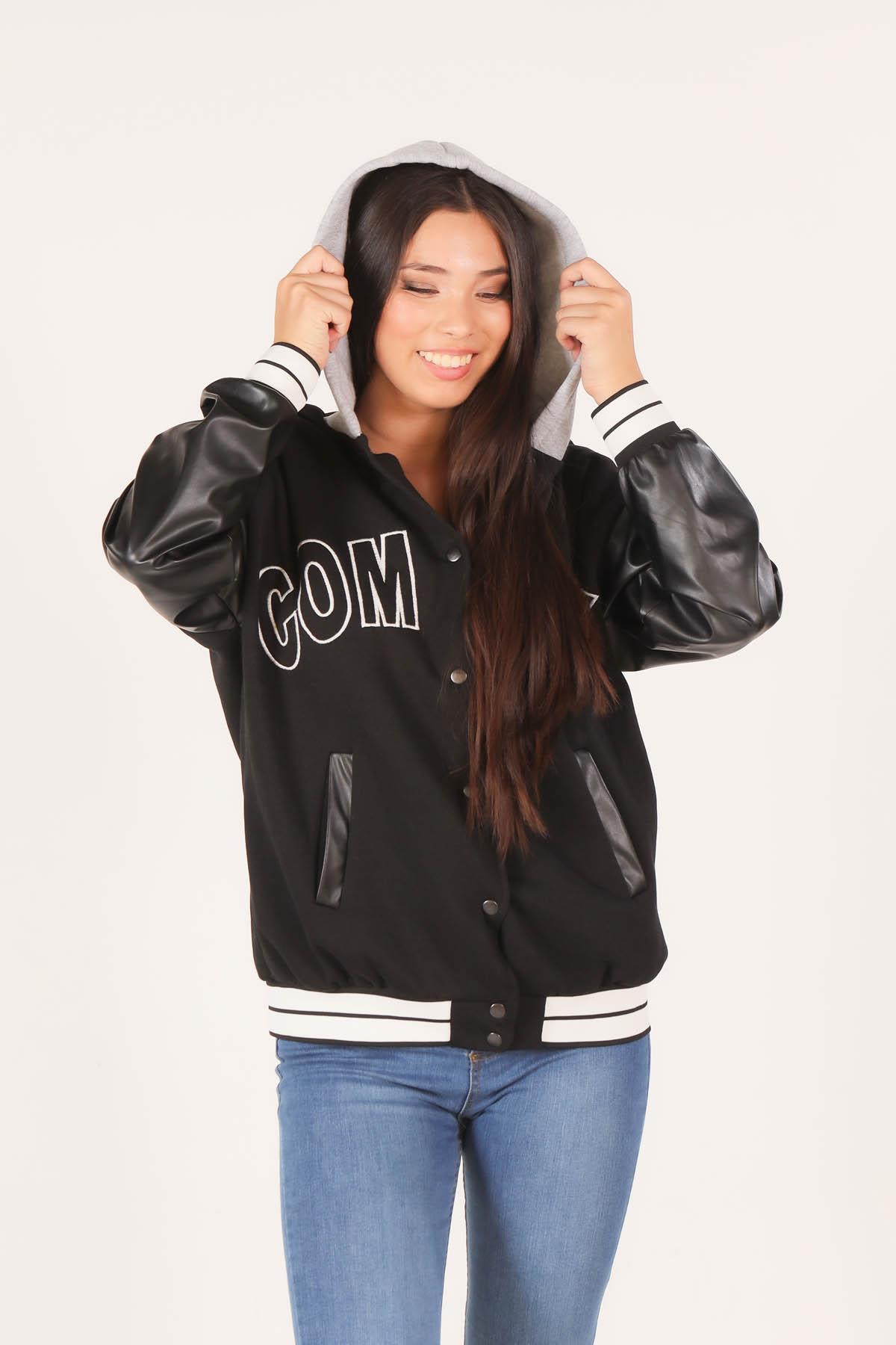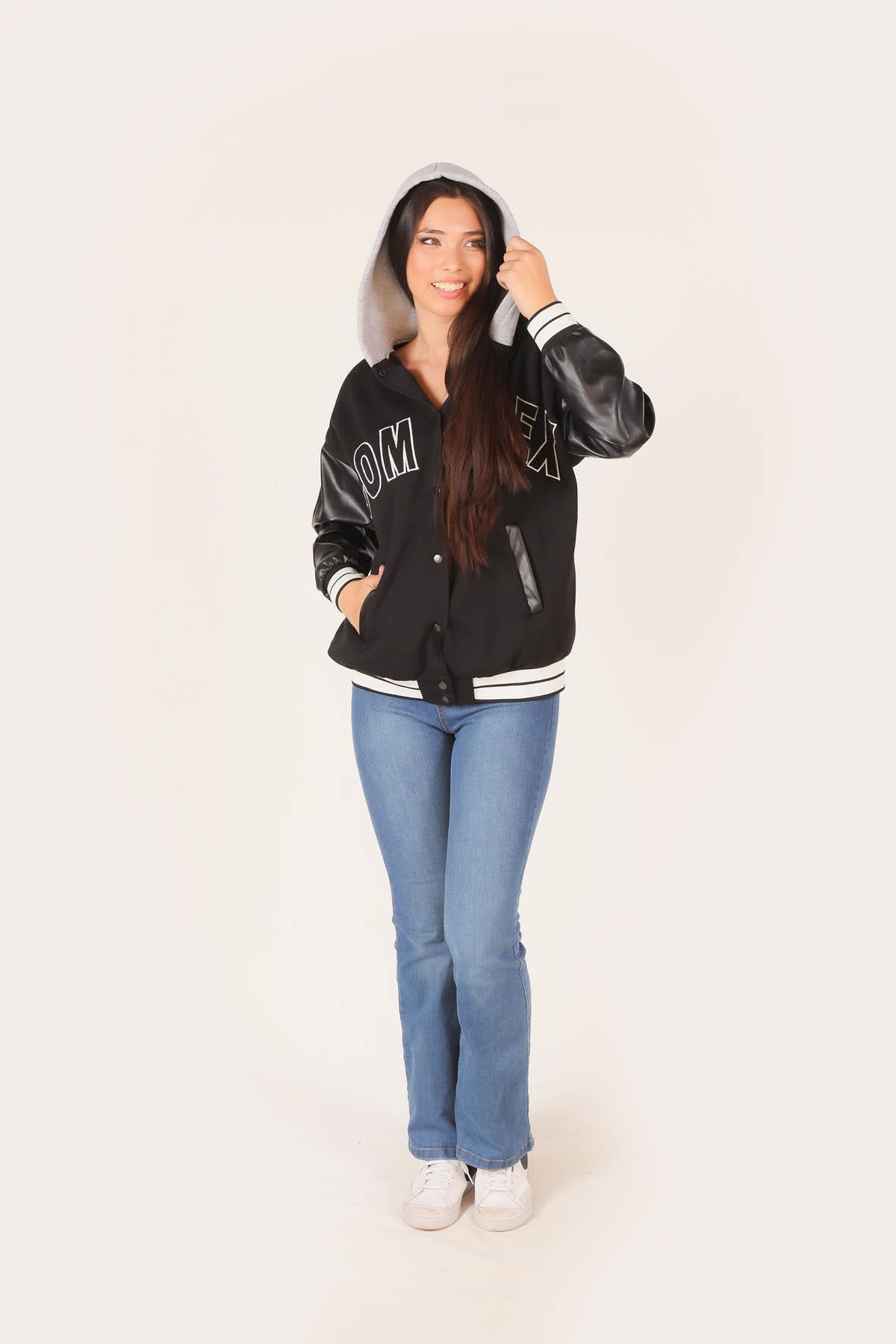 Siyah Kapüşonlu Kolej Ceket 2027