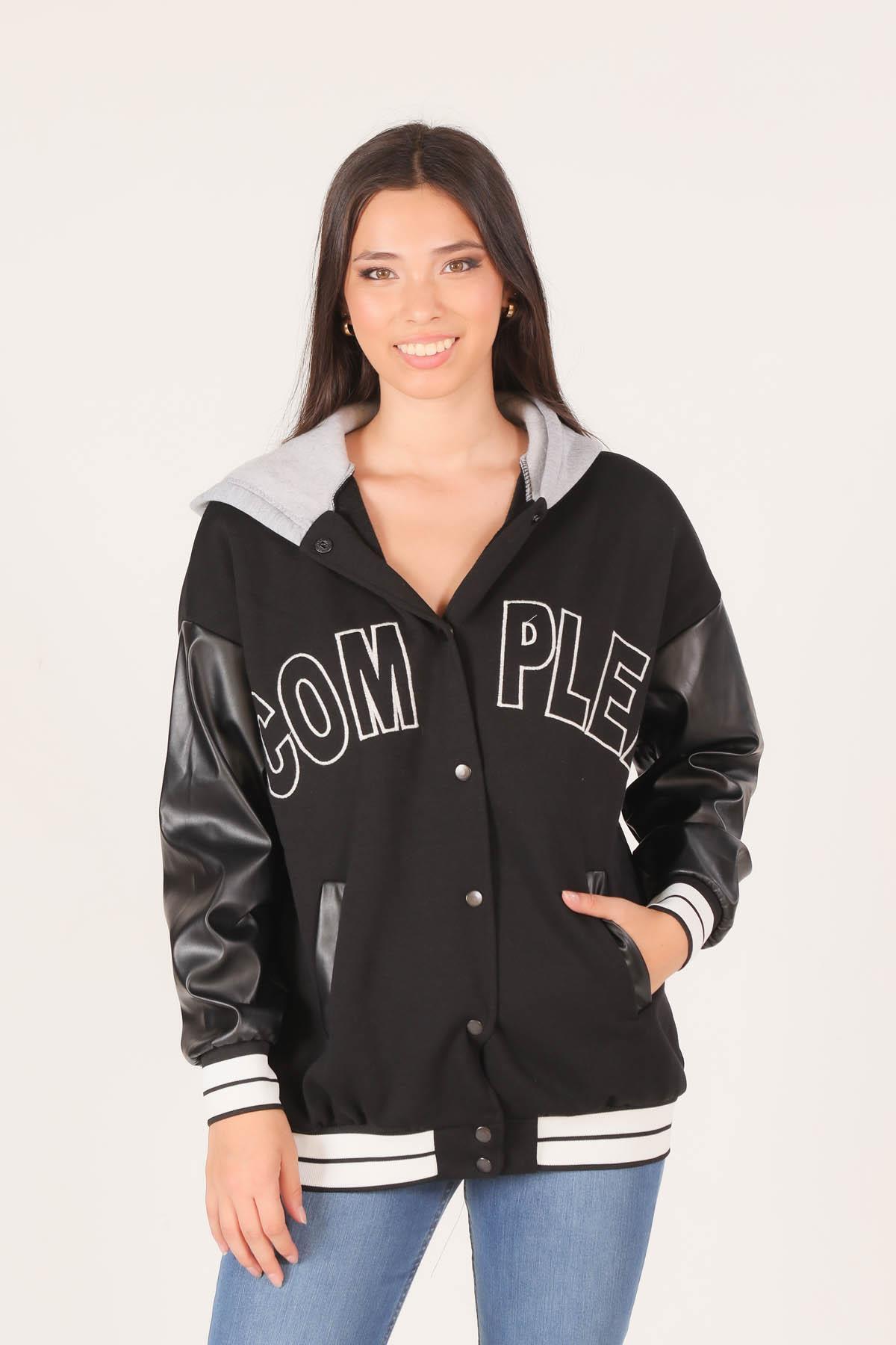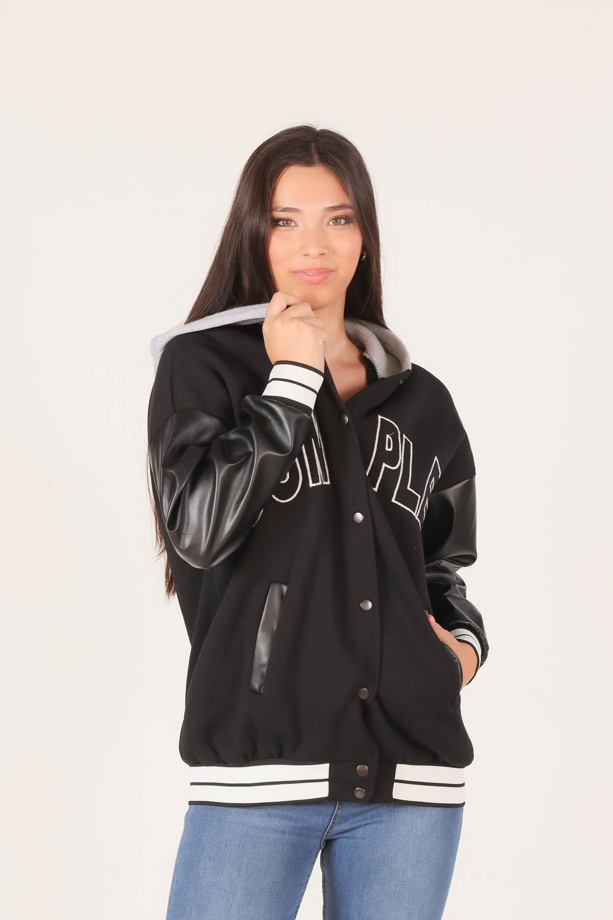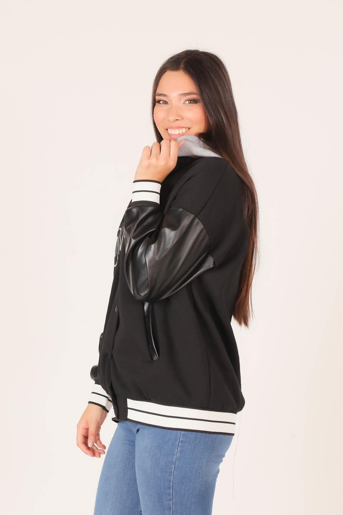 Siyah Kapüşonlu Kolej Ceket 2027