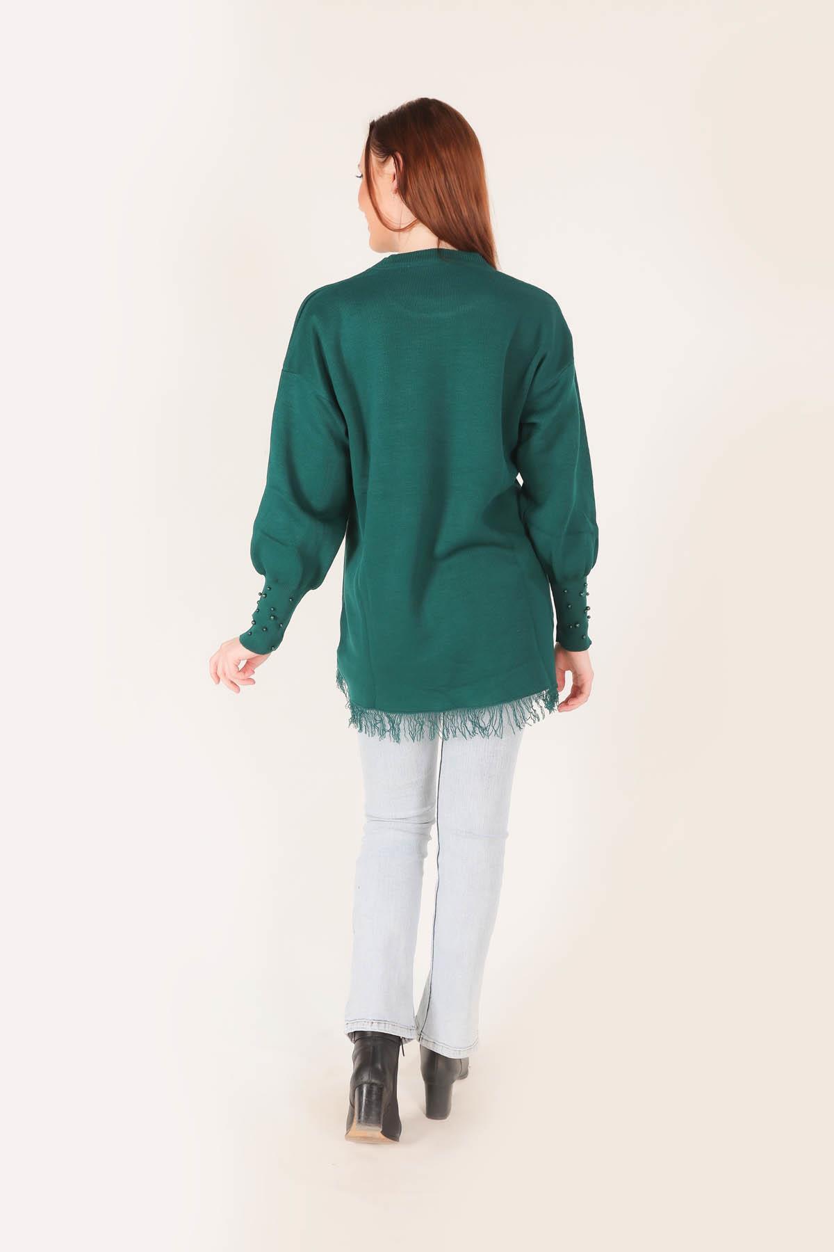 2028 Eteği Saçaklı İnci Detay Kazak Nefti