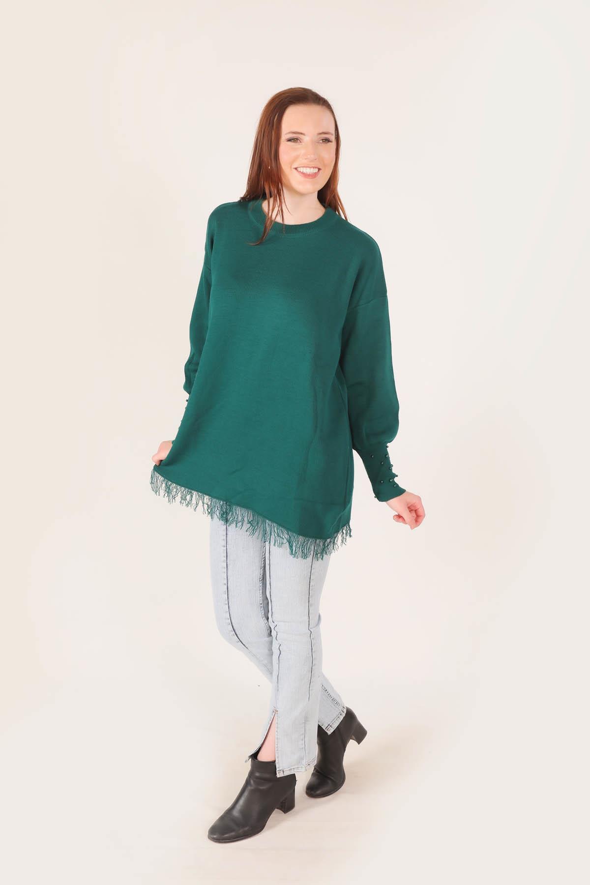 Nefti Eteği Saçaklı İnci Detay Kazak 2028