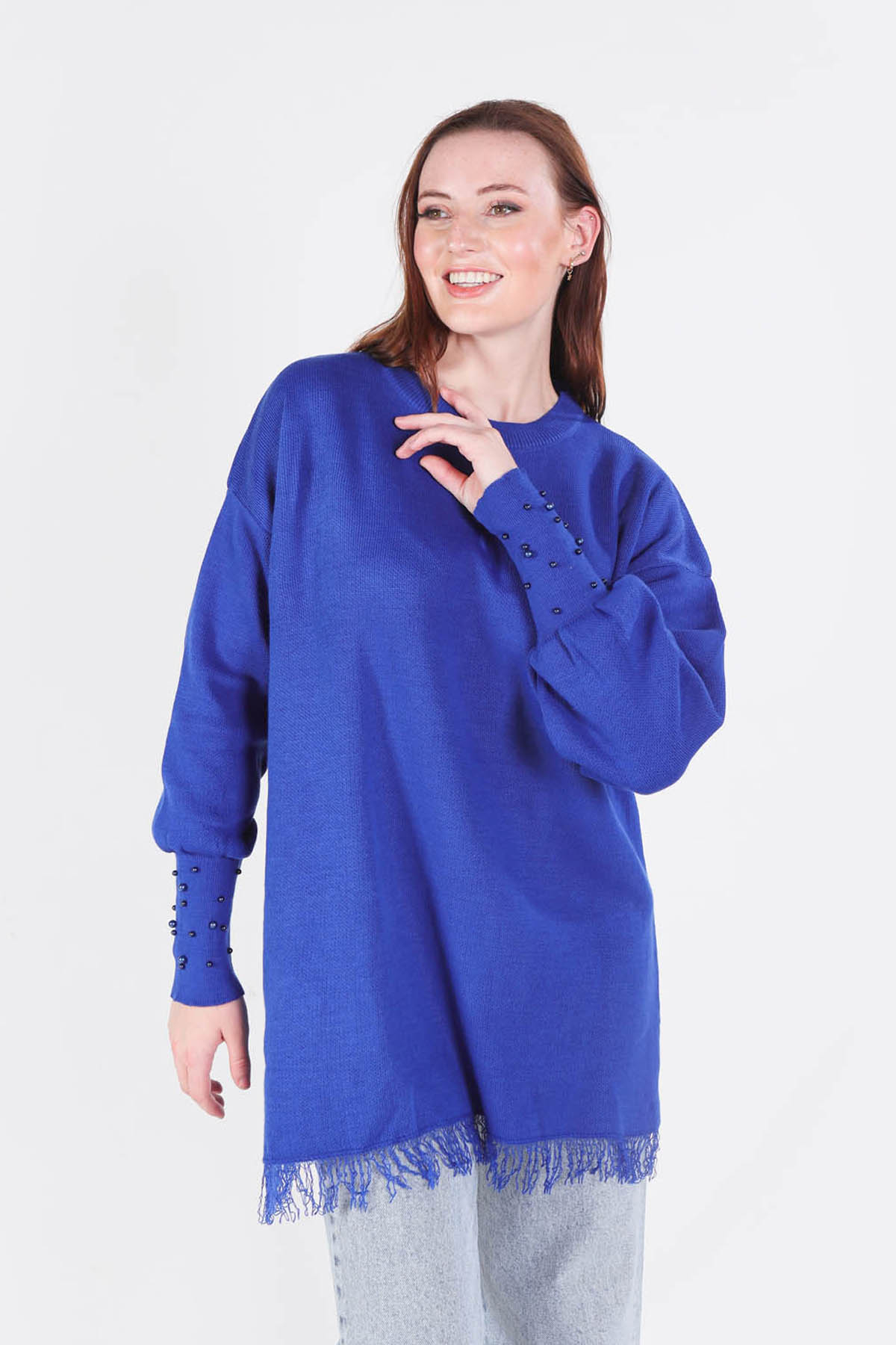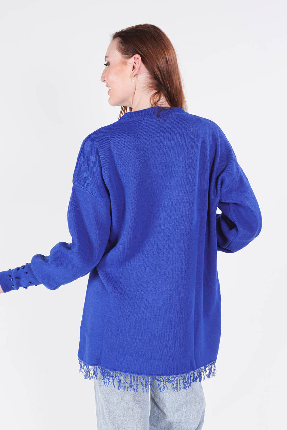 Saks Eteği Saçaklı İnci Detay Kazak 2028
