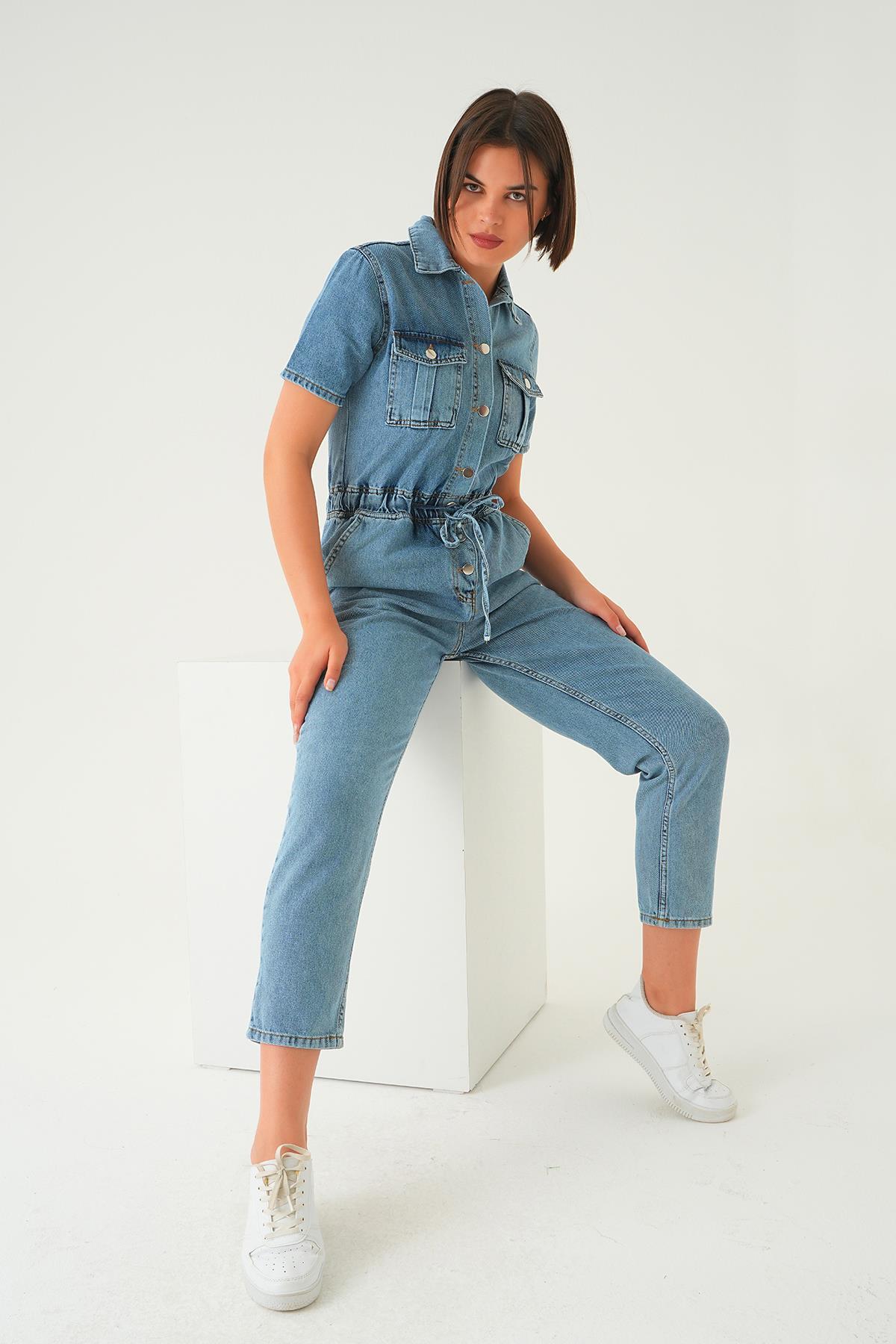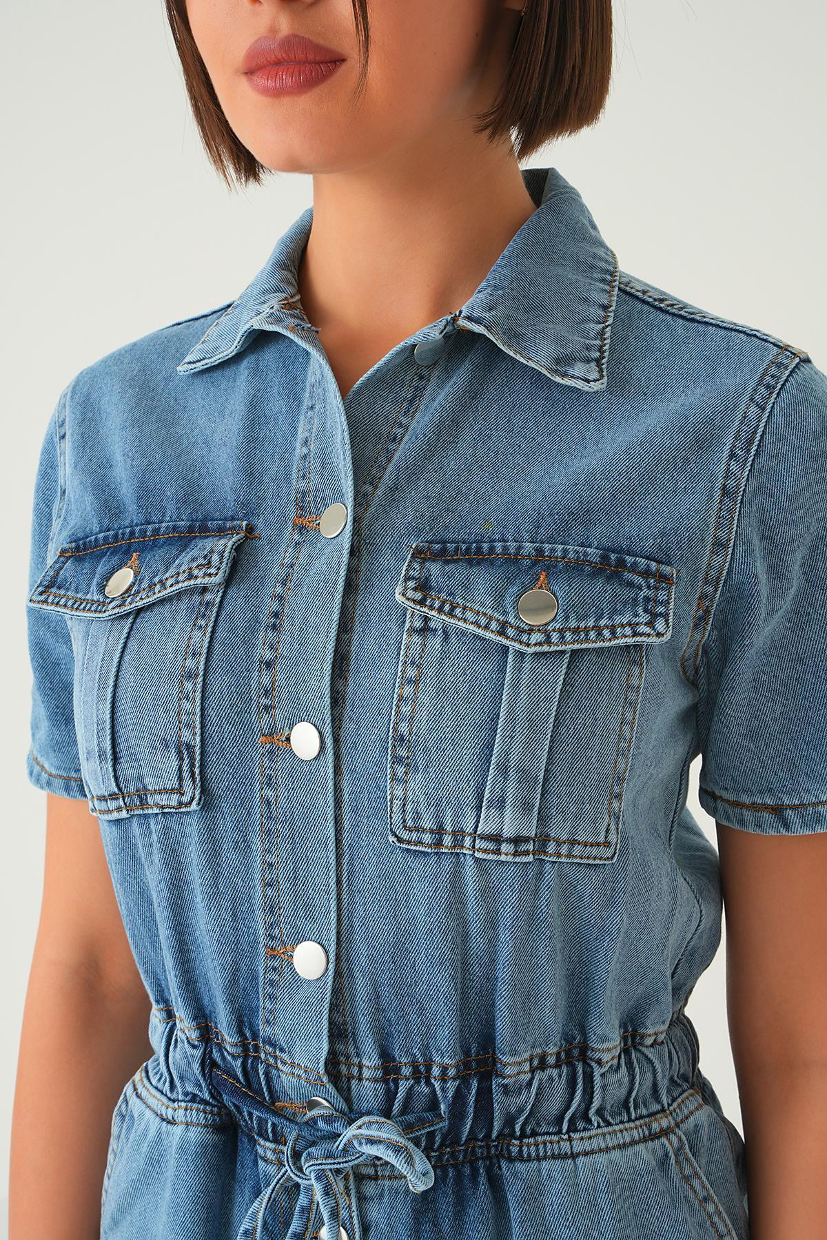 Mavi Bel Lastik Kot Tulum 20579