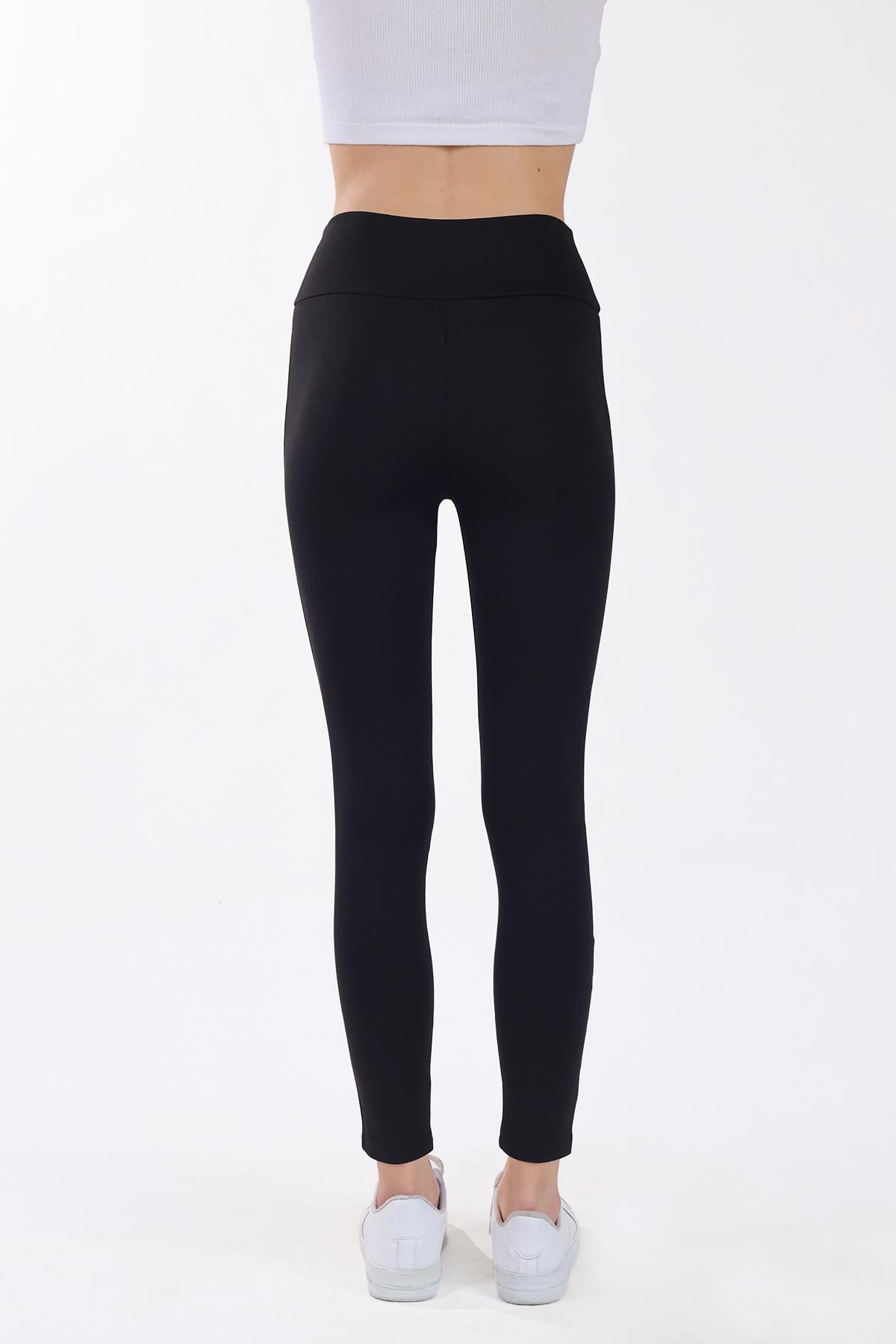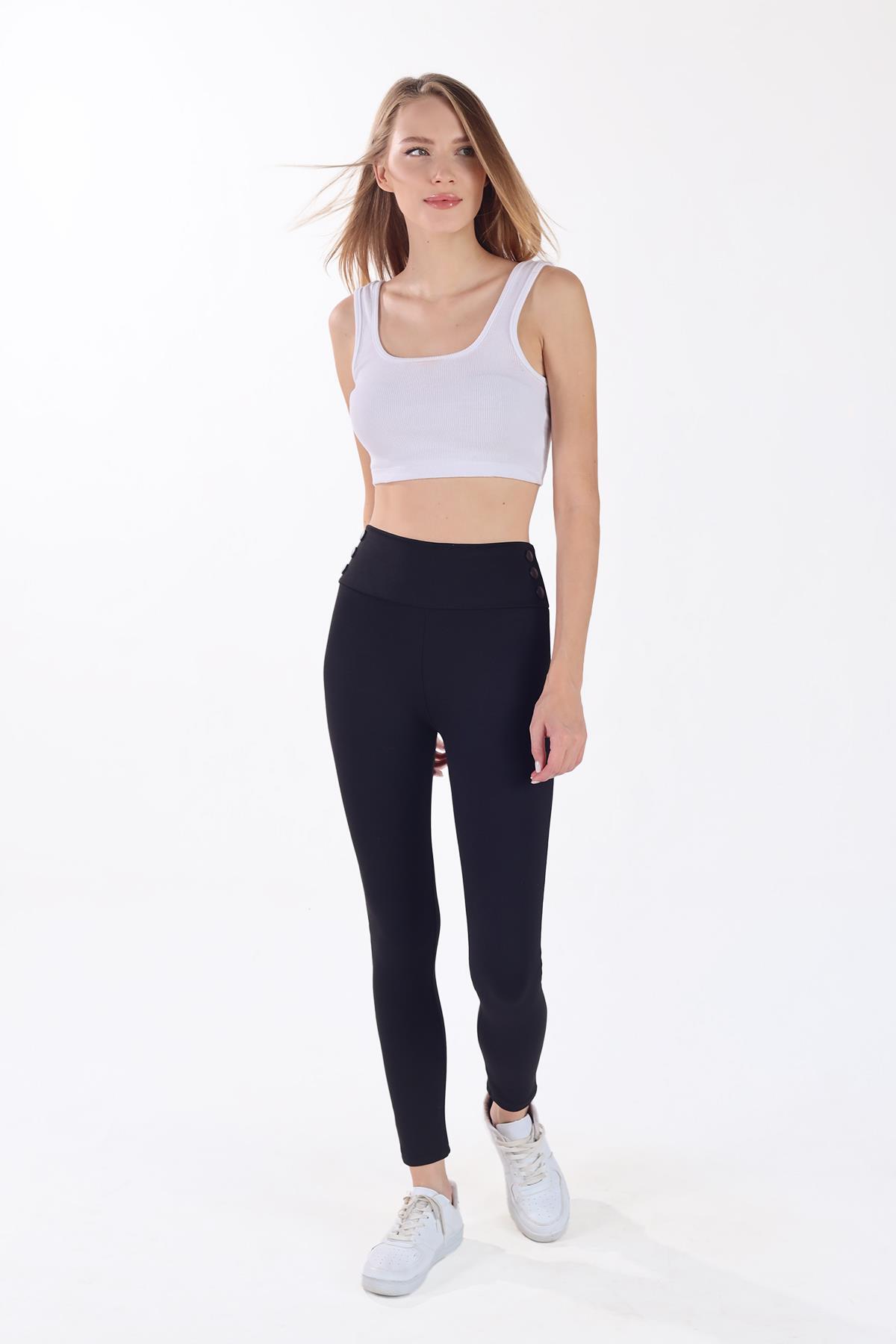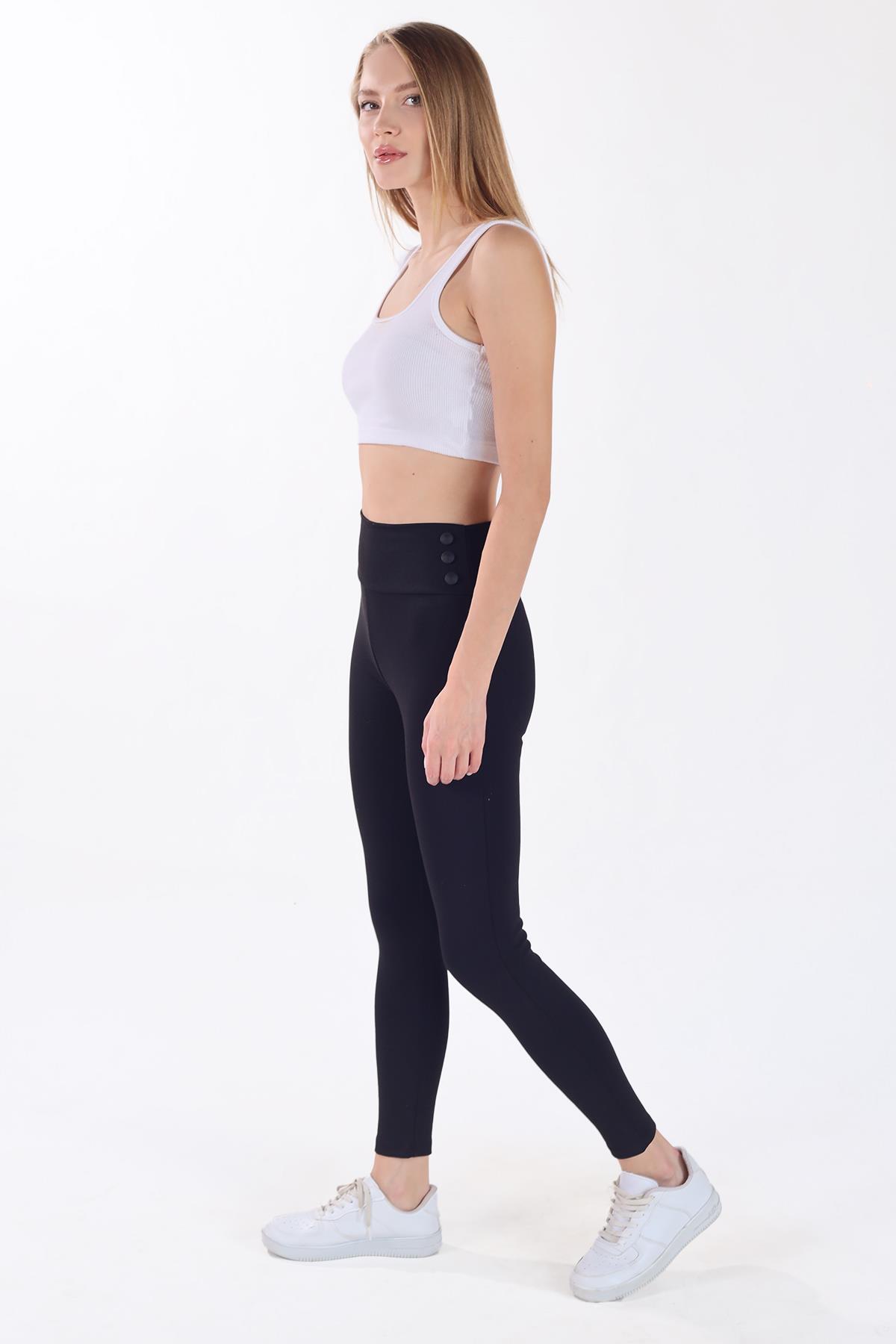 Siyah Kemeri Düğmeli Tayt 2064