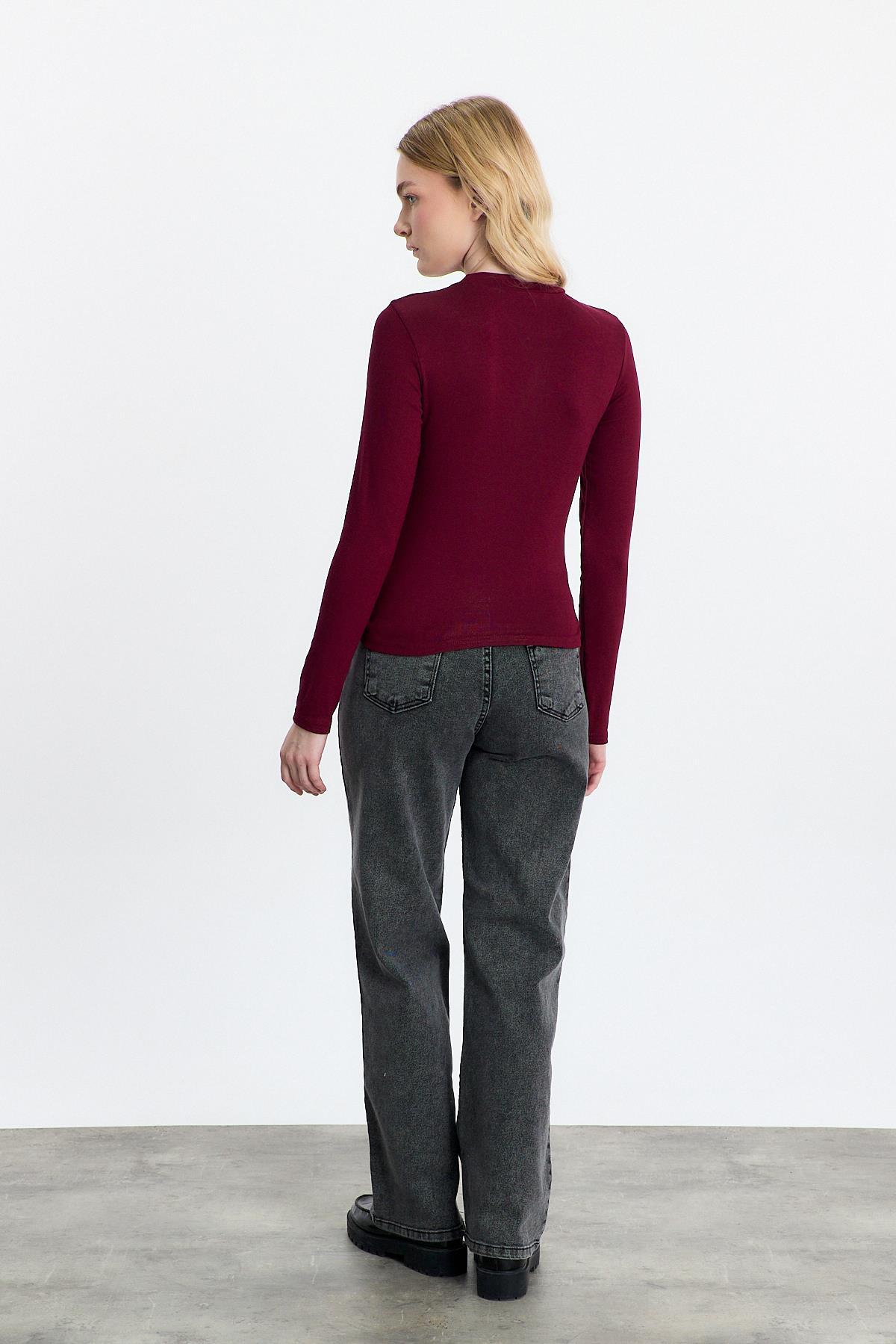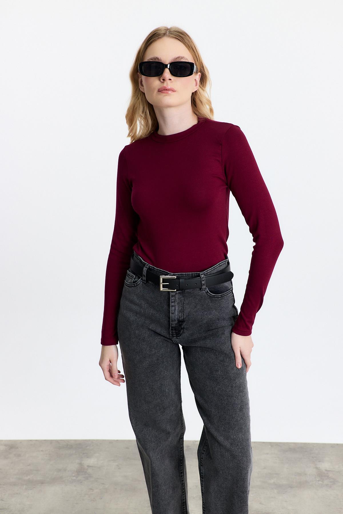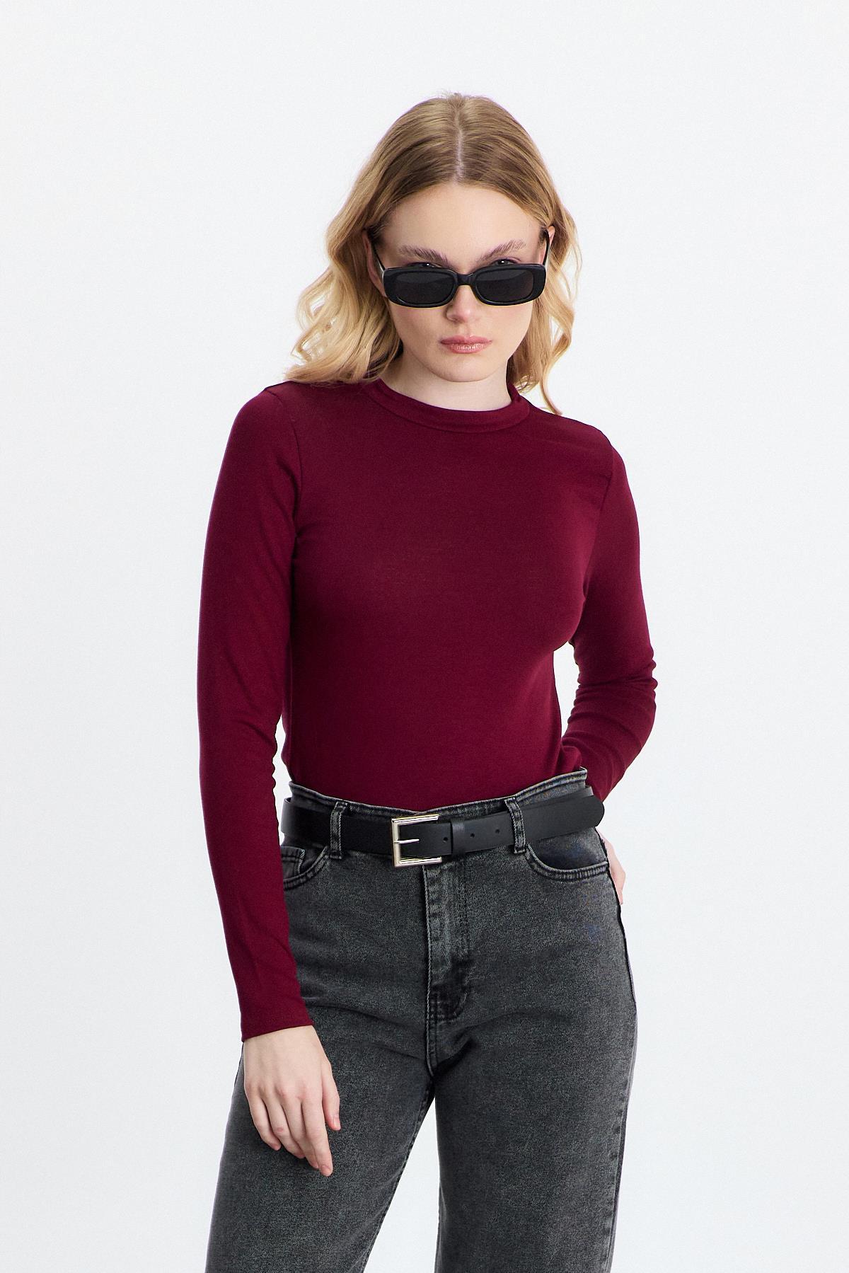 Bordo Bisiklet Yaka Uzun Kol Badi 2086
