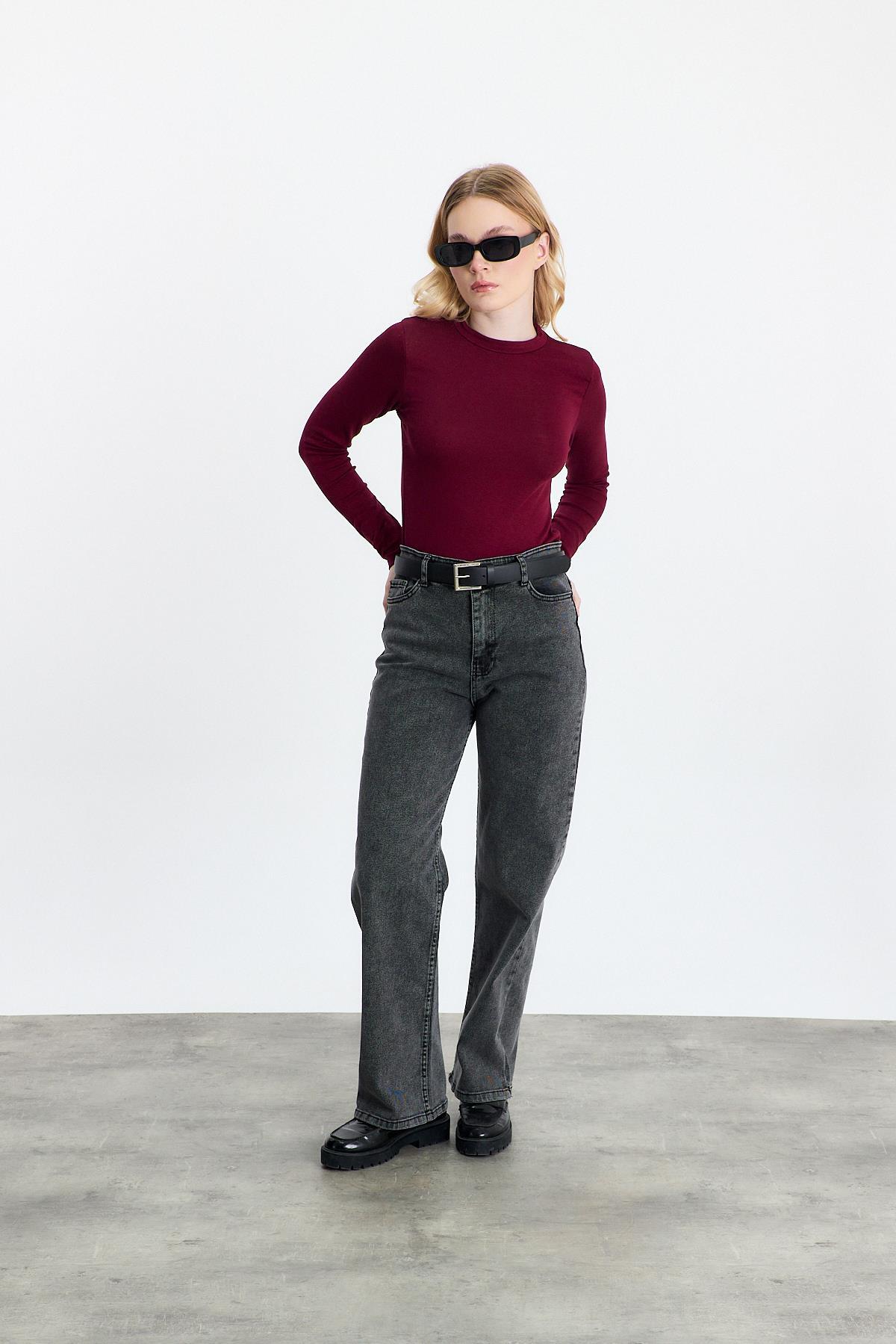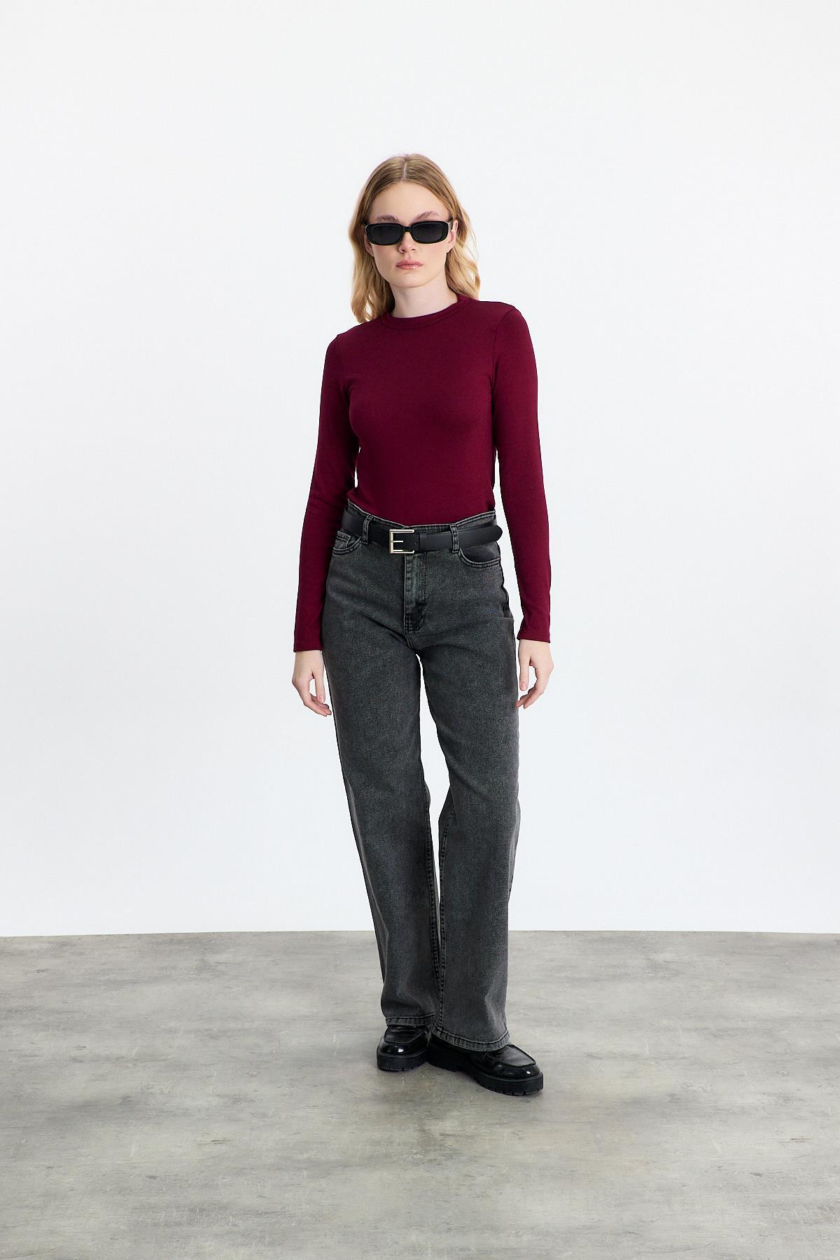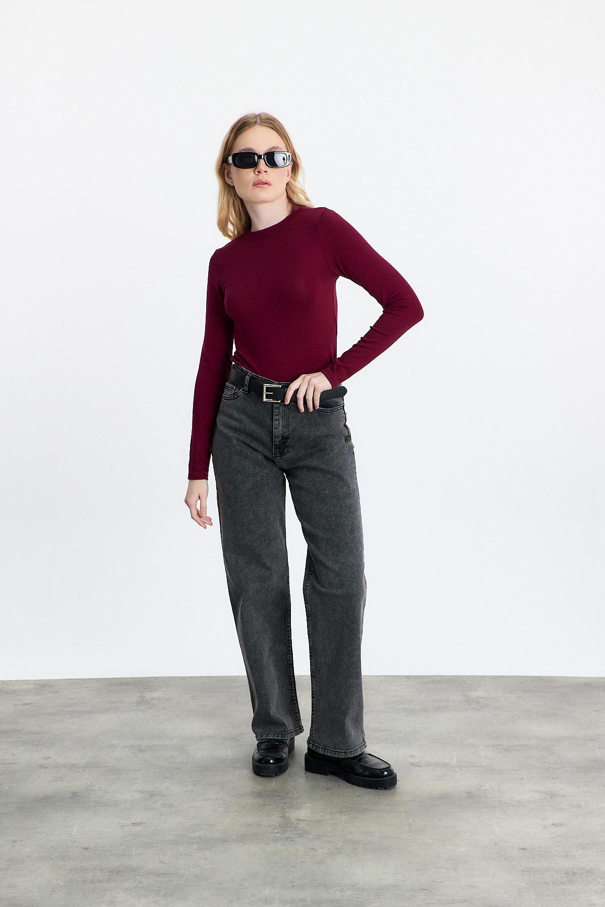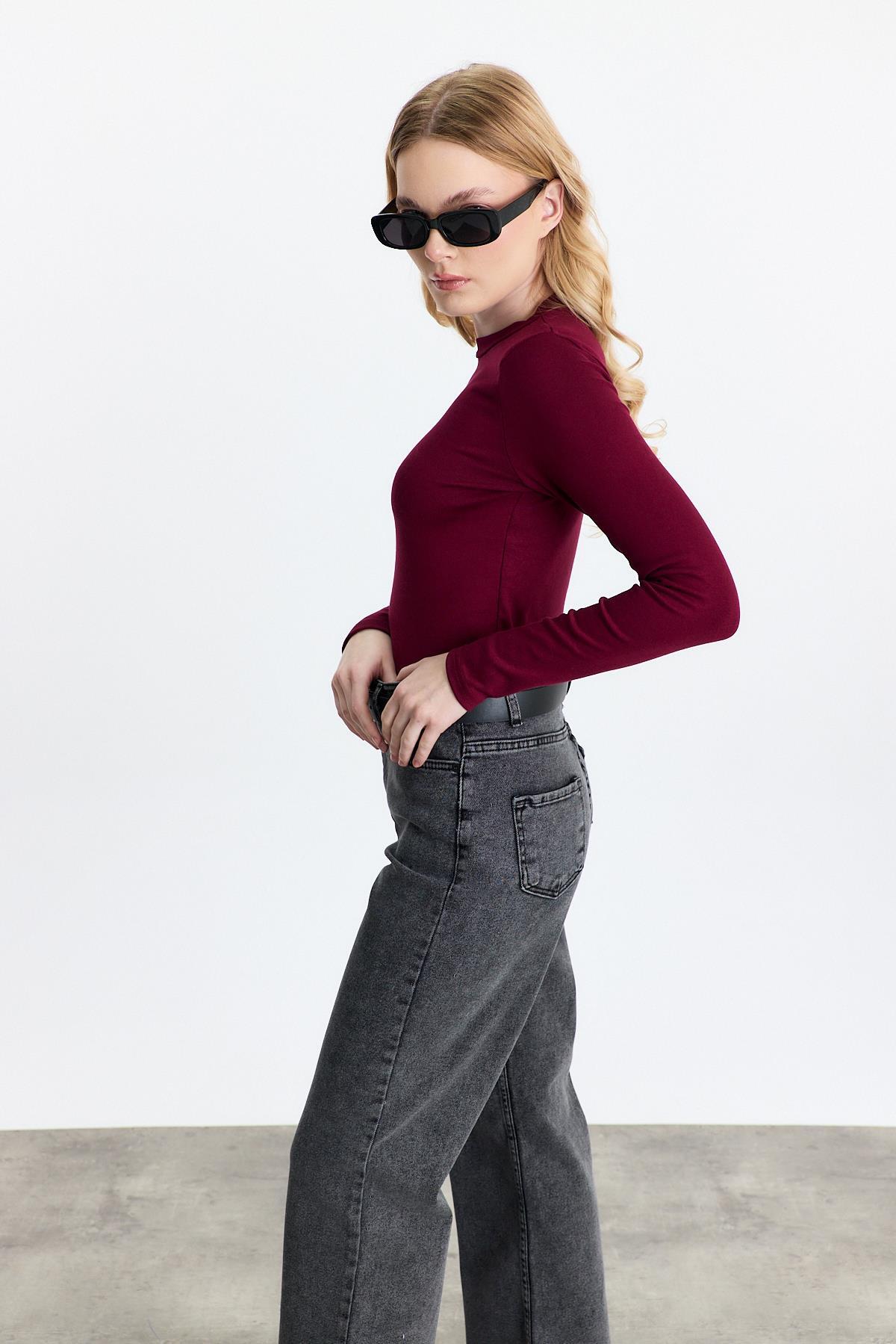 Bordo Bisiklet Yaka Uzun Kol Badi 2086