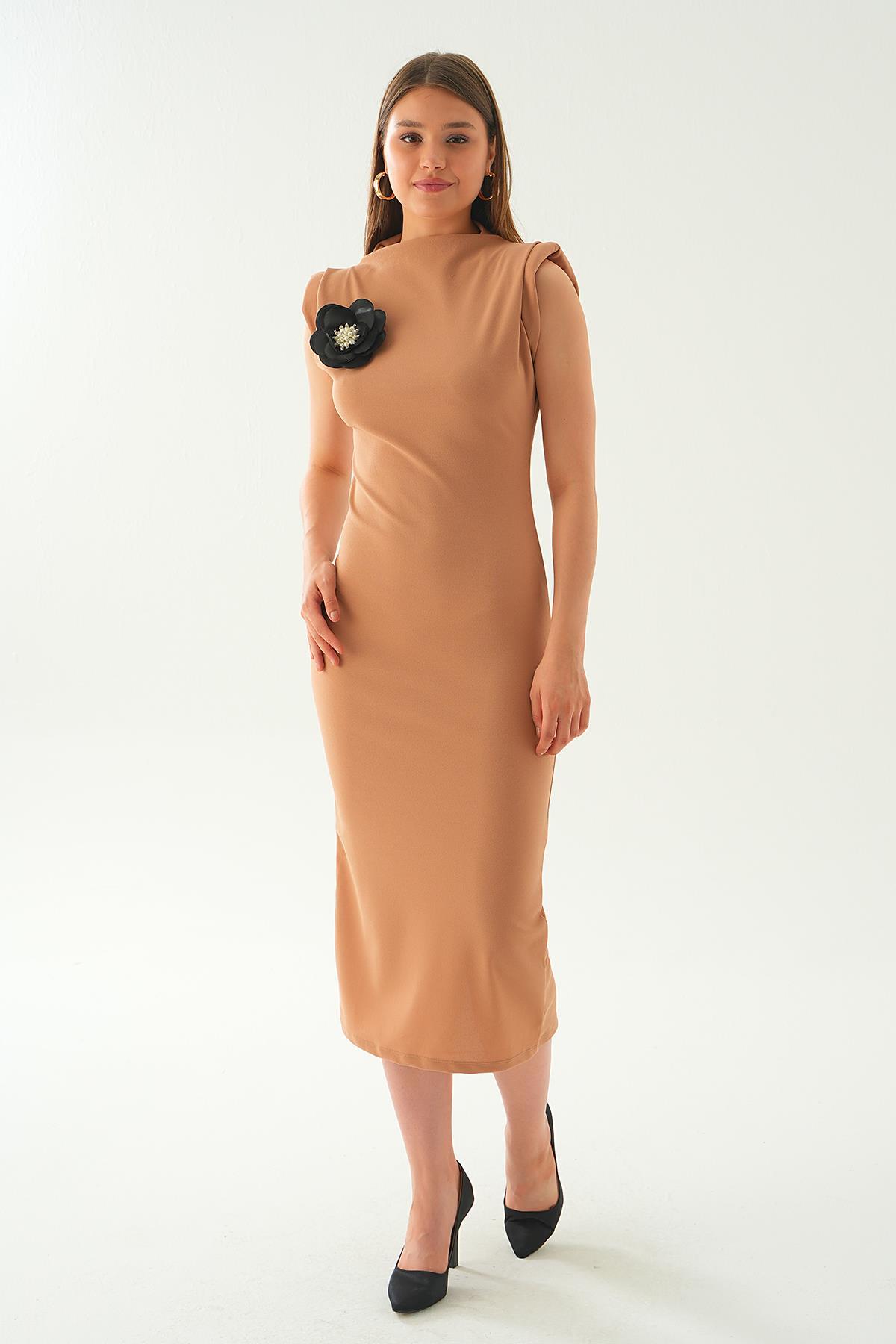8258A Düğmeli Cepli Elbise Kahve