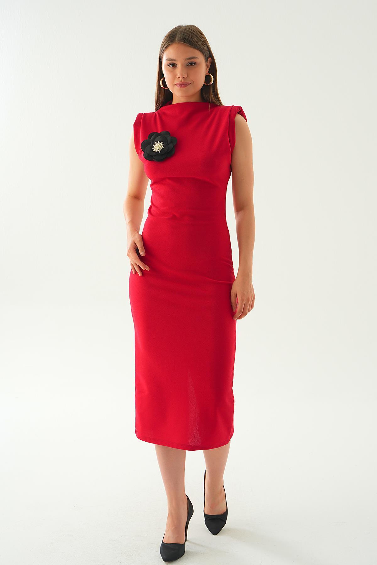 Taş Büzgü Detaylı Triko Midi Elbise 2317