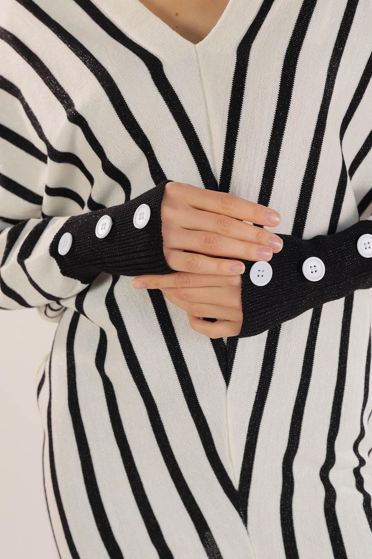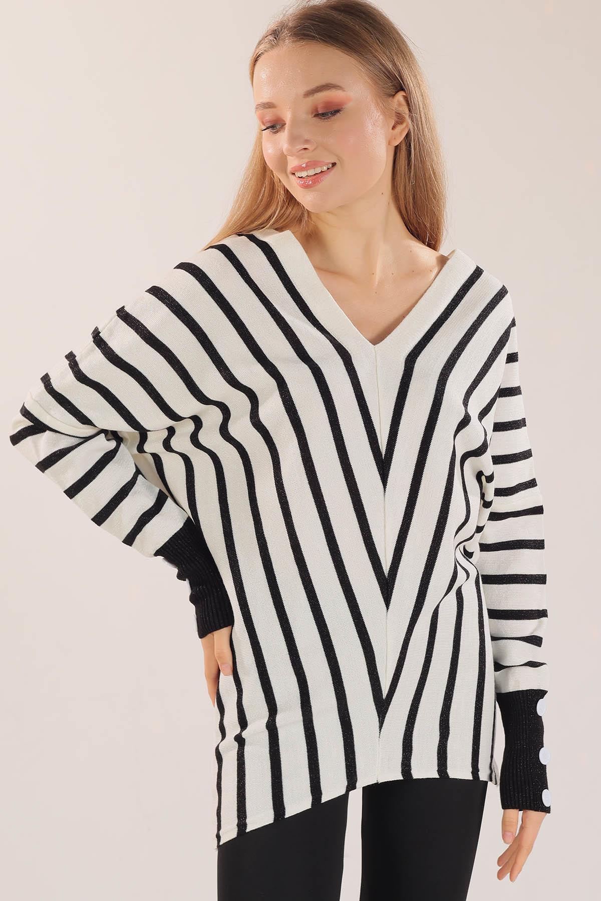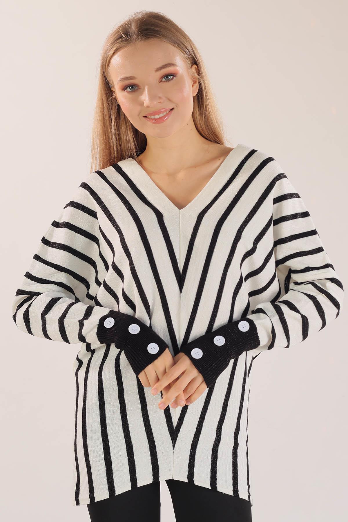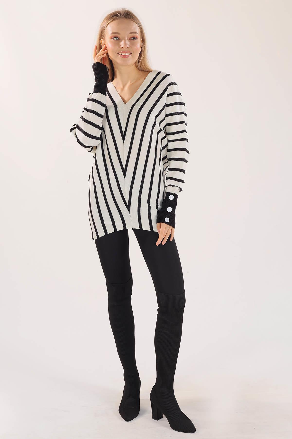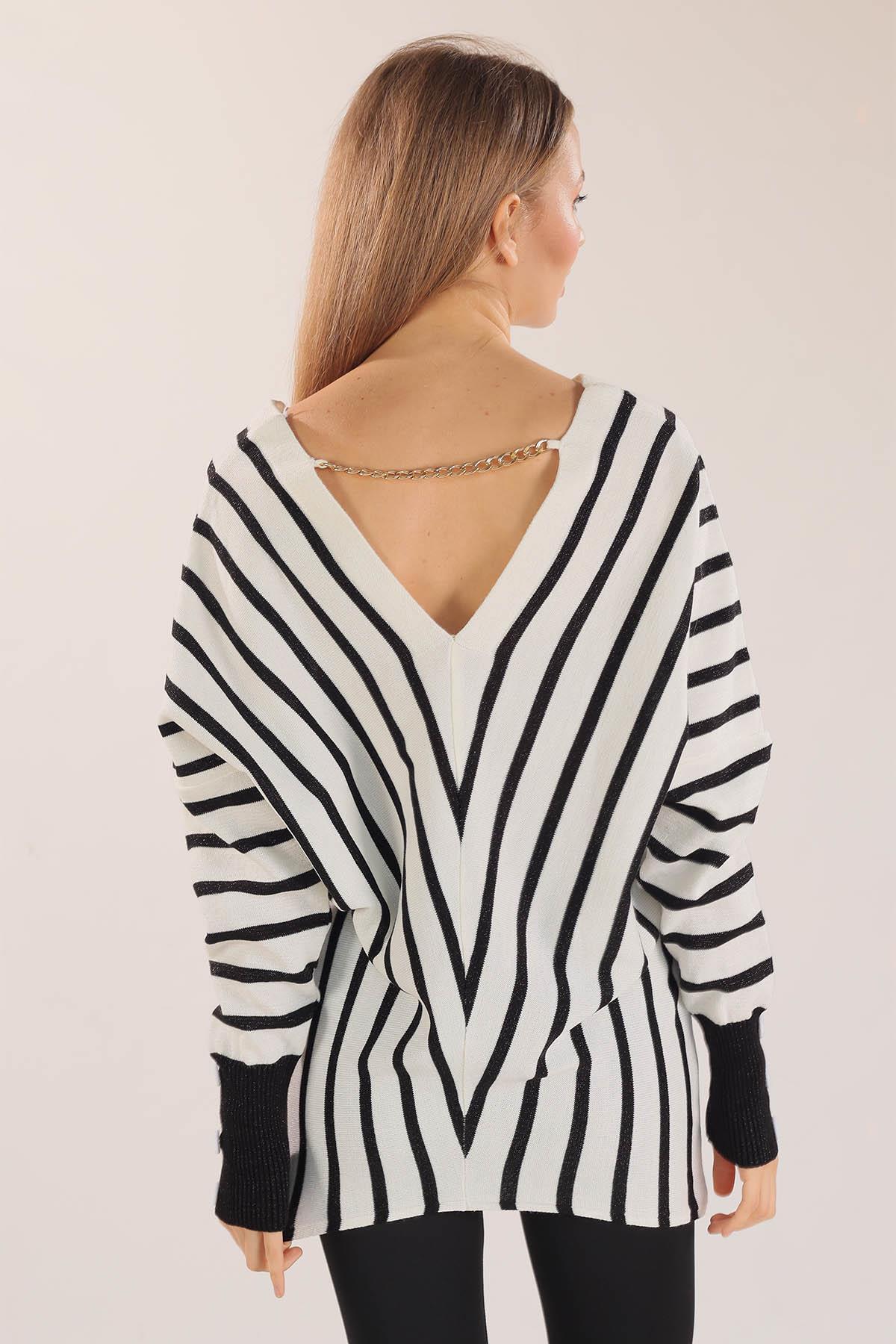 Ekru Omuz Zincir Çizgili Kazak 21004
