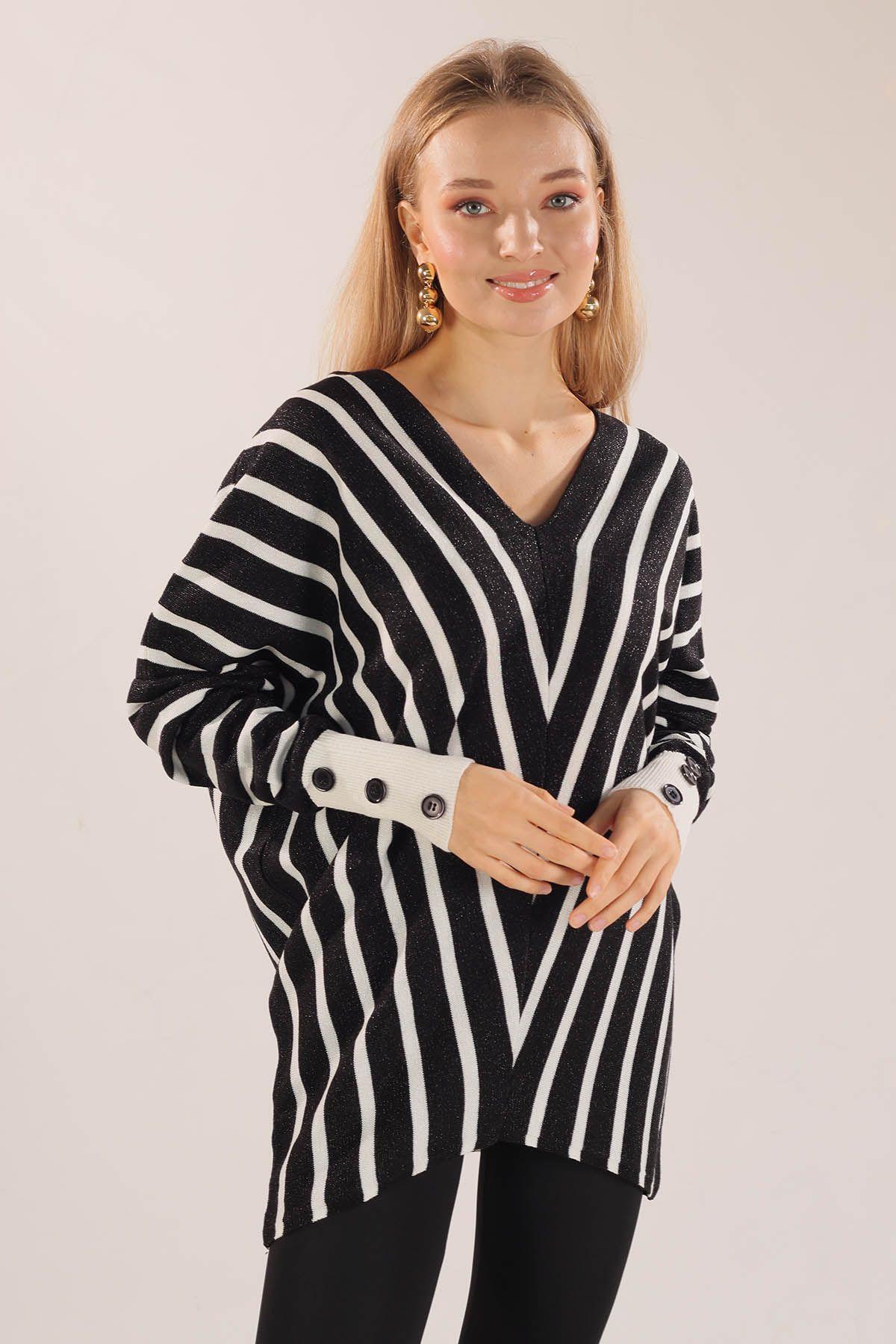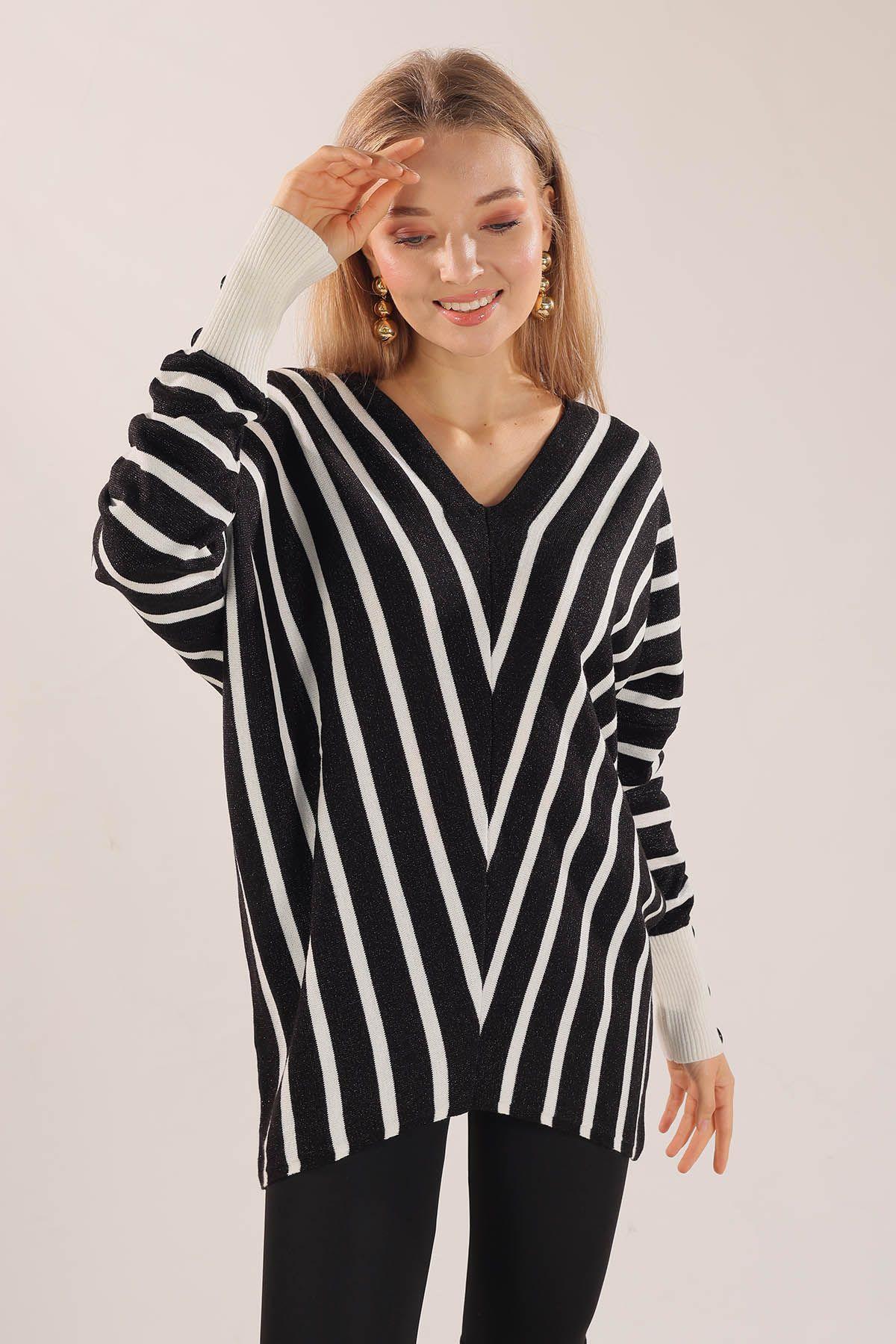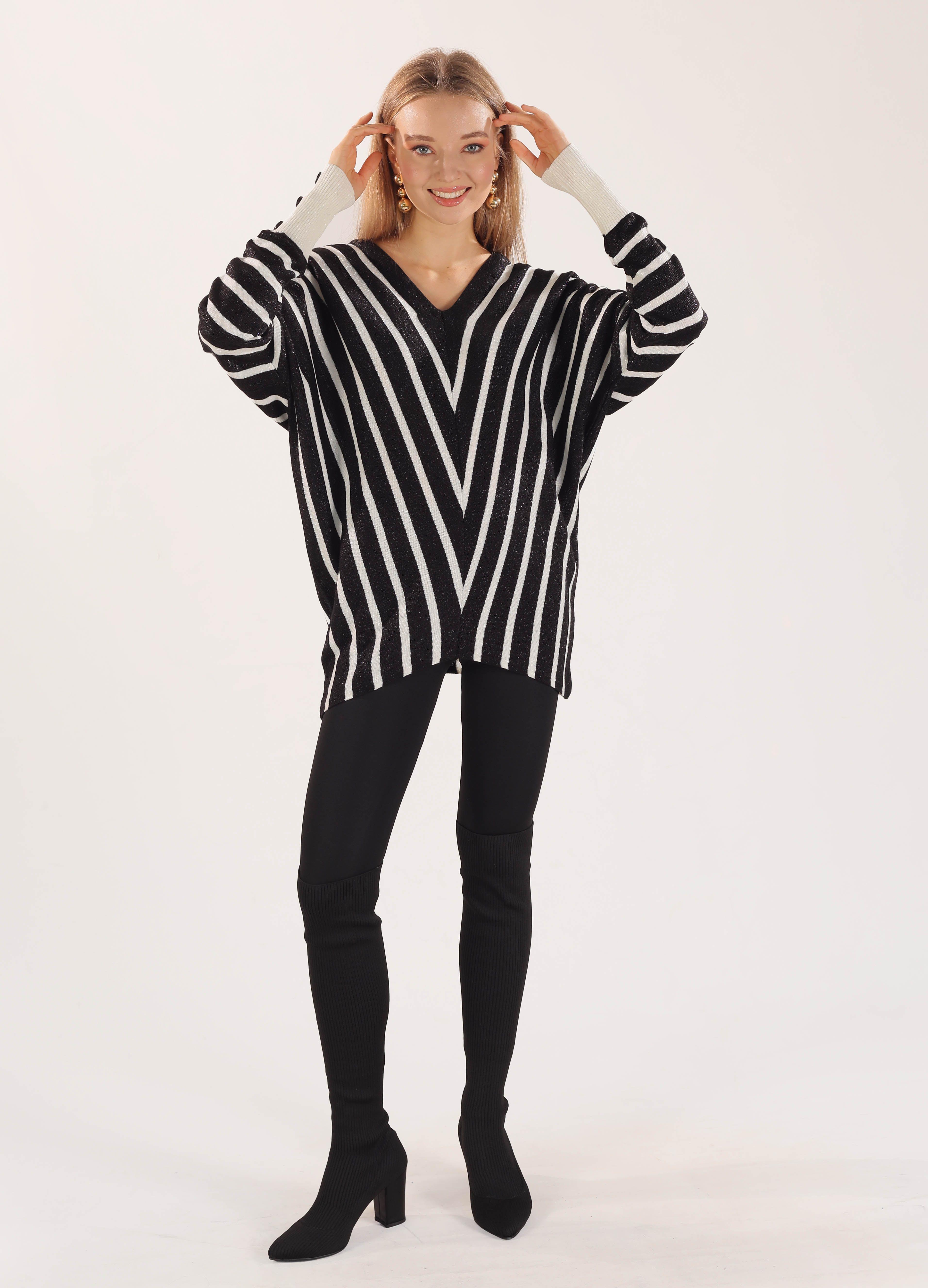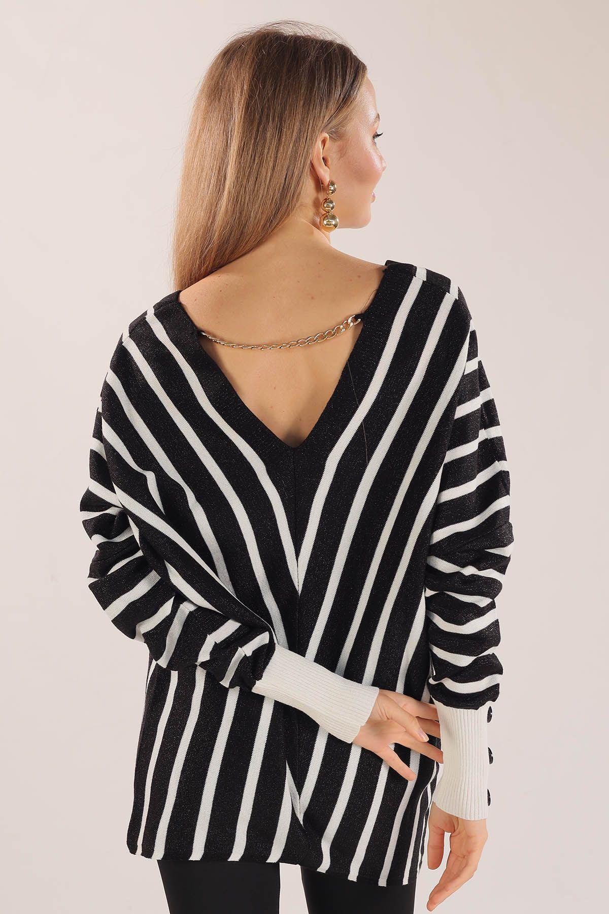 Siyah Omuz Zincir Çizgili Kazak 21004
