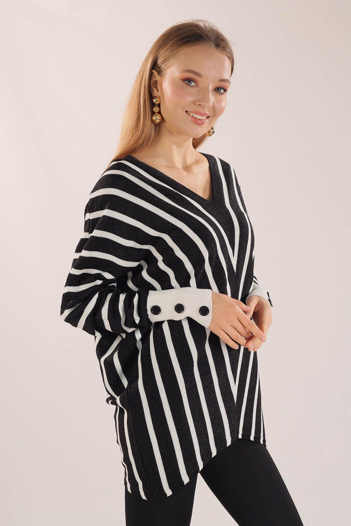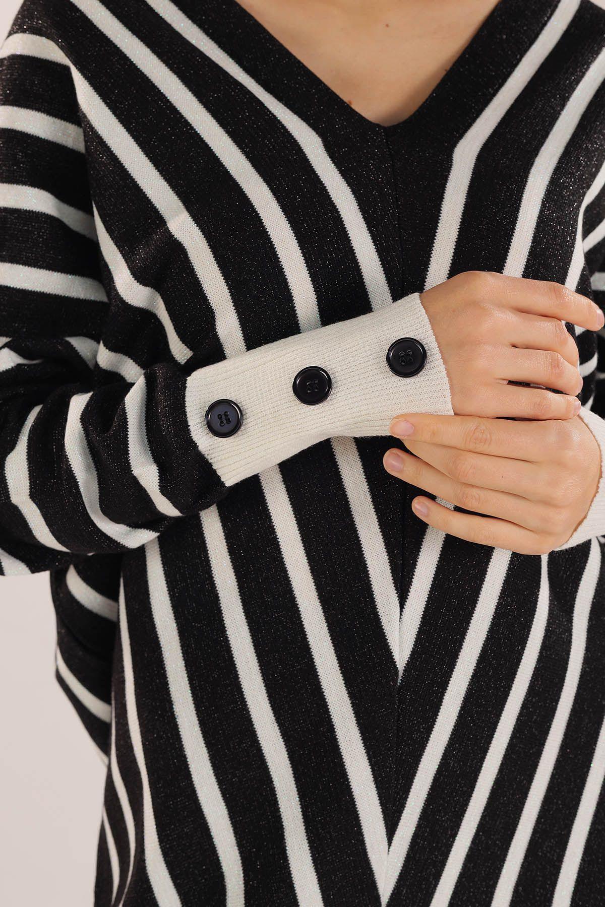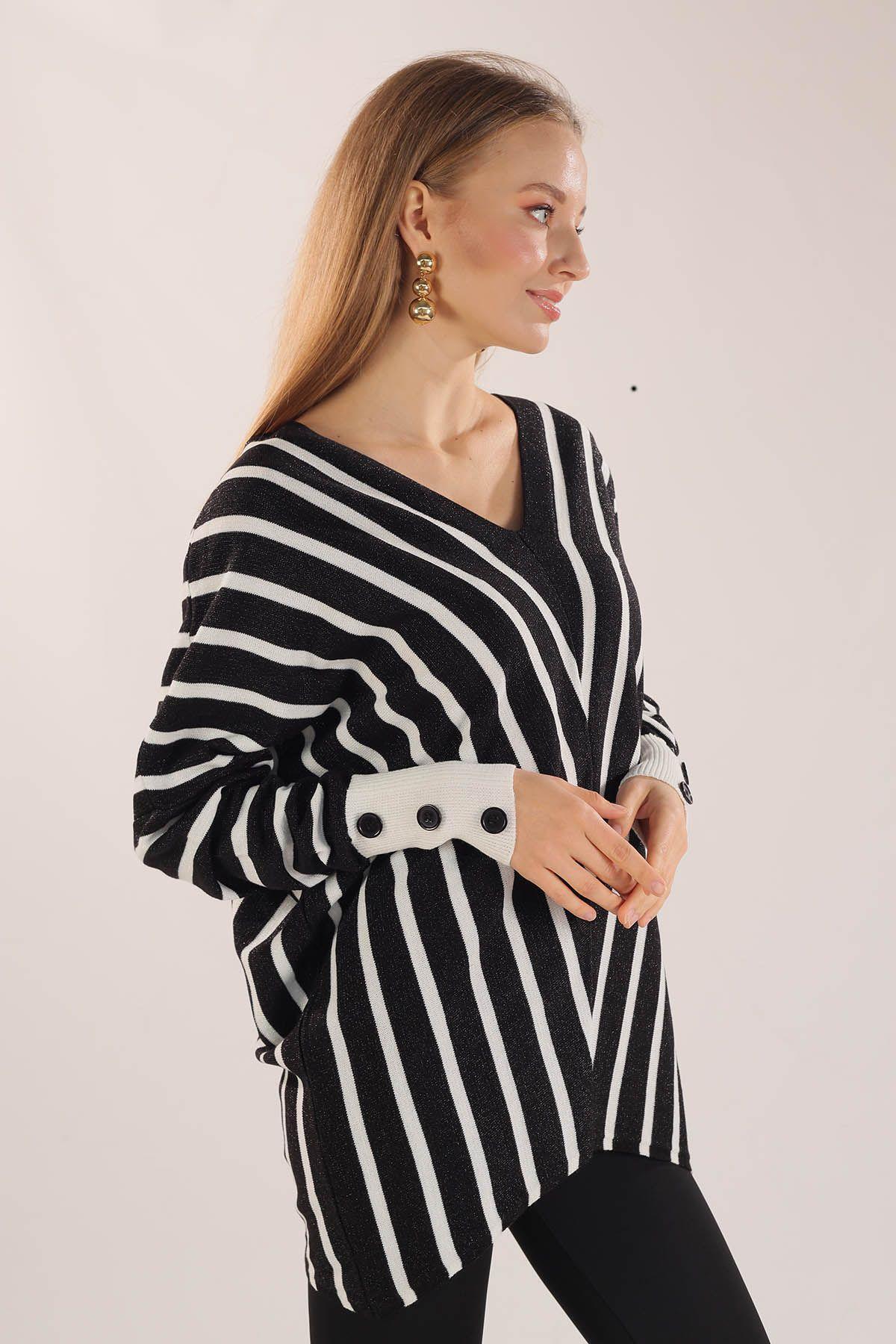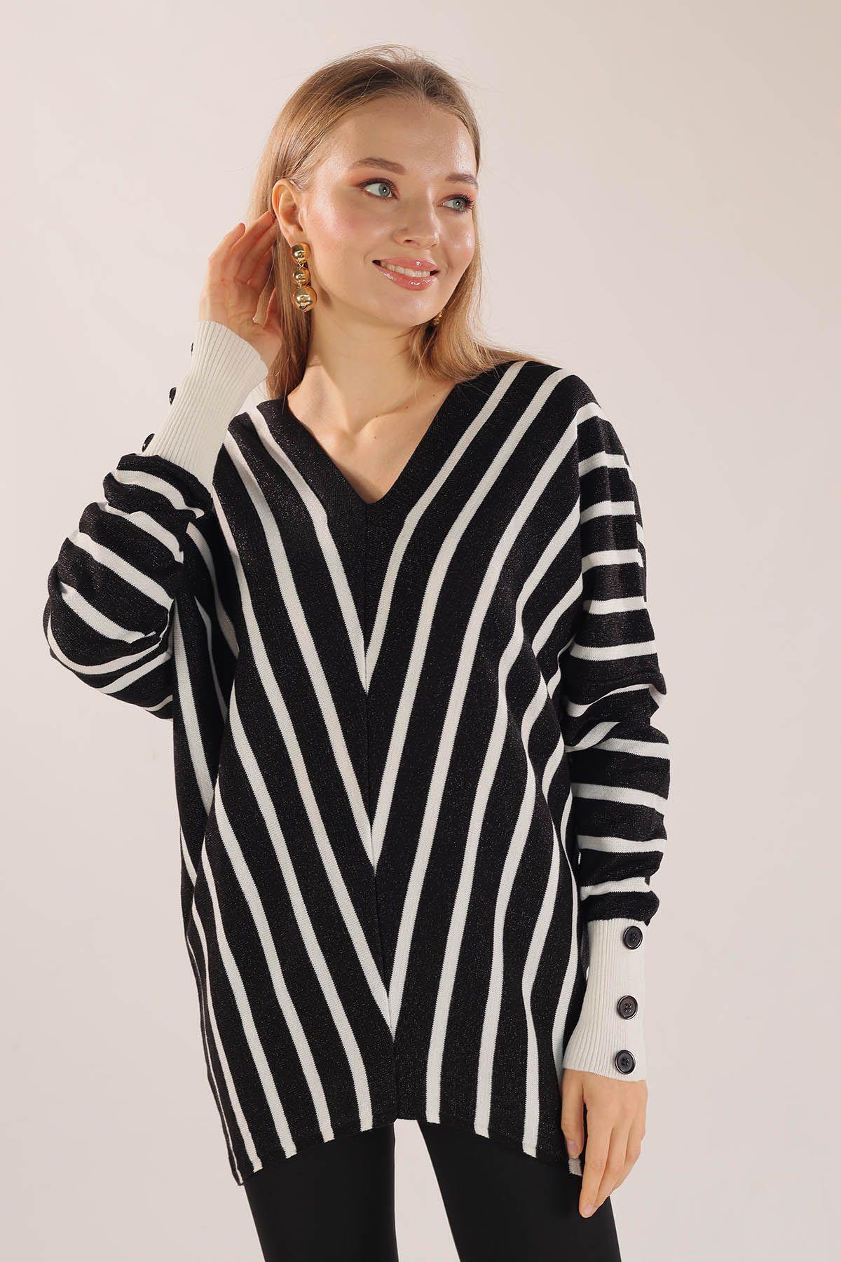 Siyah Omuz Zincir Çizgili Kazak 21004