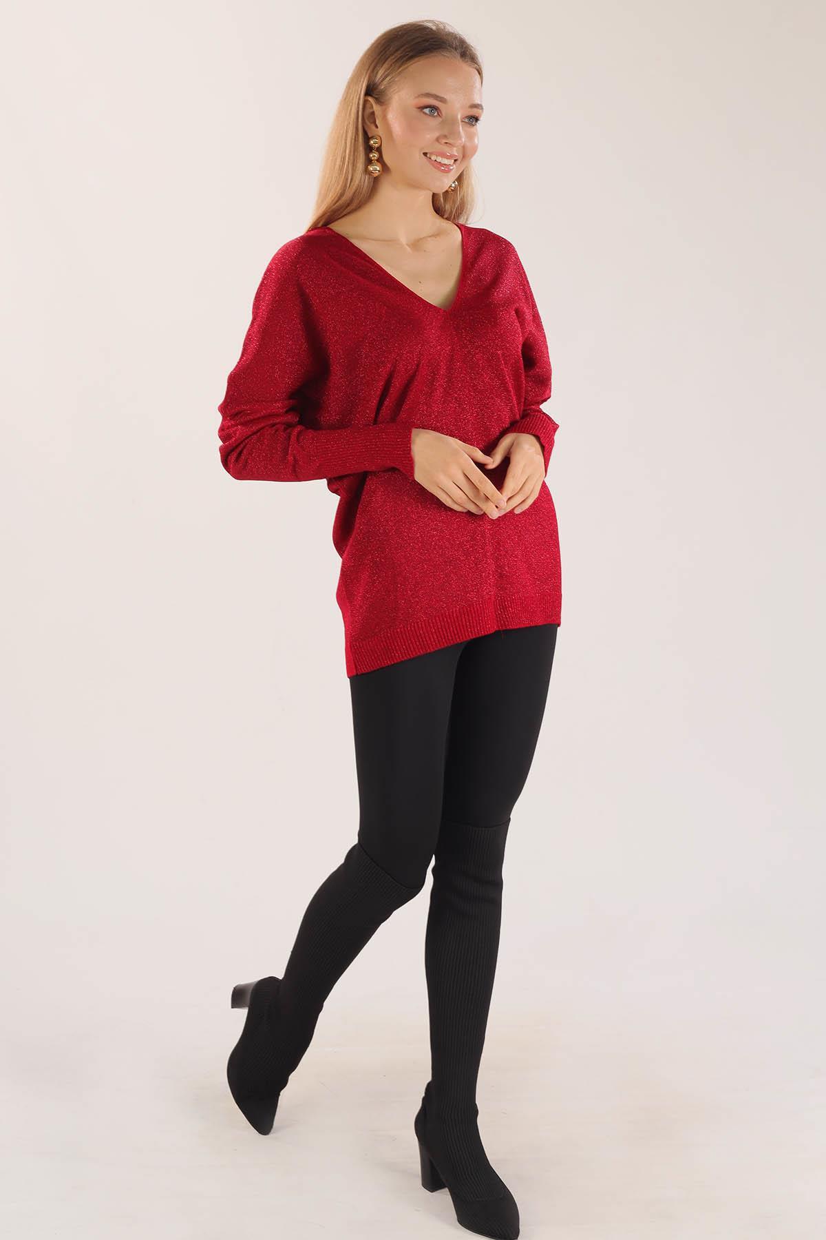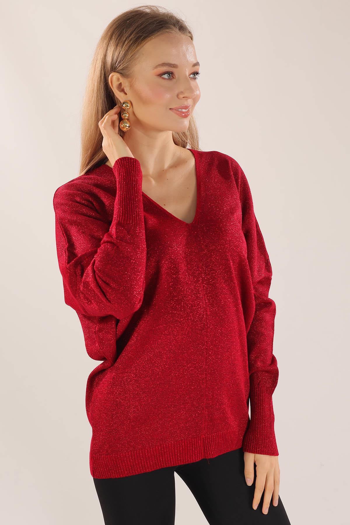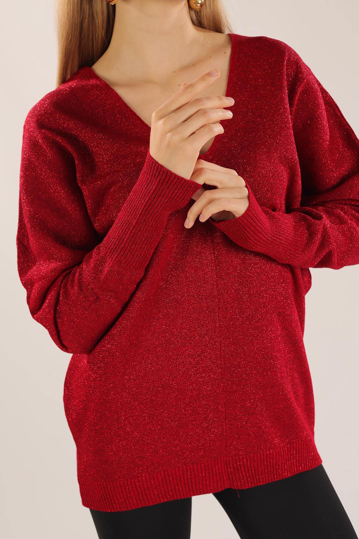 Siyah-Kırmızı Yıldız Baskılı Oversize Kazak 2474 - RAYS Siyah-Kırmızı Yıldız Baskılı Oversize Kazak 2474 - RAYS (1)