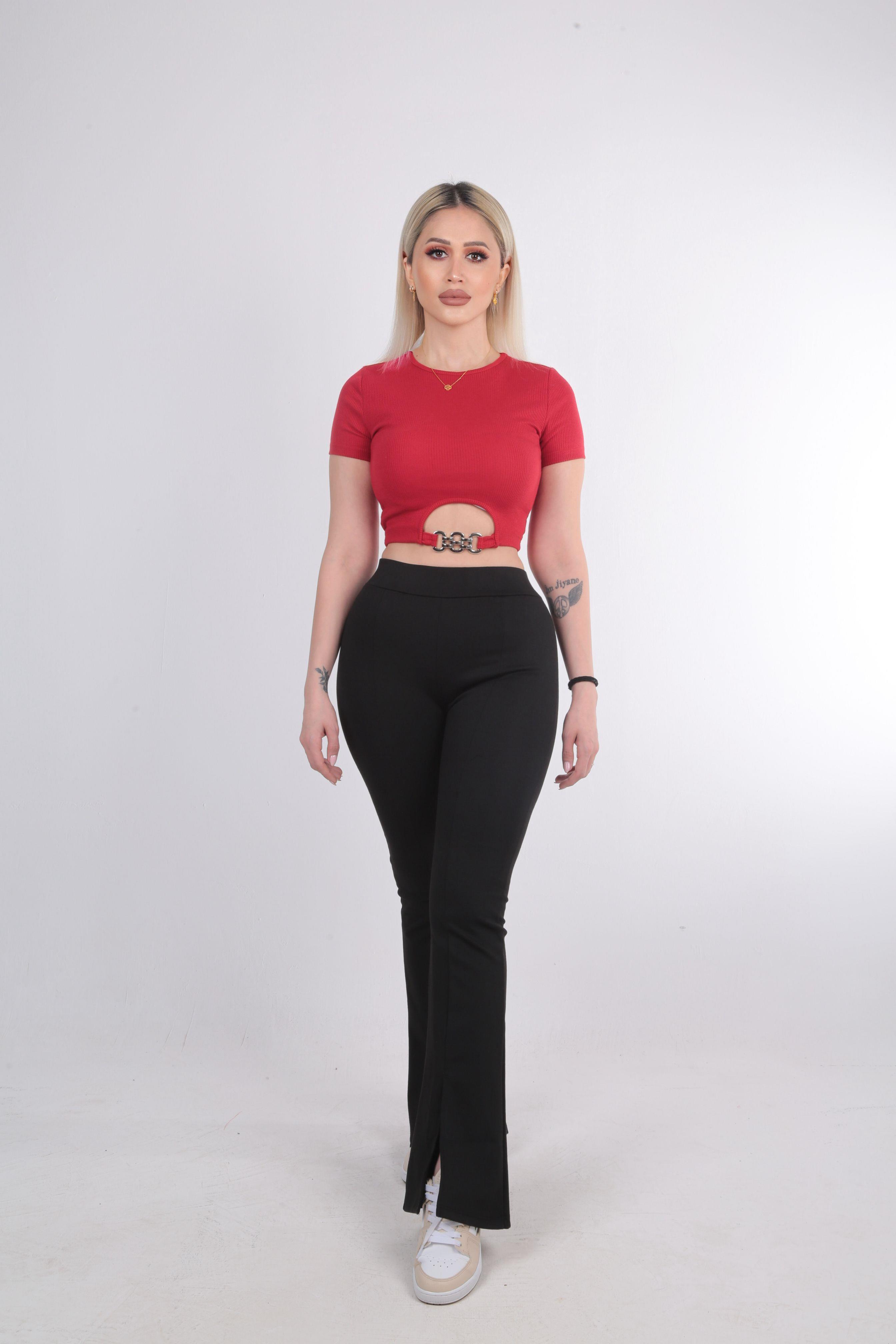 Siyah İspanyol Paça Yırtmaçlı Tayt 2101