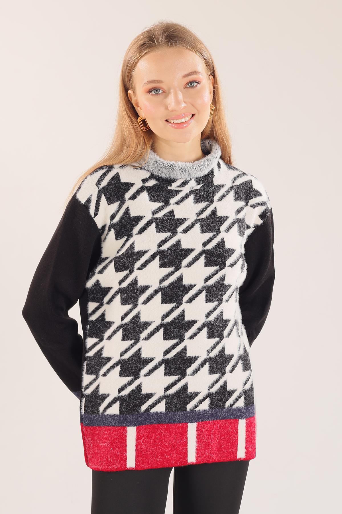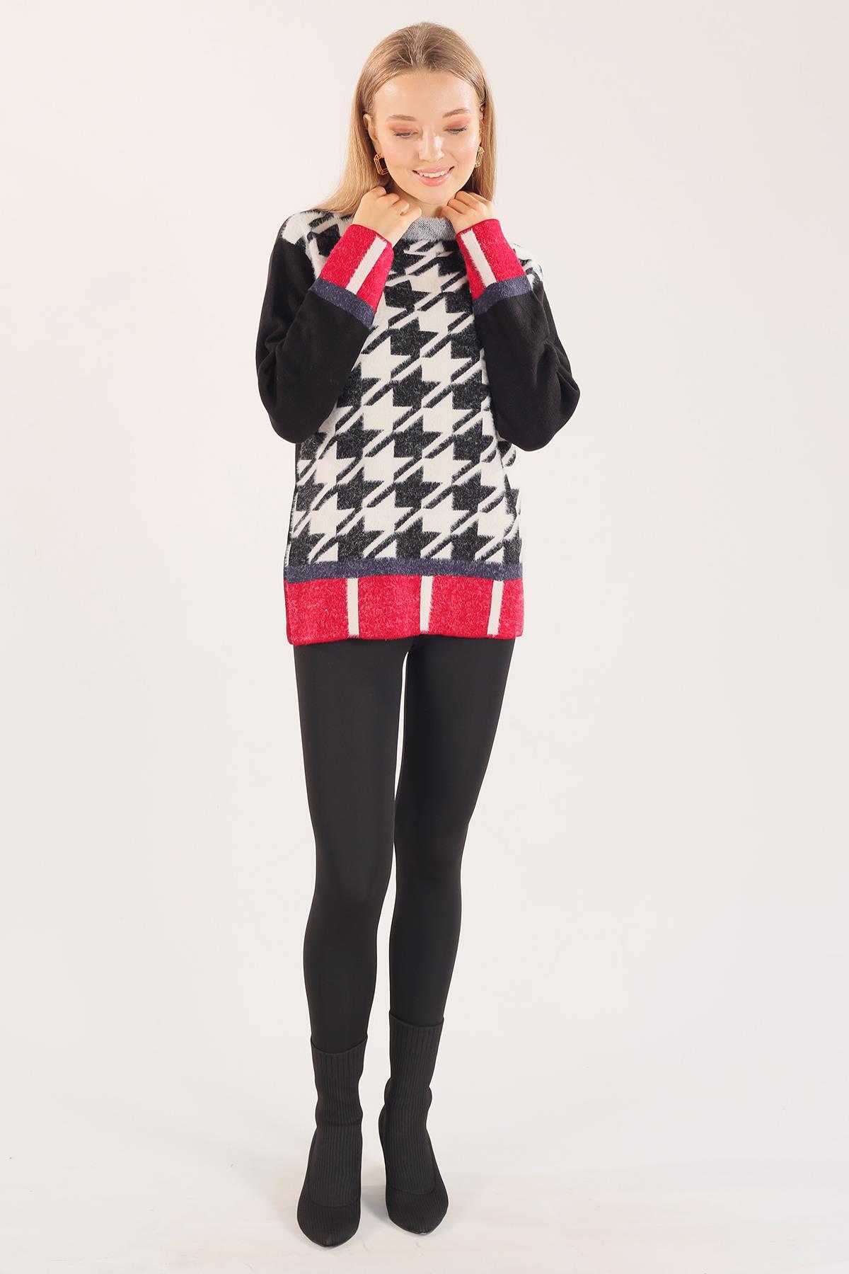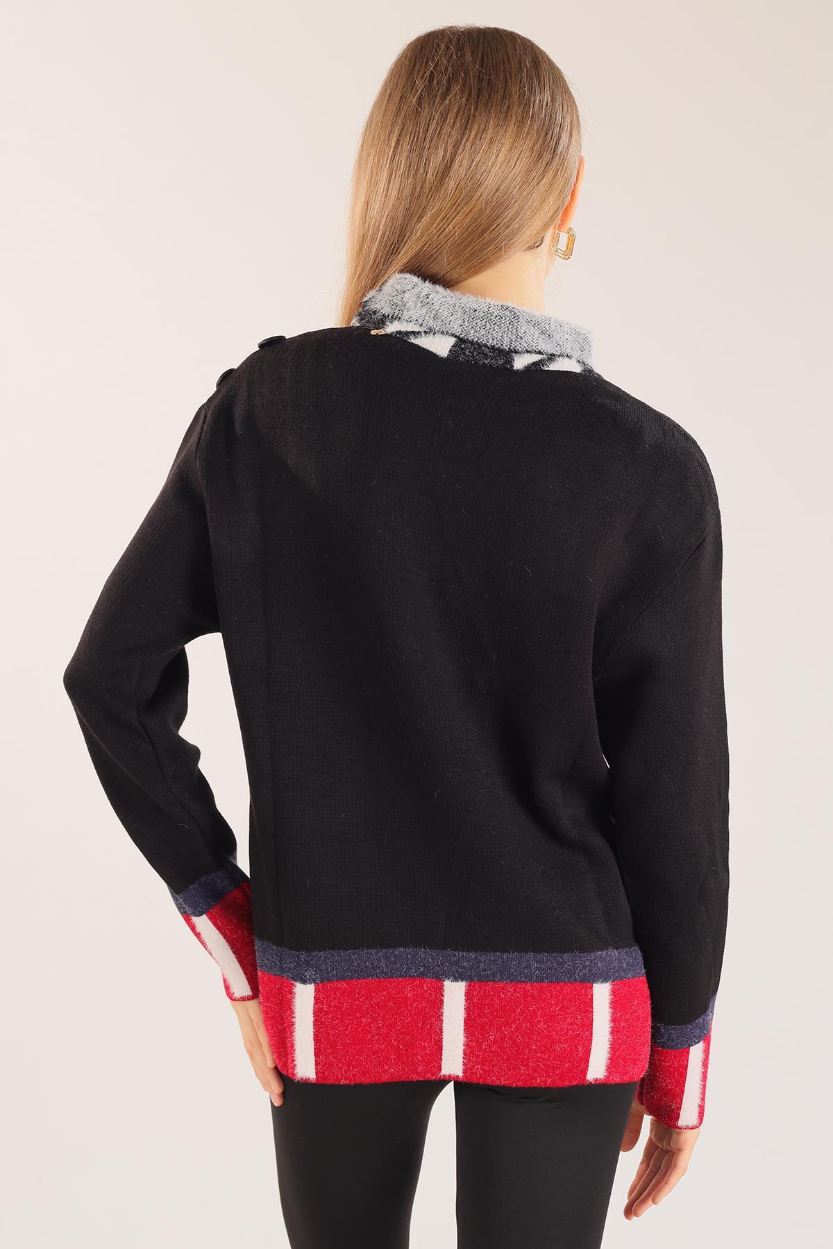 Siyah-Kırmızı Yıldız Baskılı Oversize Kazak 2474 - RAYS Siyah-Kırmızı Yıldız Baskılı Oversize Kazak 2474 - RAYS (1)