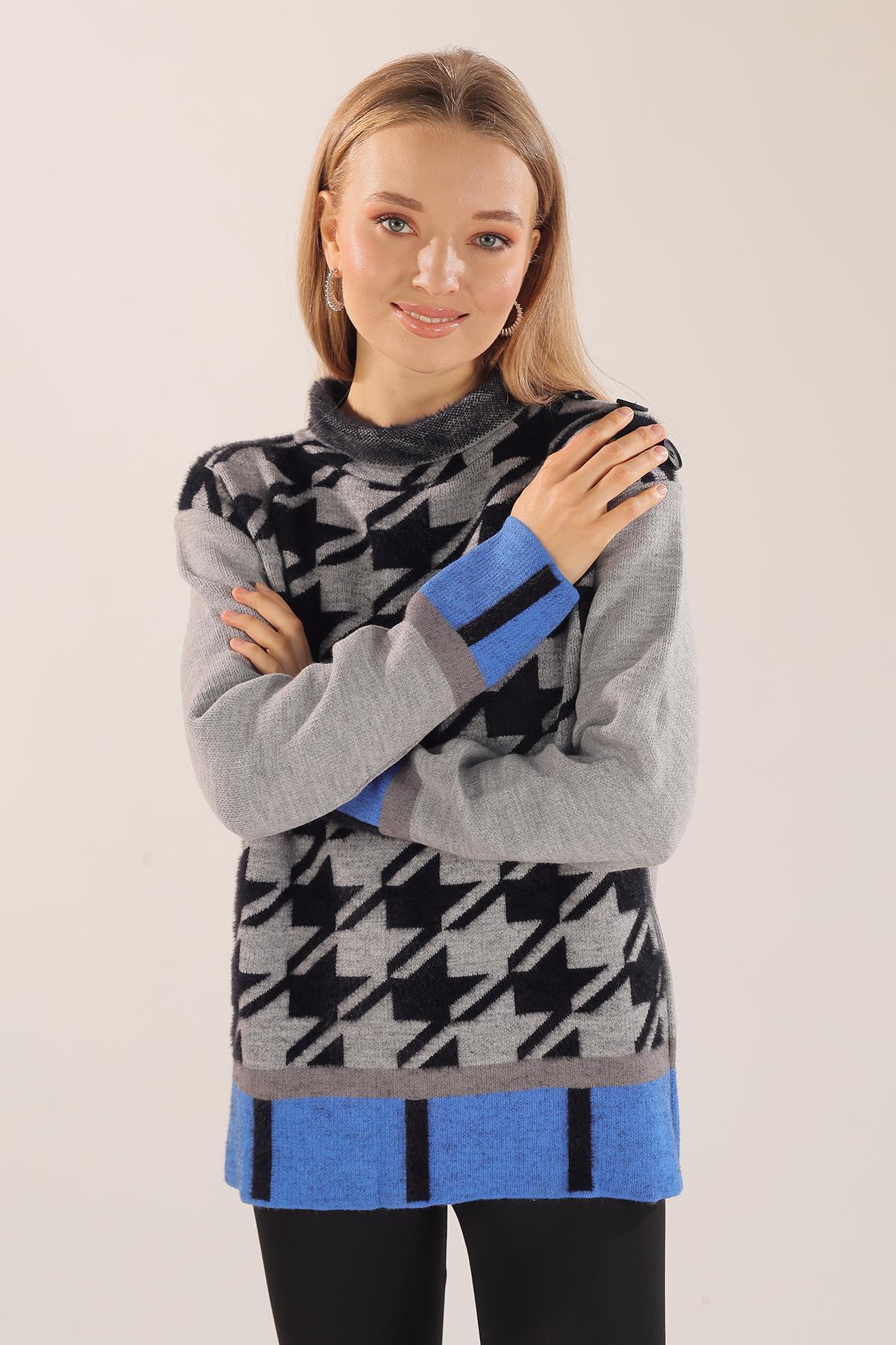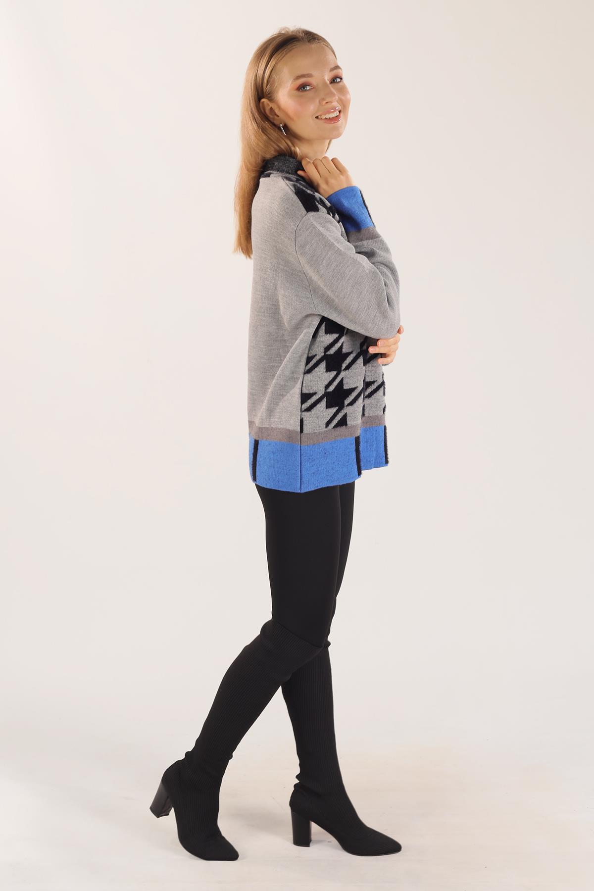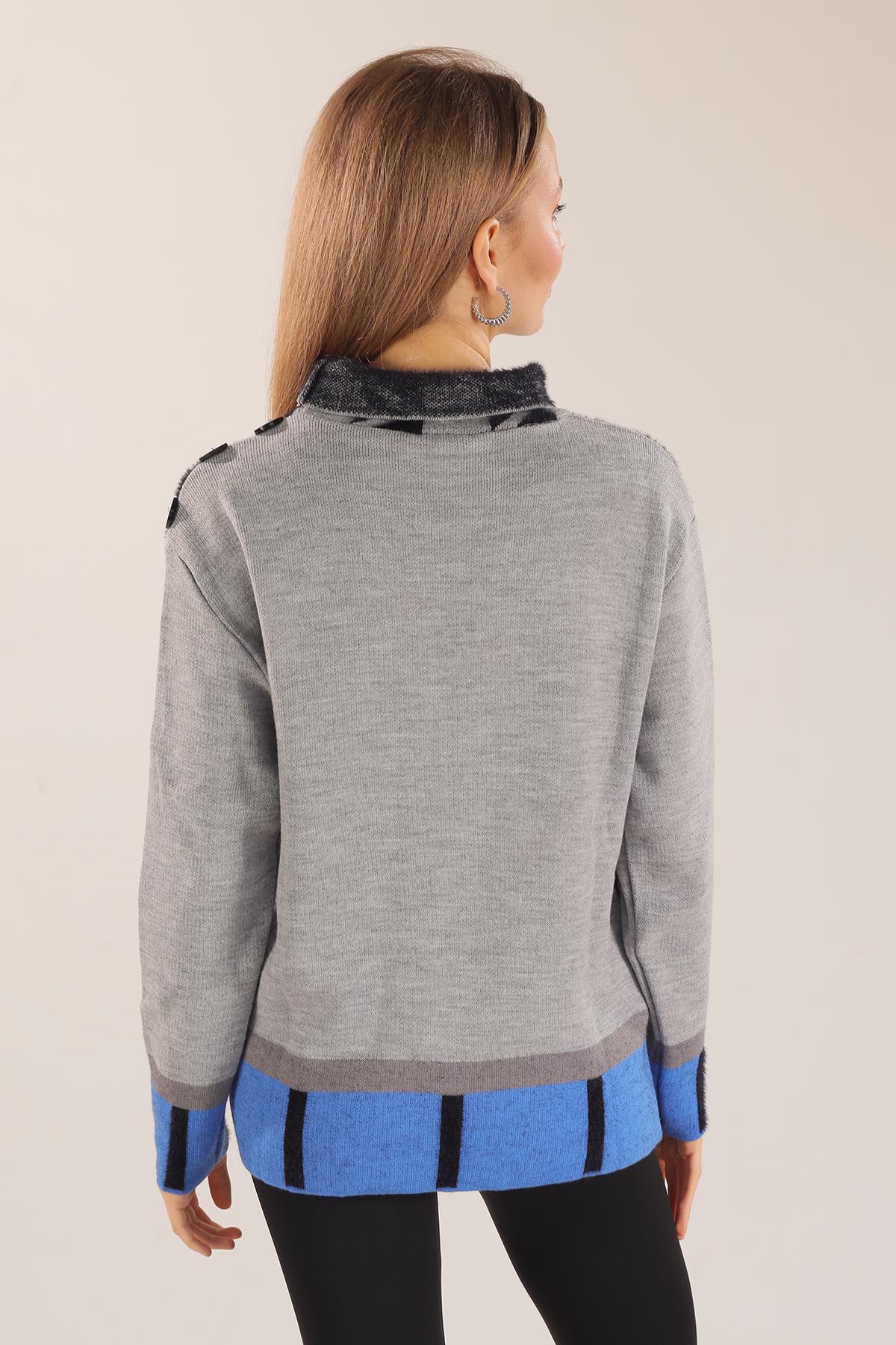 Gri Degaje Yaka Desenli Kazak 21040
