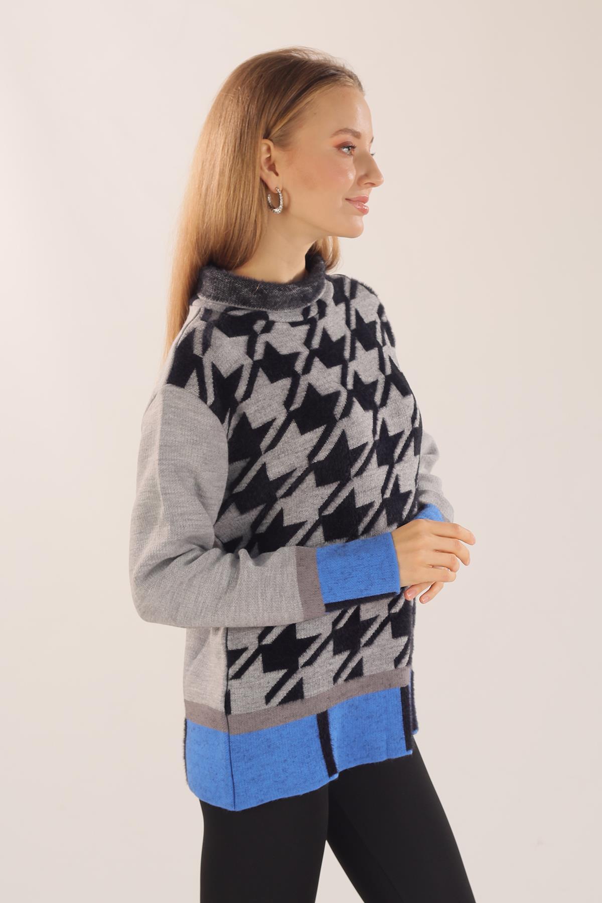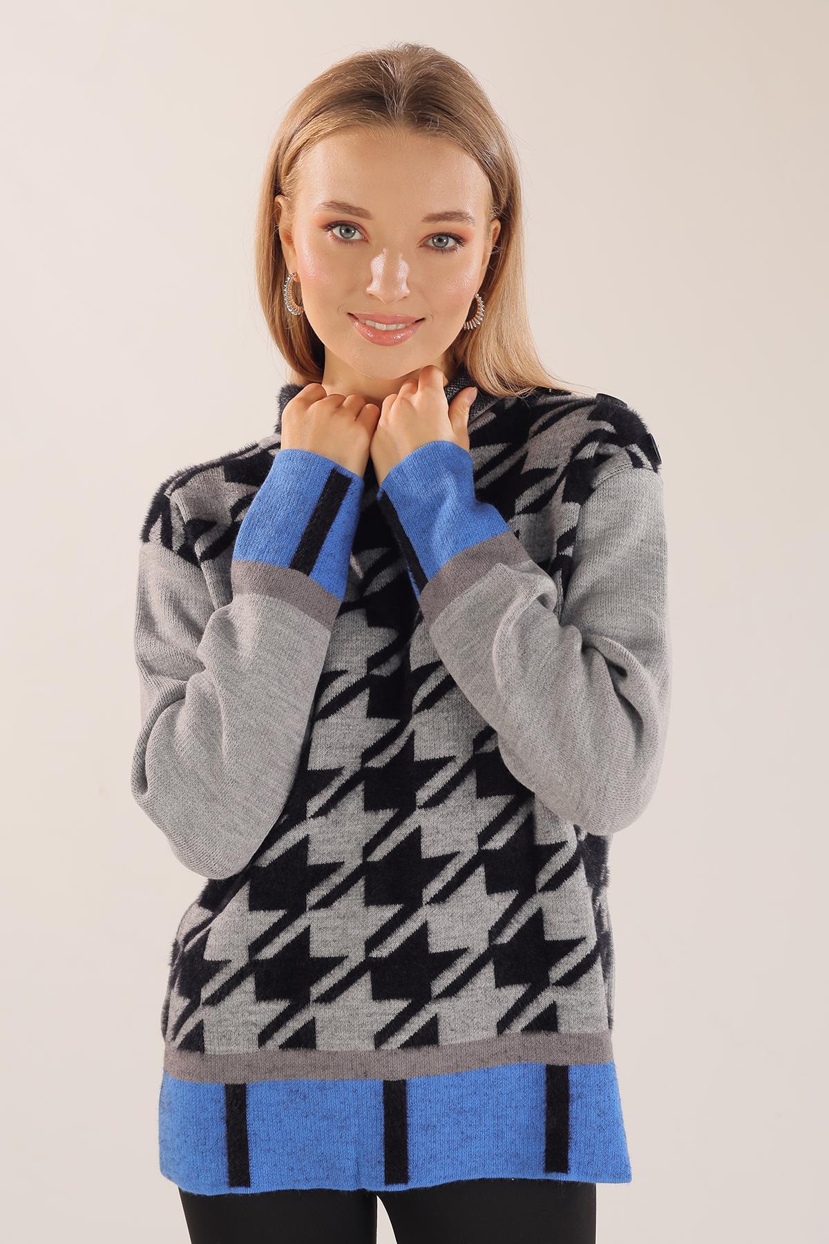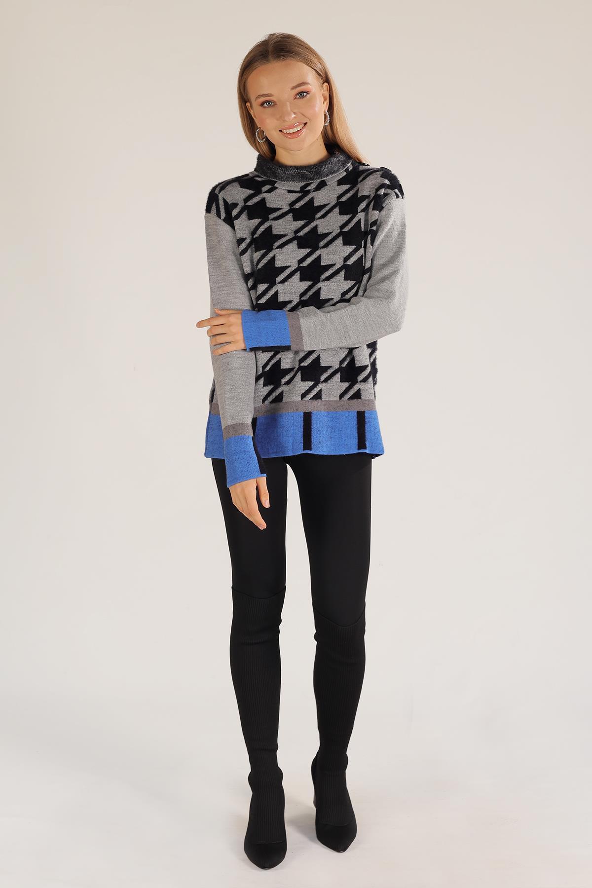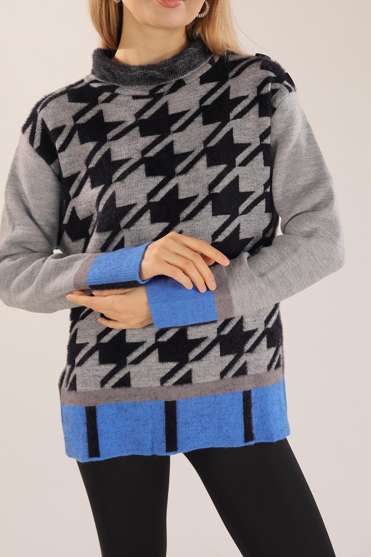 Gri Degaje Yaka Desenli Kazak 21040