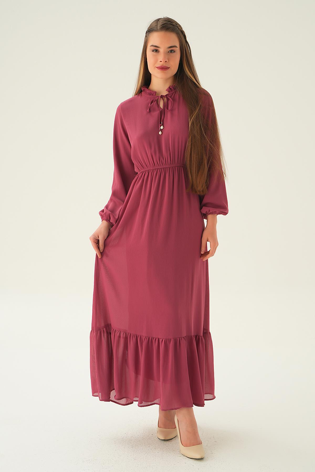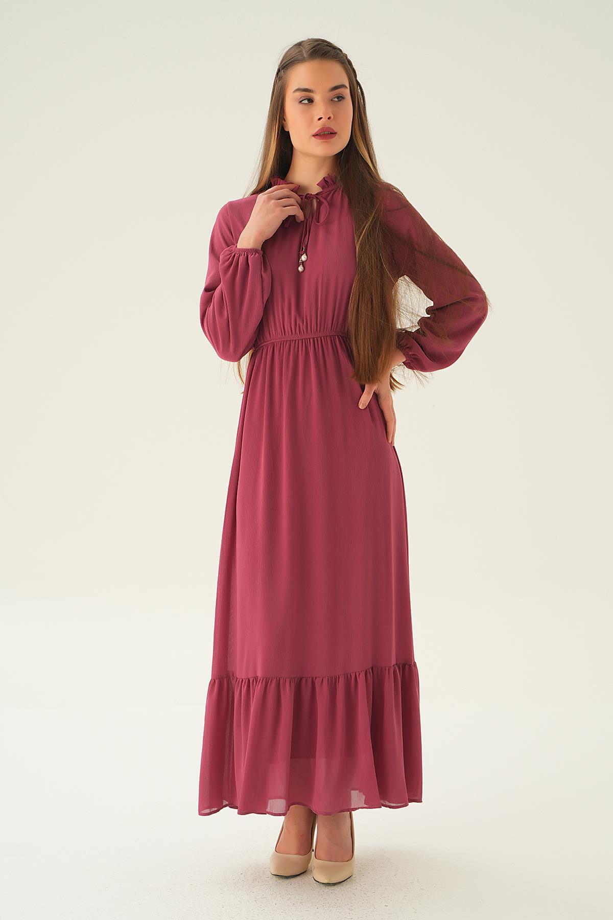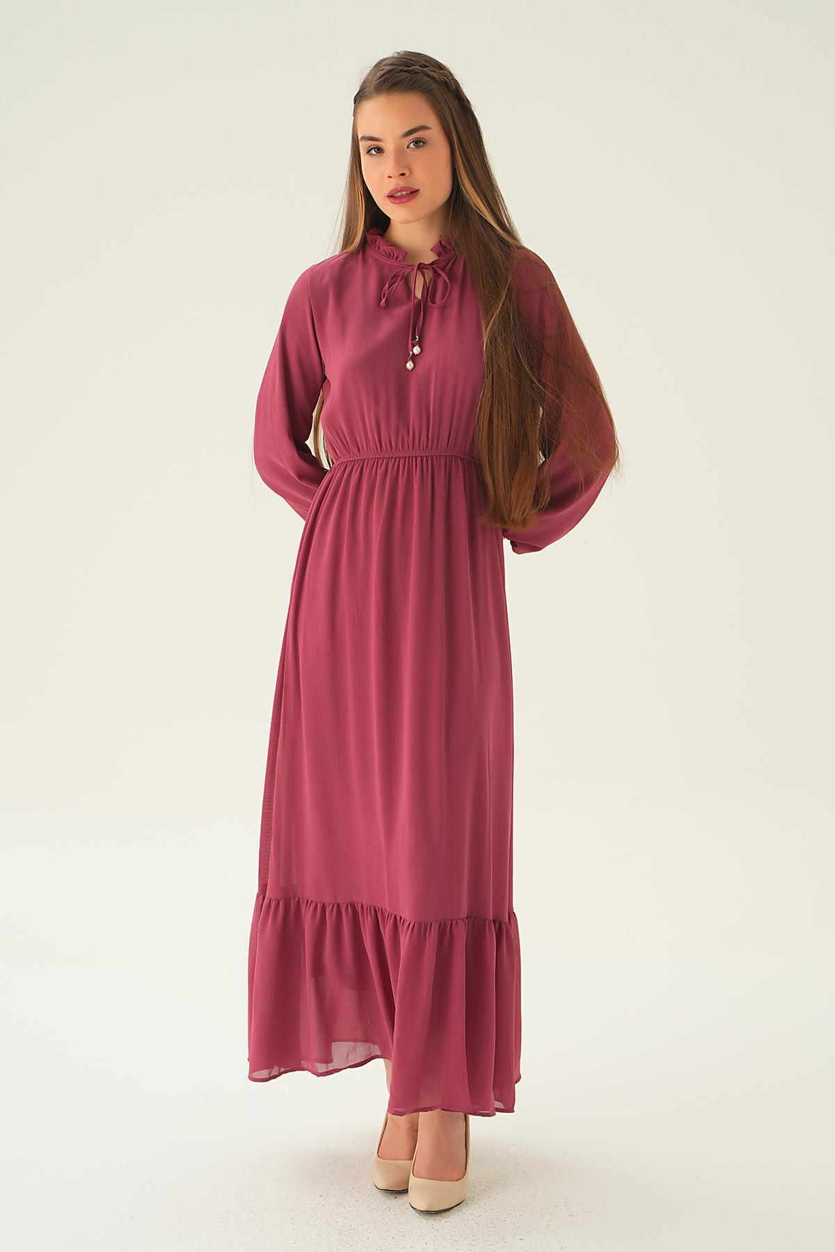 Gül Yaka Bağcık Uzun Elbise 2110