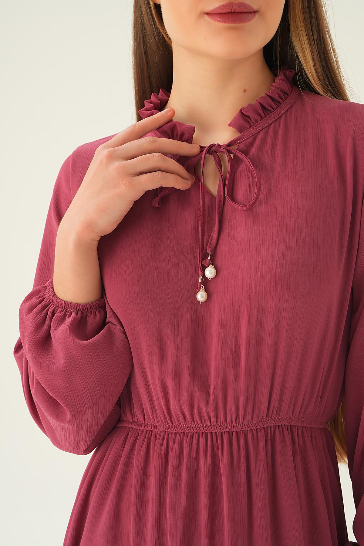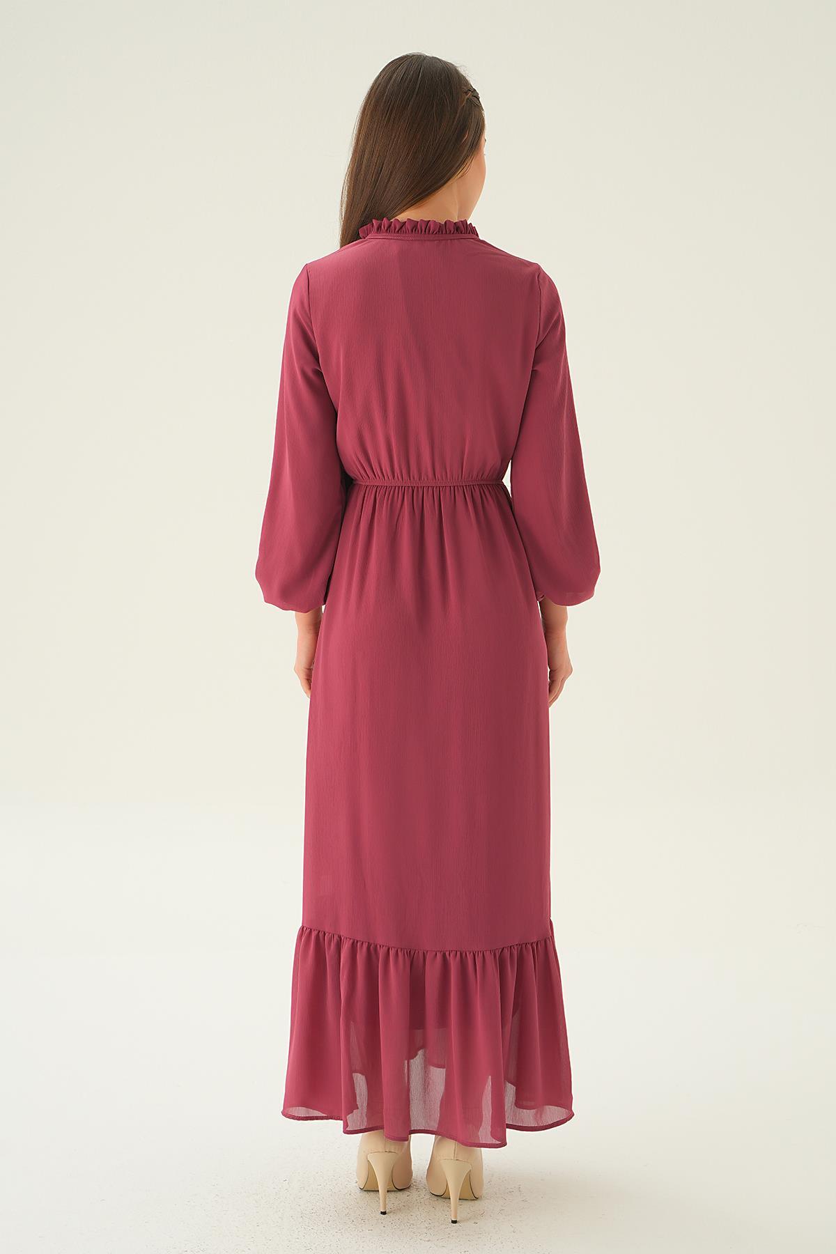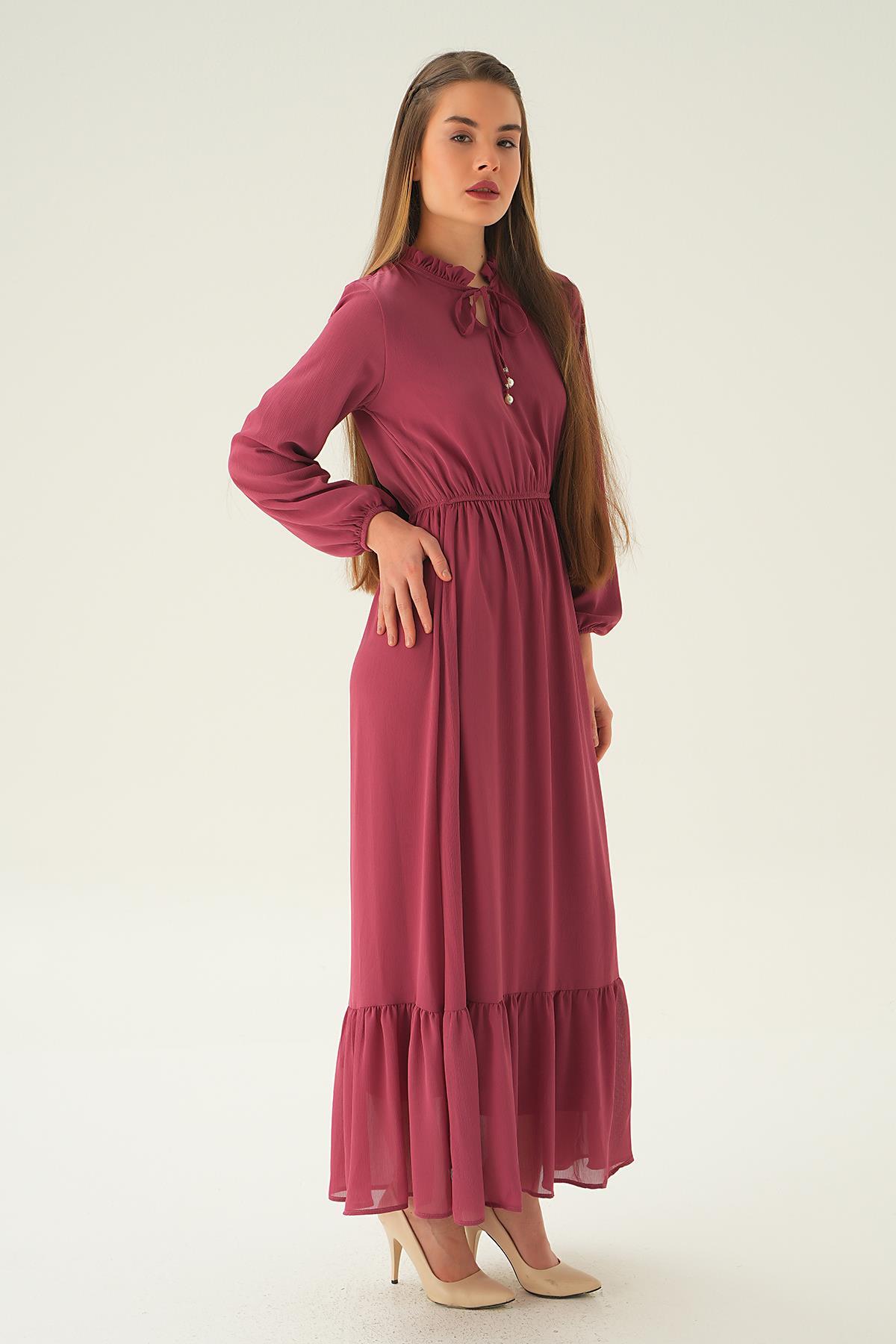 Gül Yaka Bağcık Uzun Elbise 2110