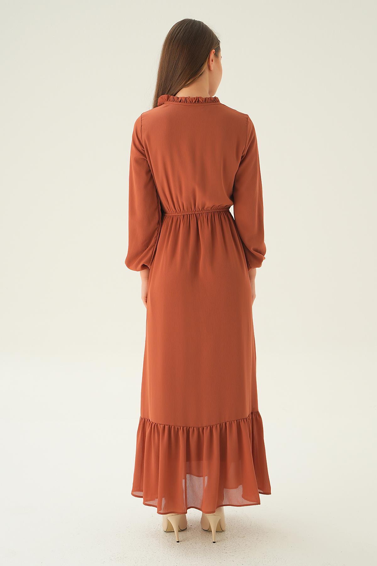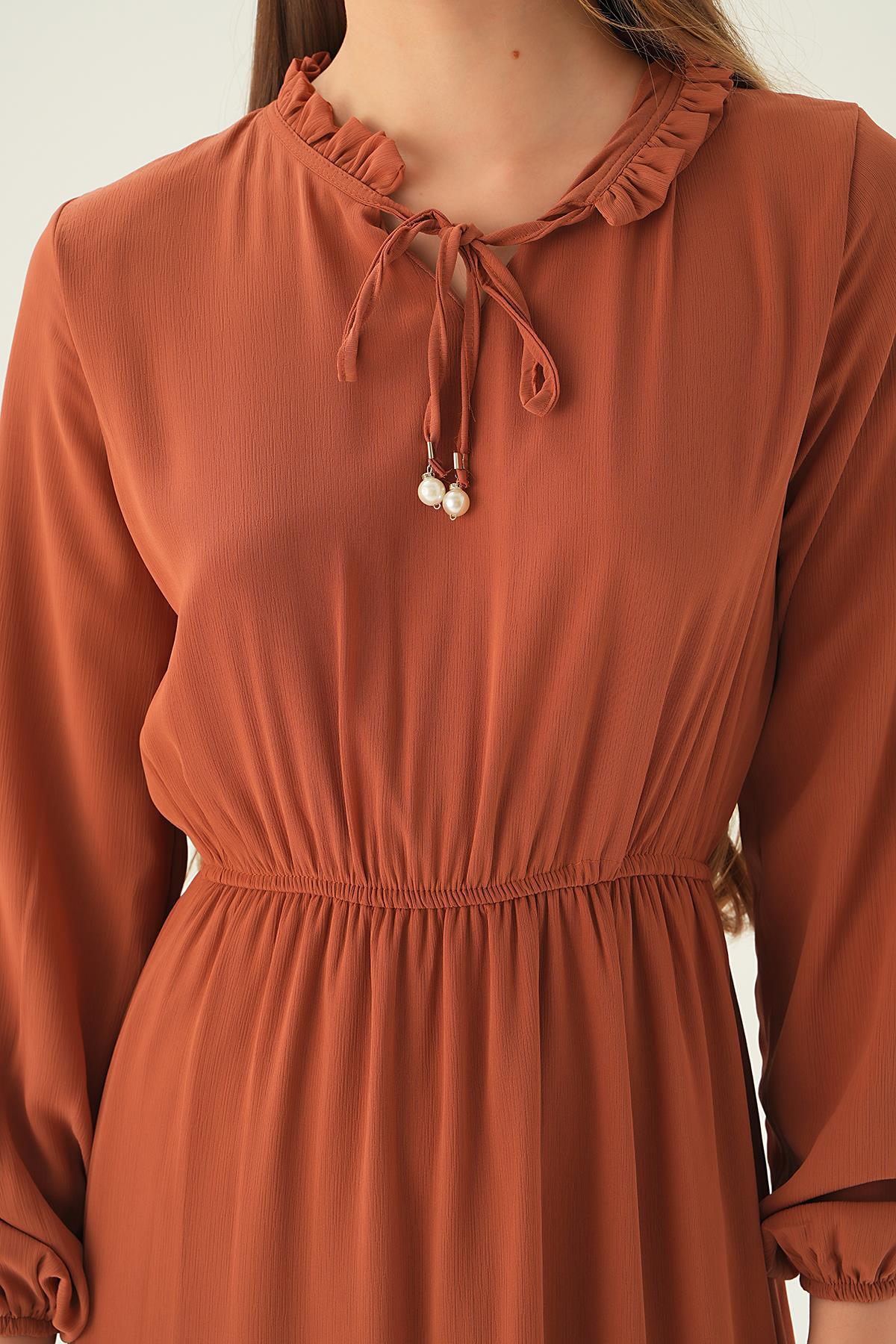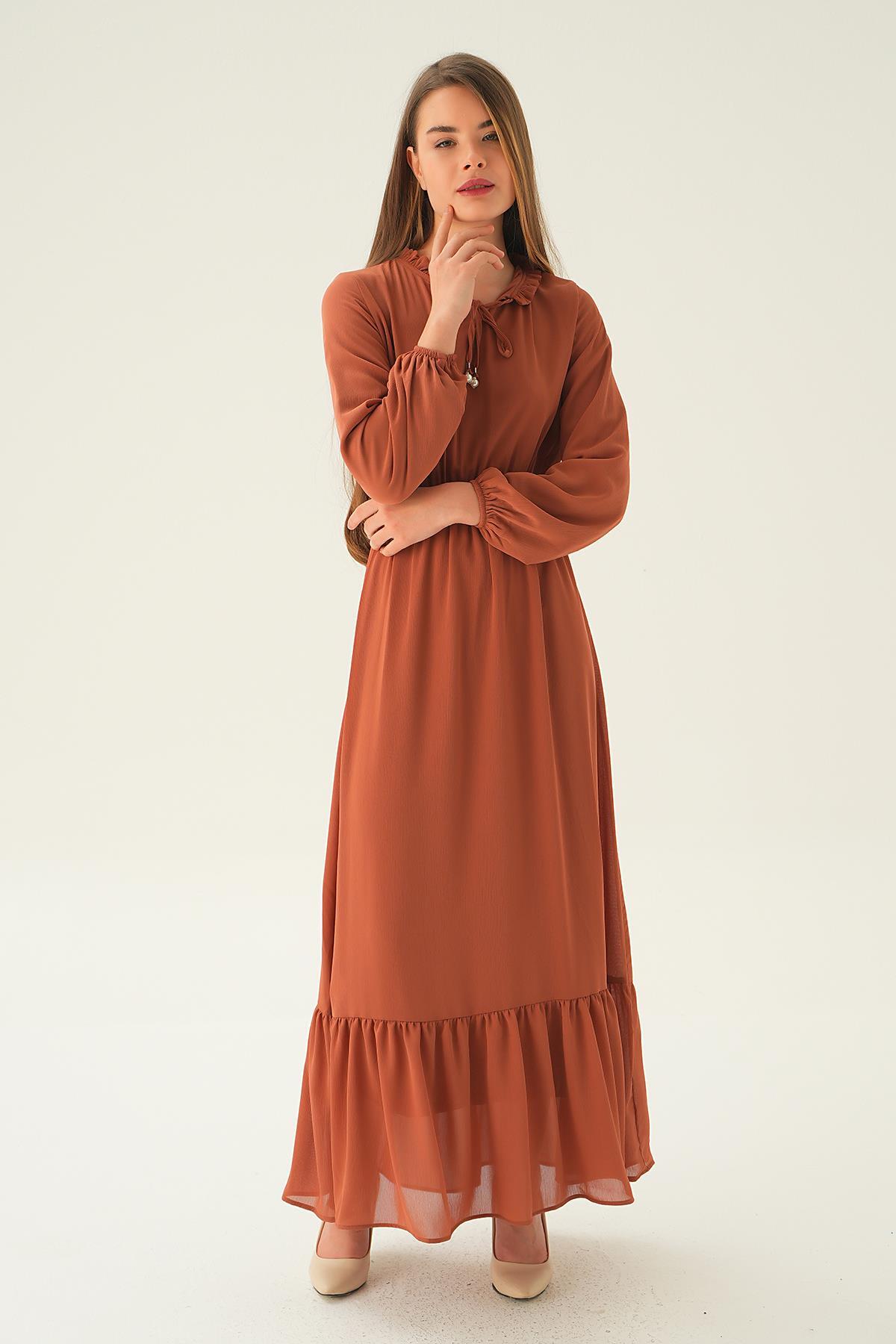 Kiremit Yaka Bağcık Uzun Elbise 2110