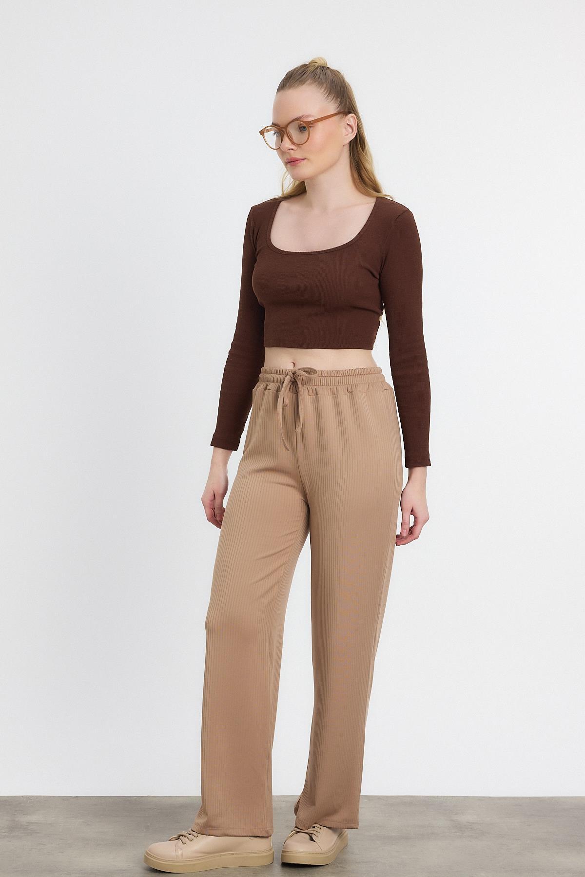 Vizon Pileli Geniş Paça Pantolon 3867 - RAYS Vizon Pileli Geniş Paça Pantolon 3867 - RAYS (1)