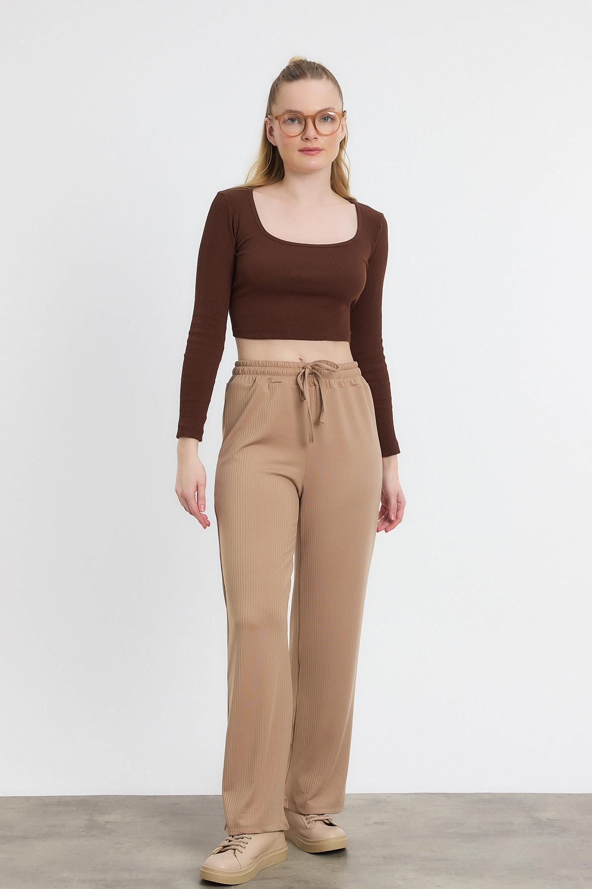 Bej Bel Lastikli Pantolon 2111
