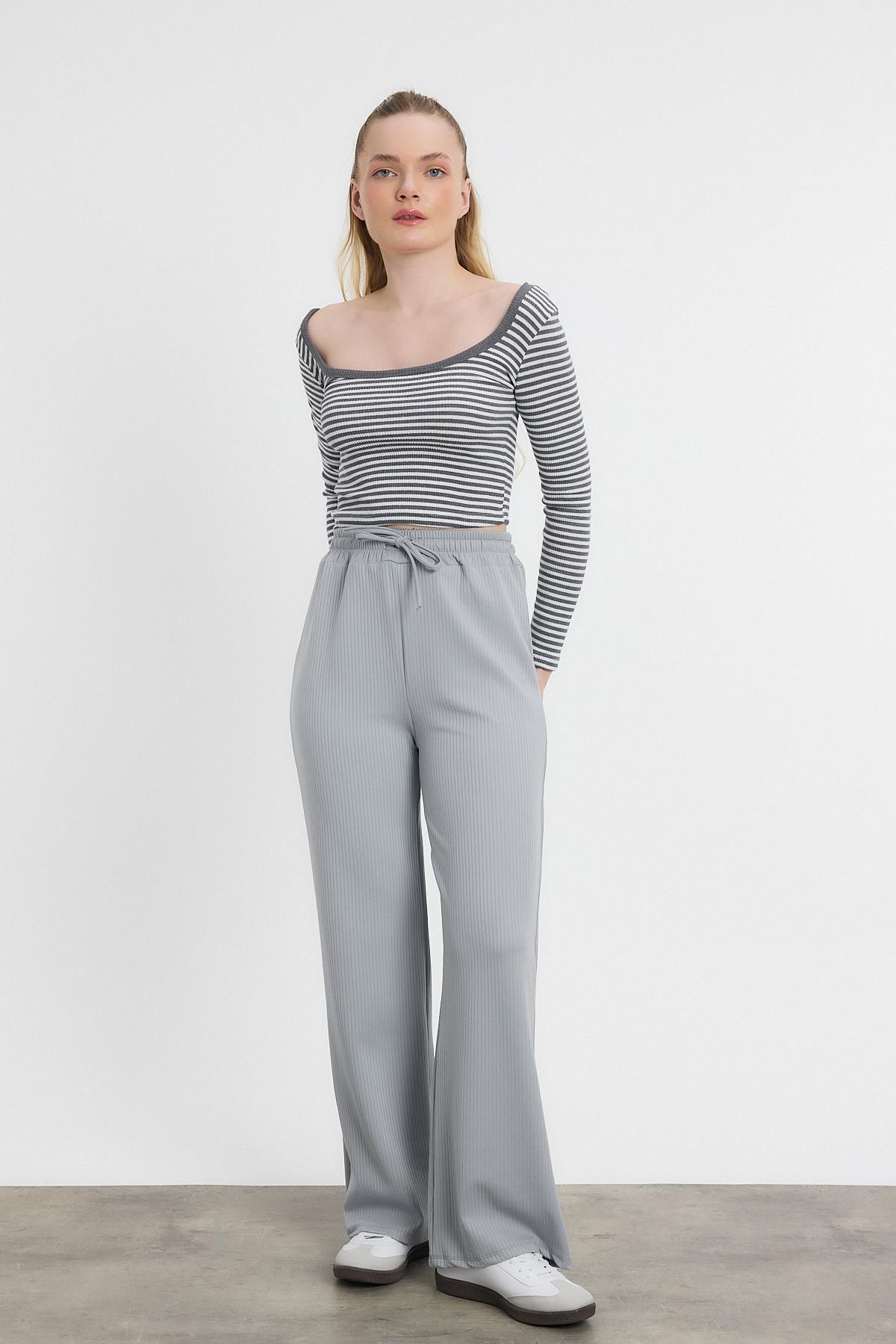 Antrasit Pileli Palazzo Pantolon 3871 - RAYS Antrasit Pileli Palazzo Pantolon 3871 - RAYS (1)