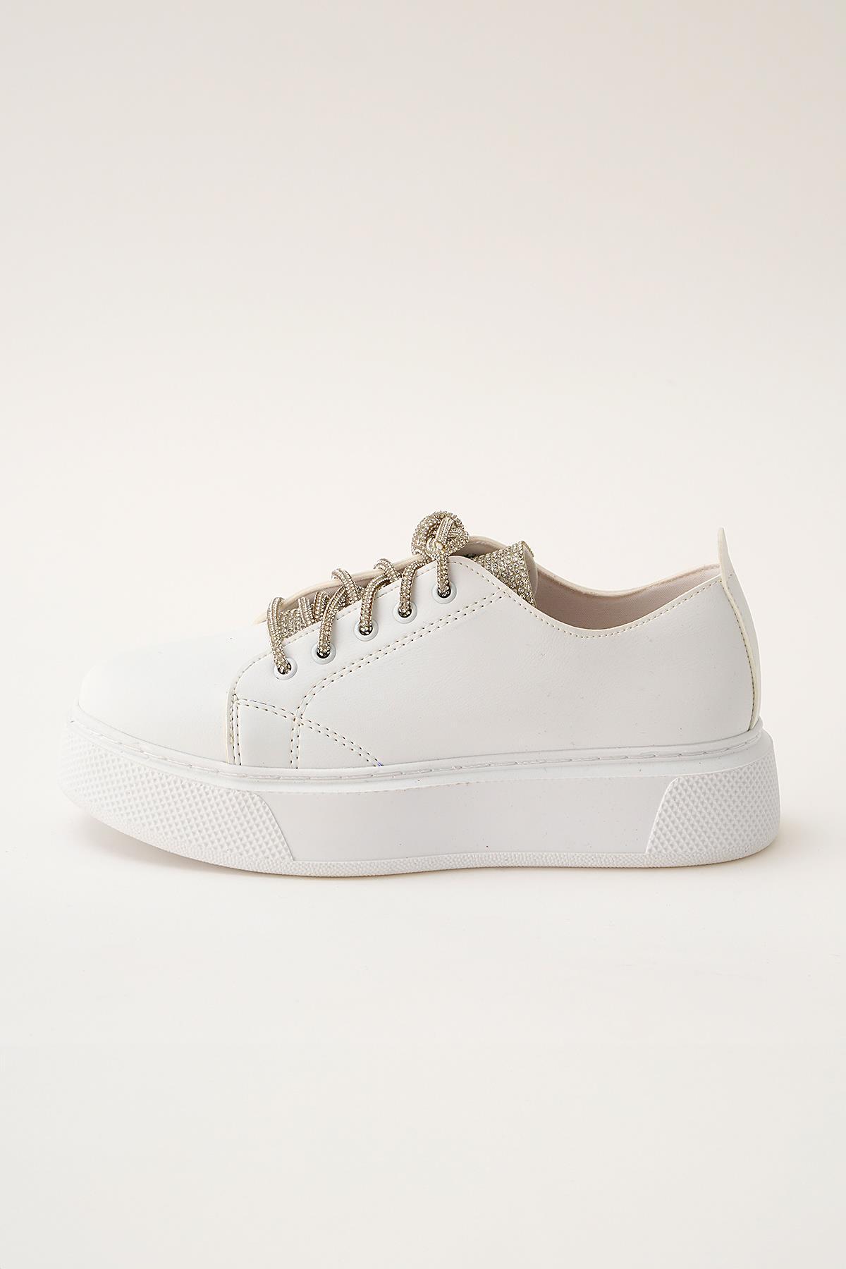 Beyaz Sim Bağcık Detay Ayakkabı 2121