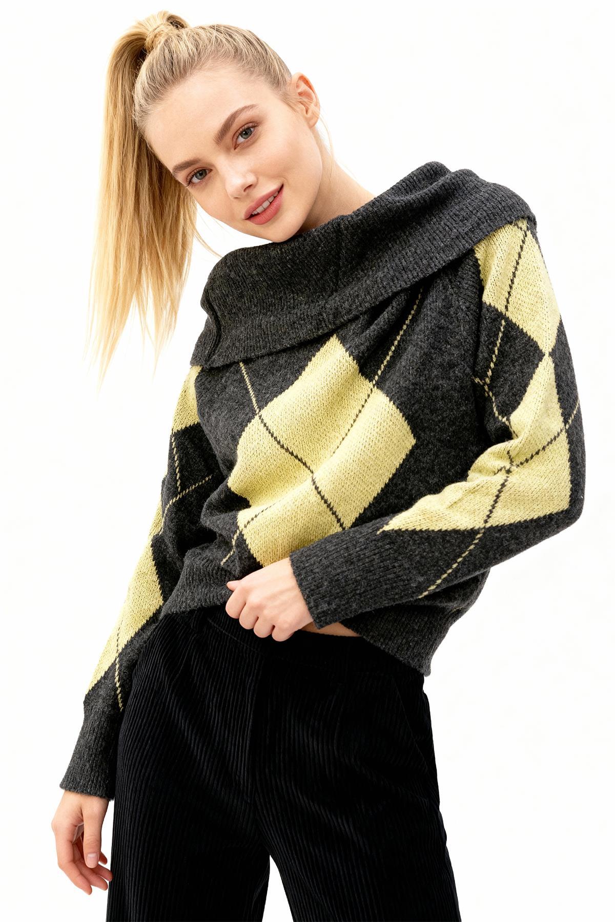 2123 Baklava Desenli Kazak Antrasit-Sarı