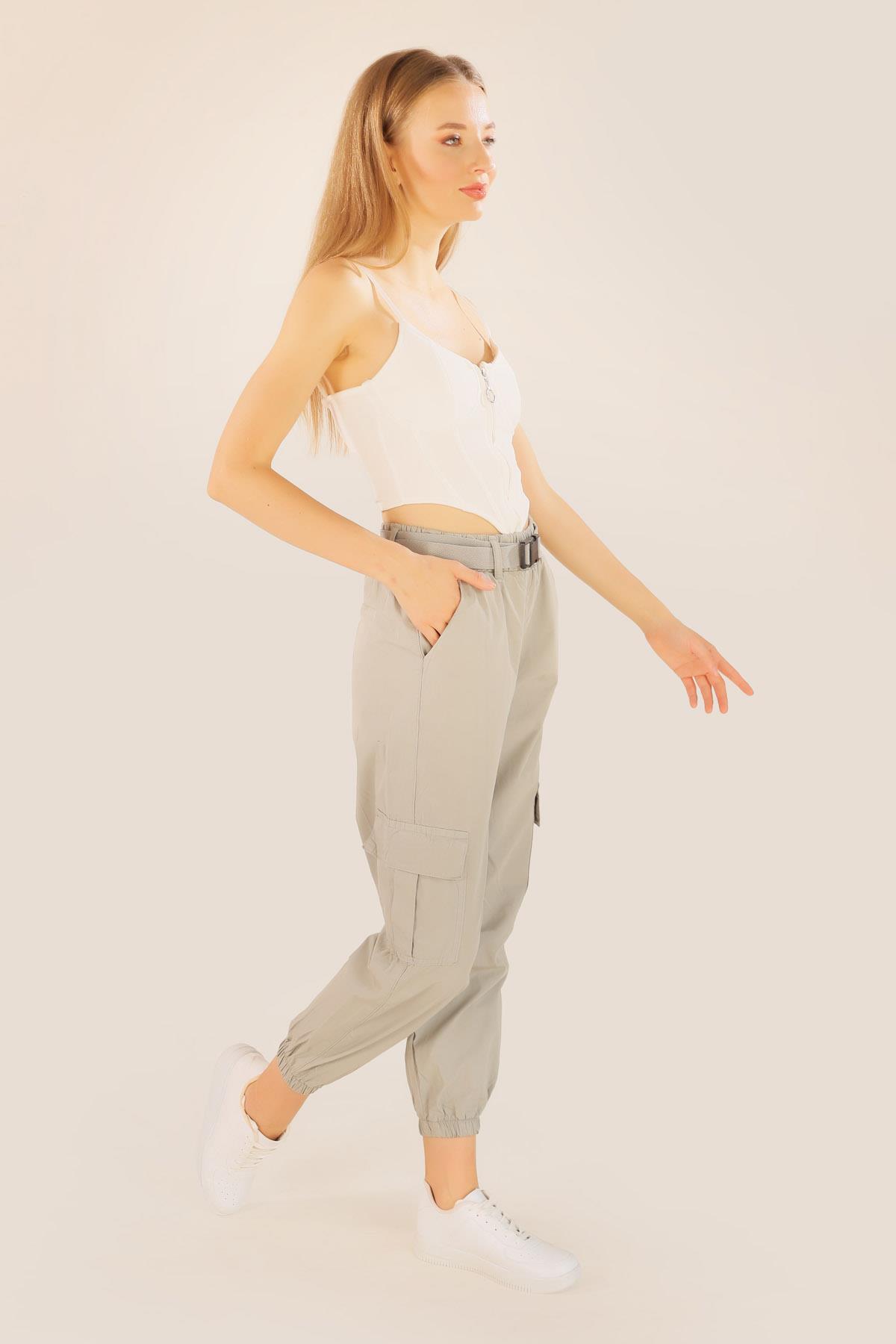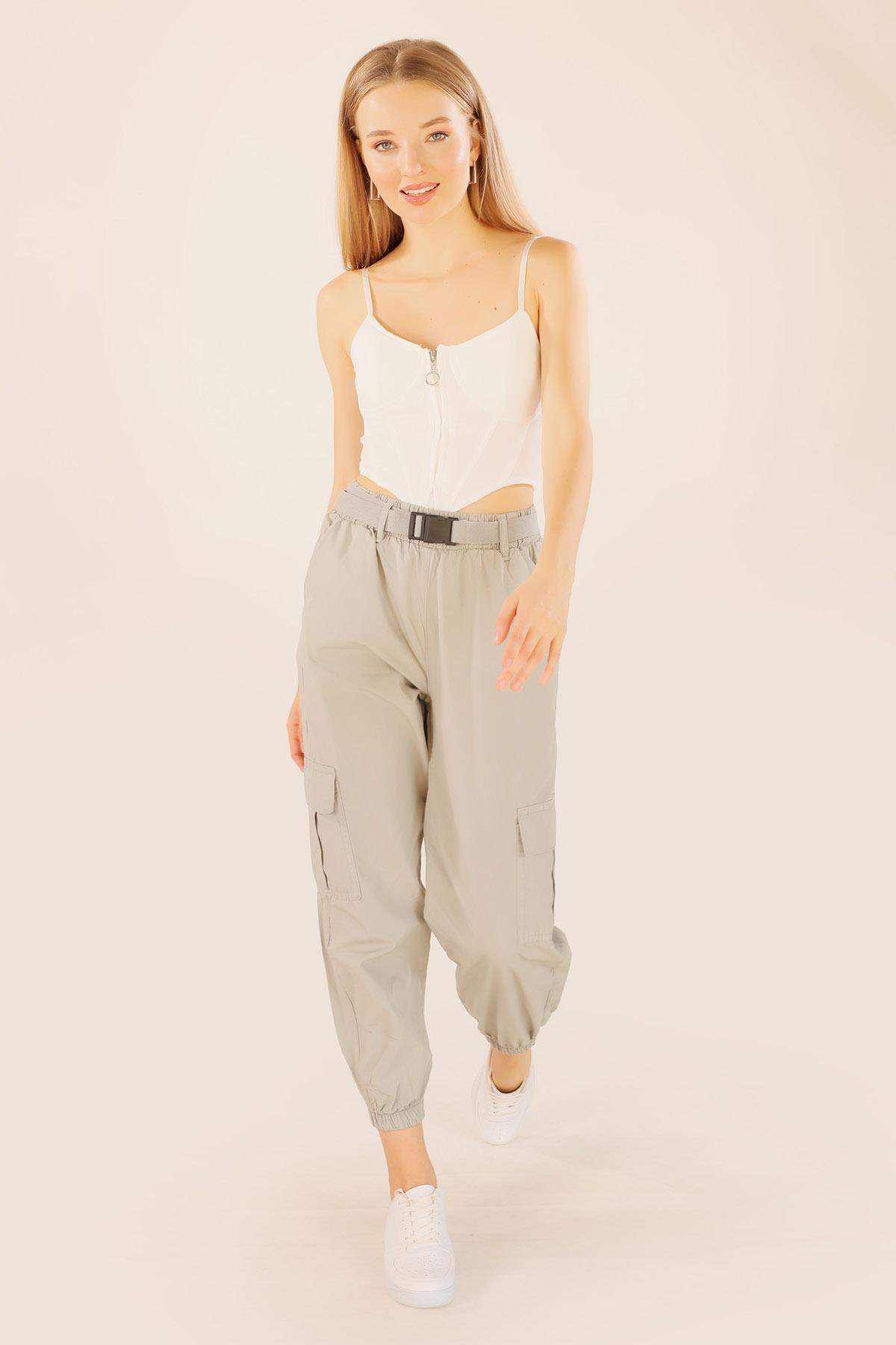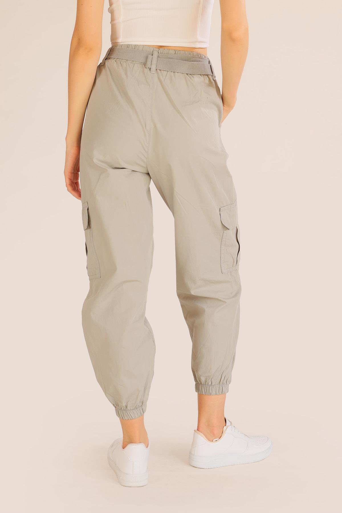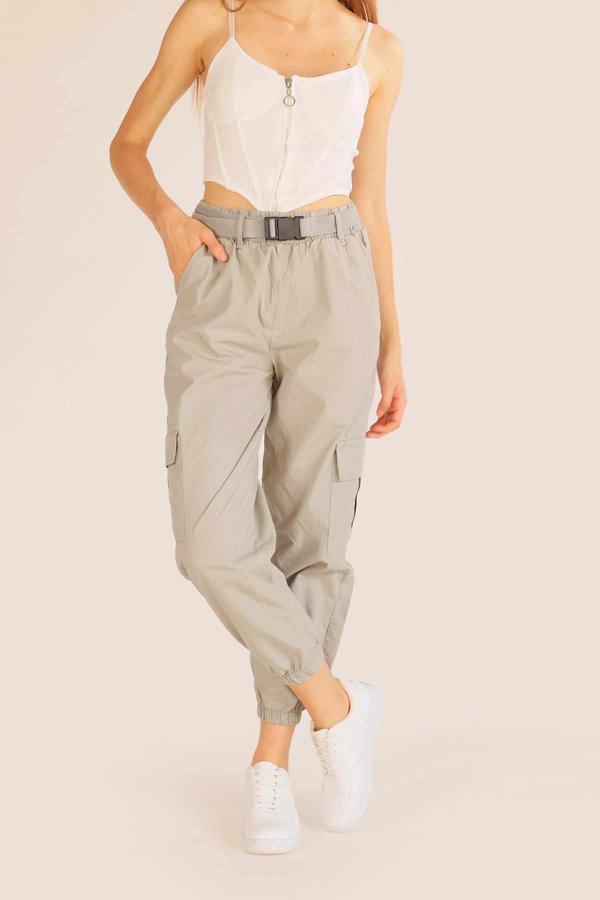 Açık Gri Kemer Detay Paraşüt Pantolon 5031