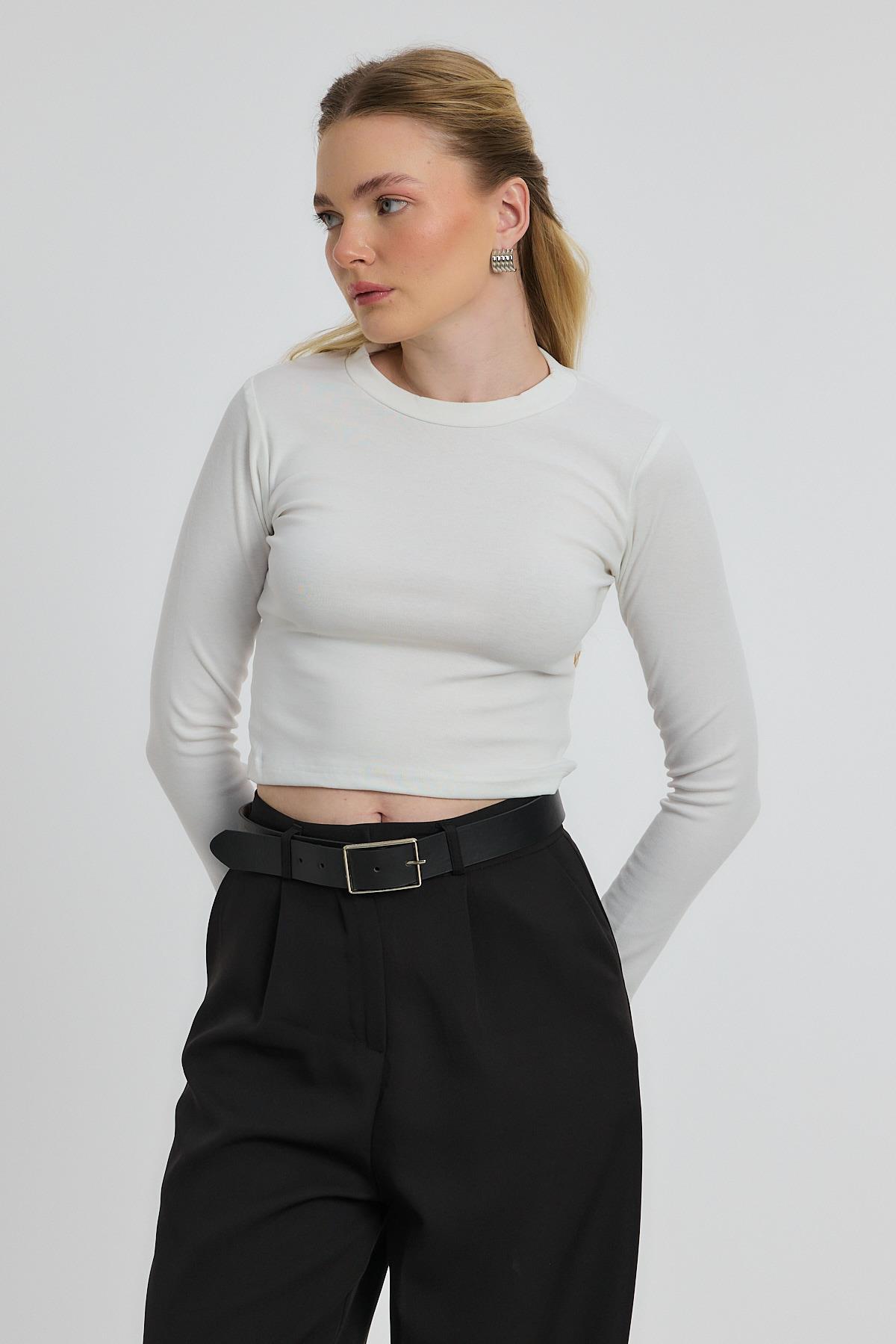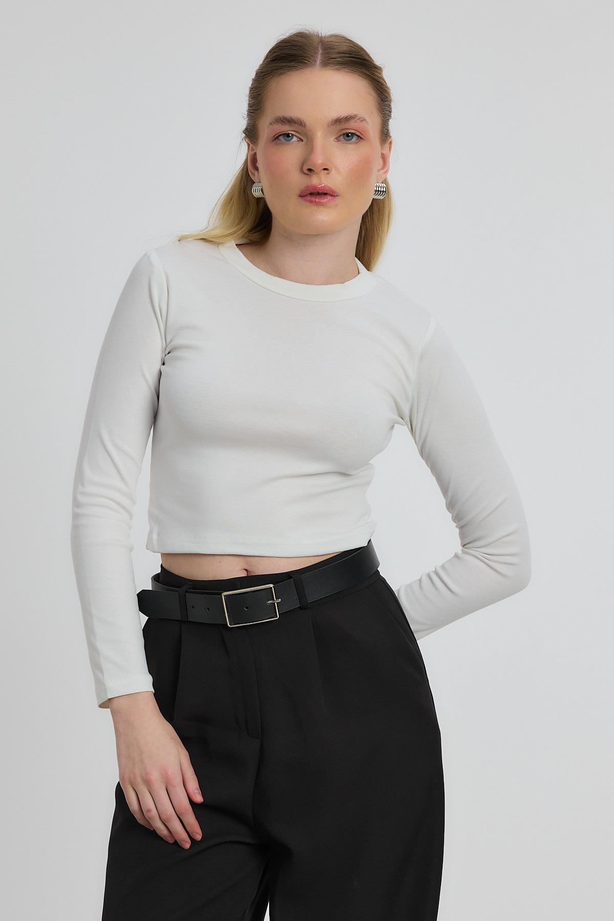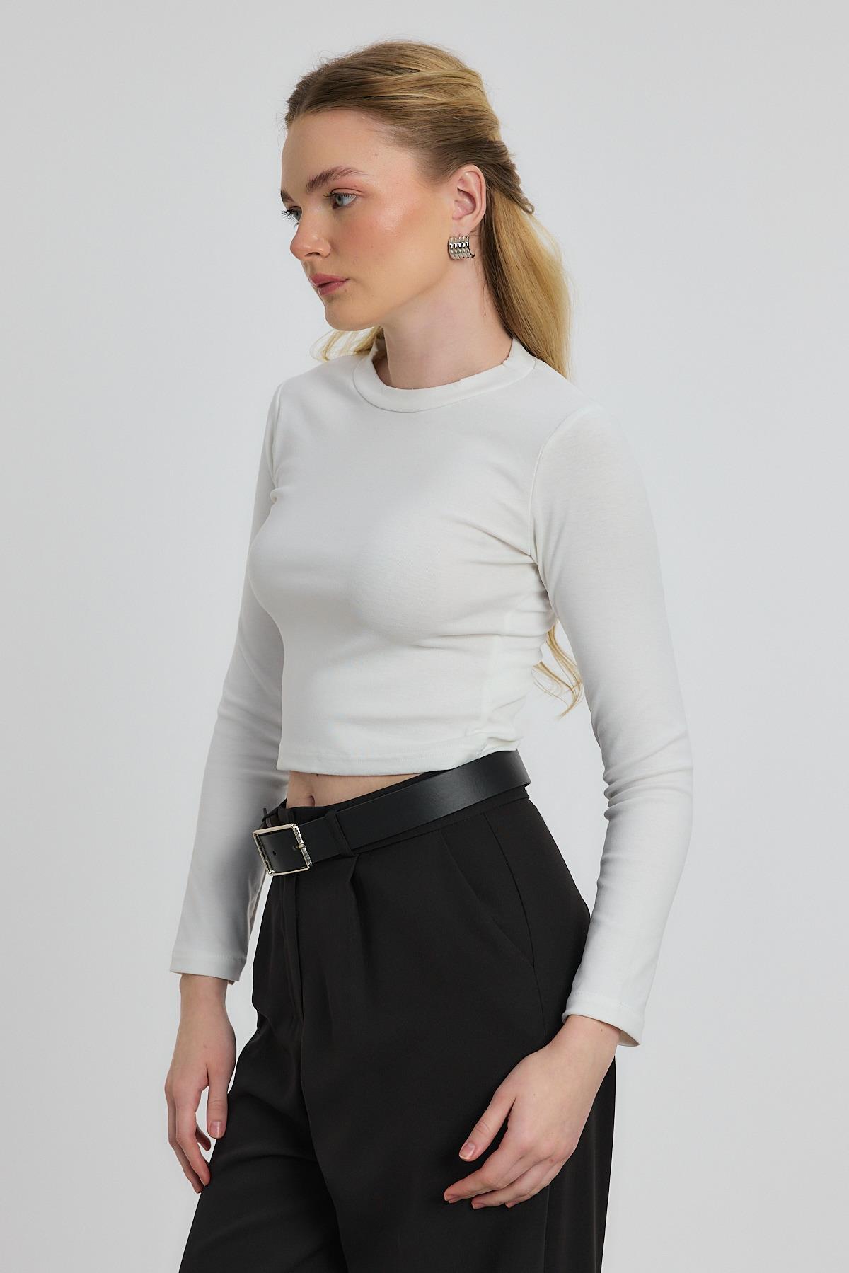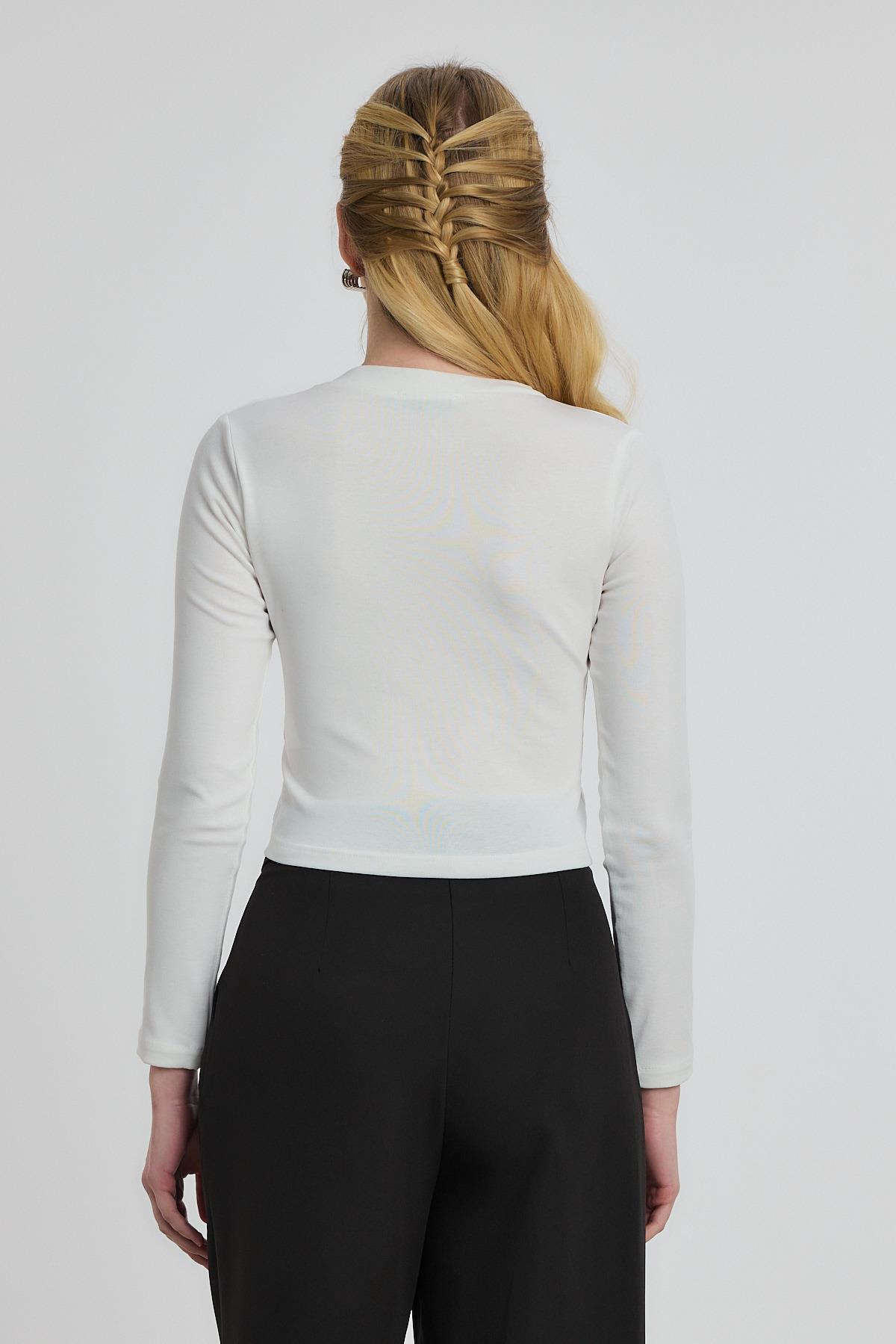 Ekru Bisiklet Yaka Bluz 2132