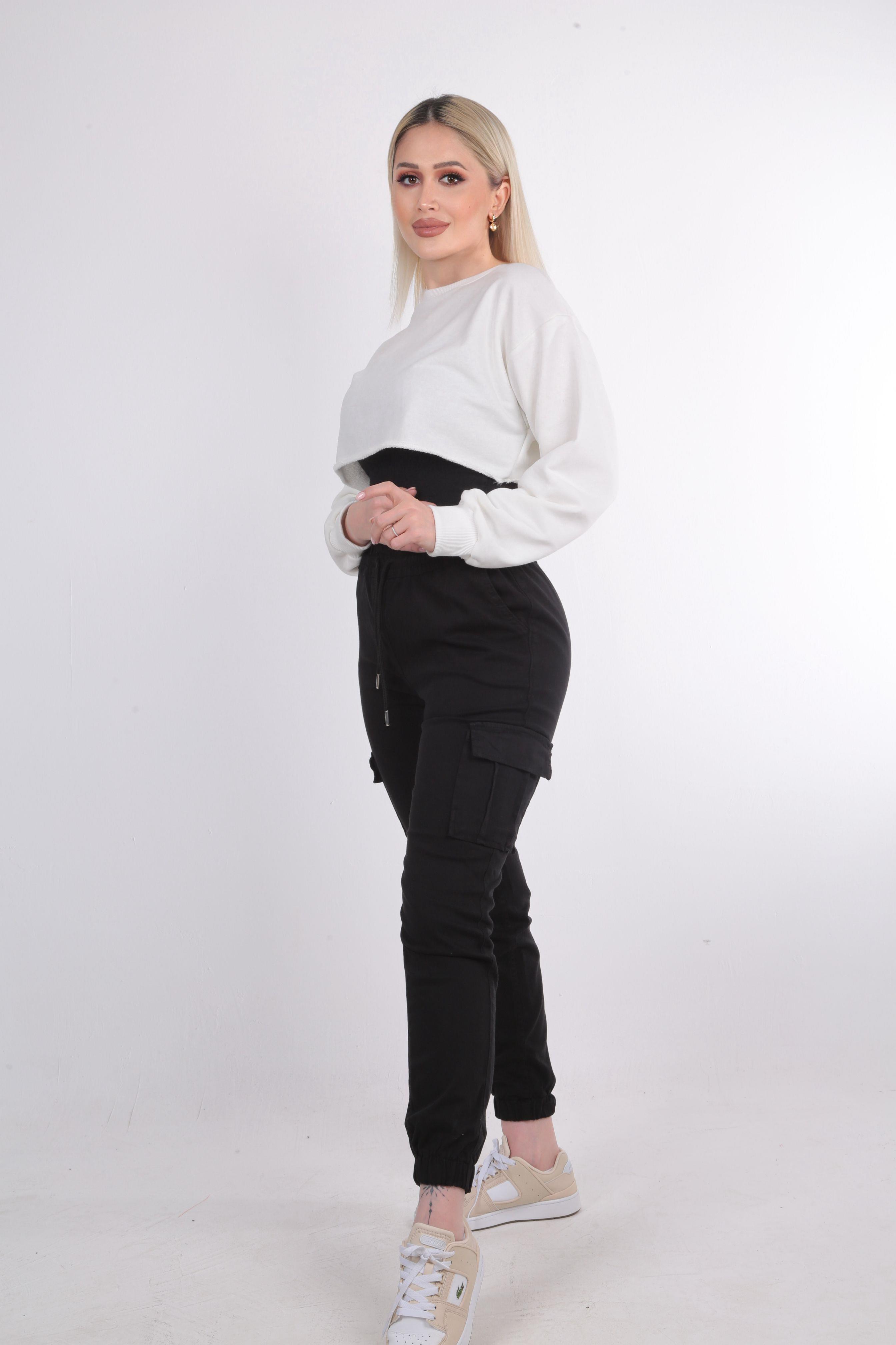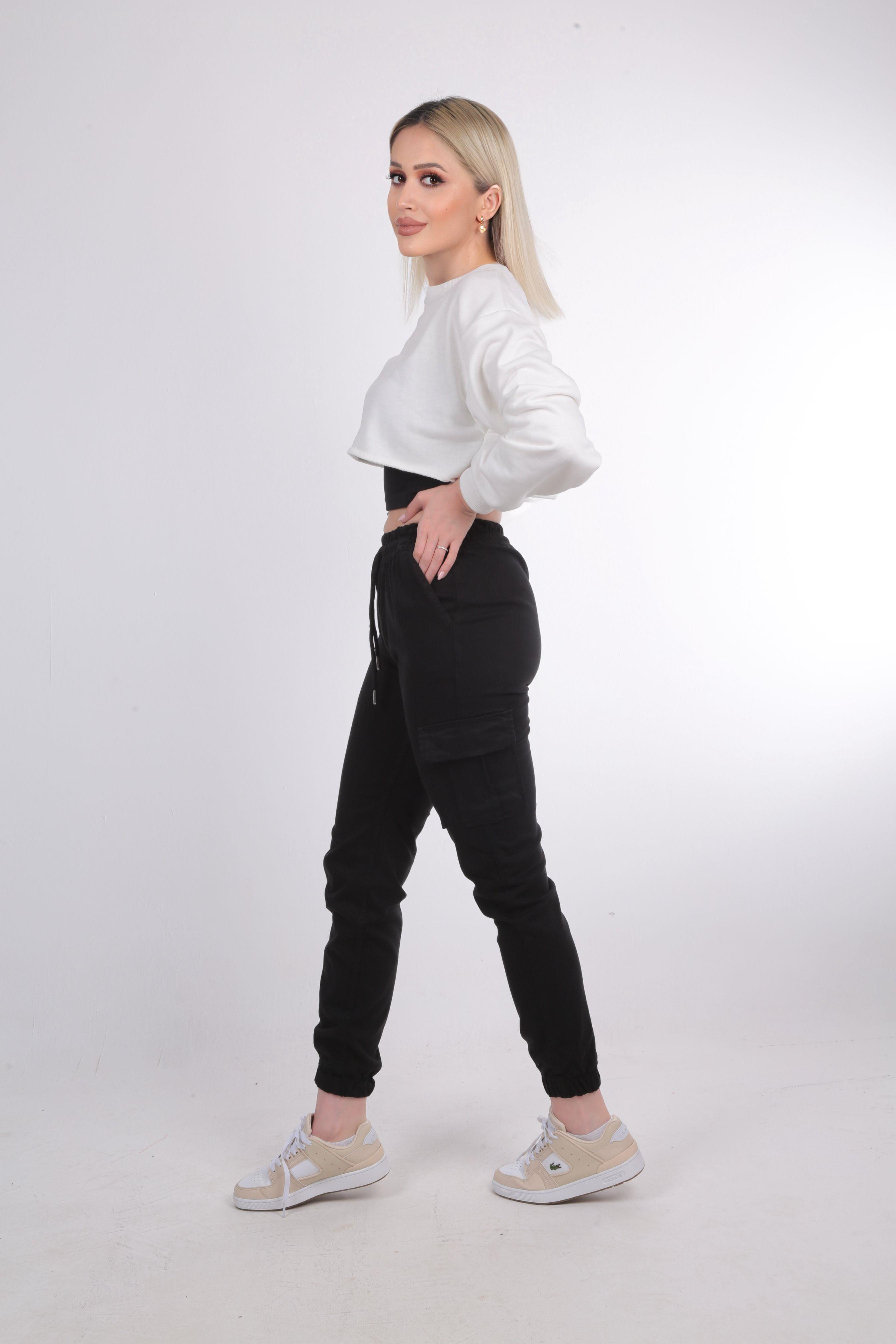 Siyah Paça Lastik Kargo Pantolon 2133