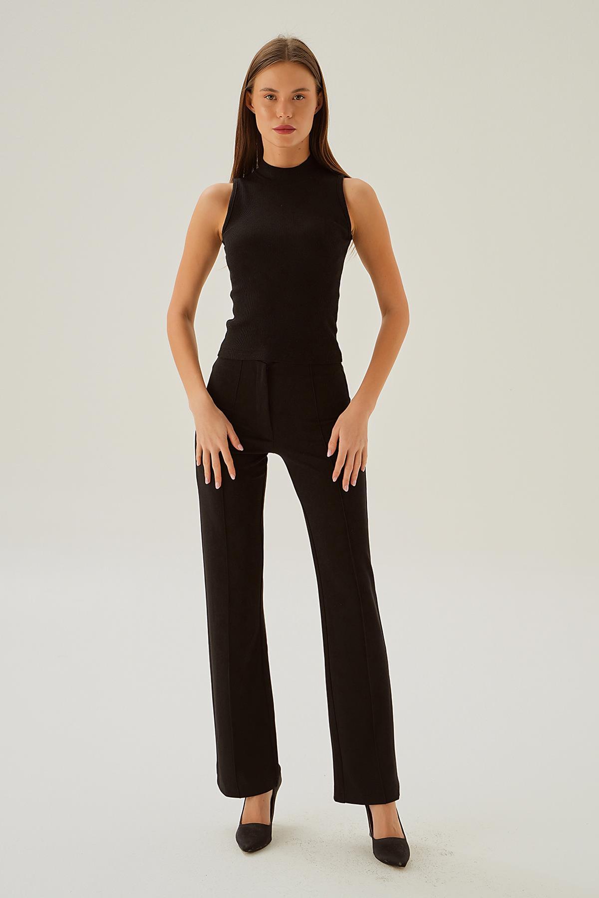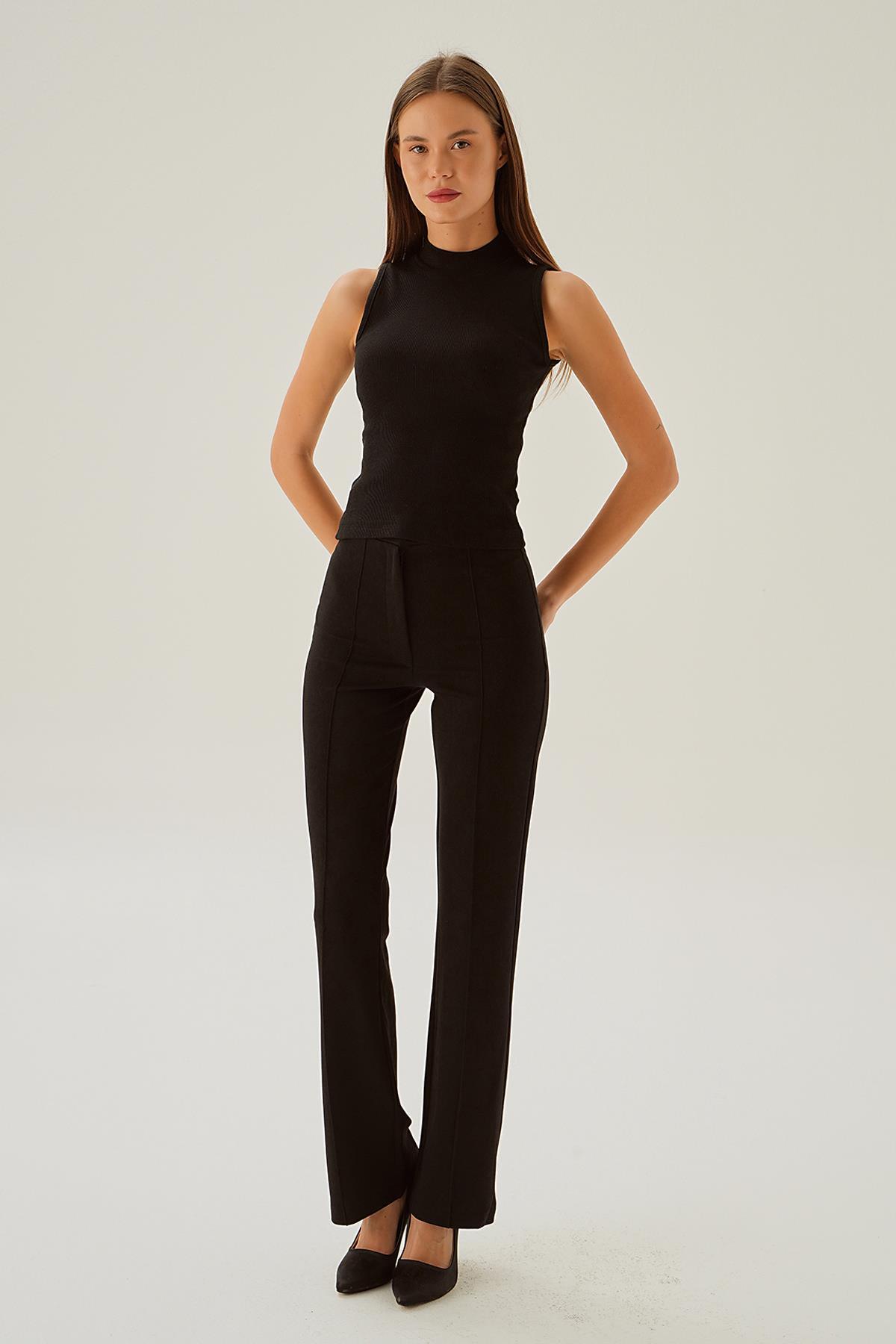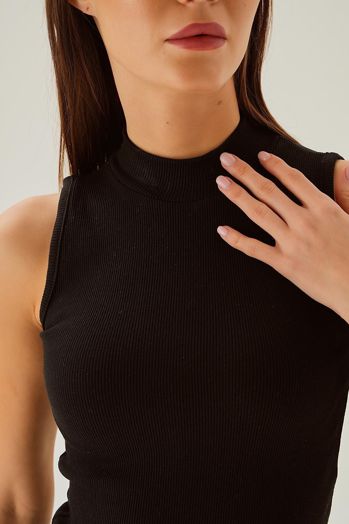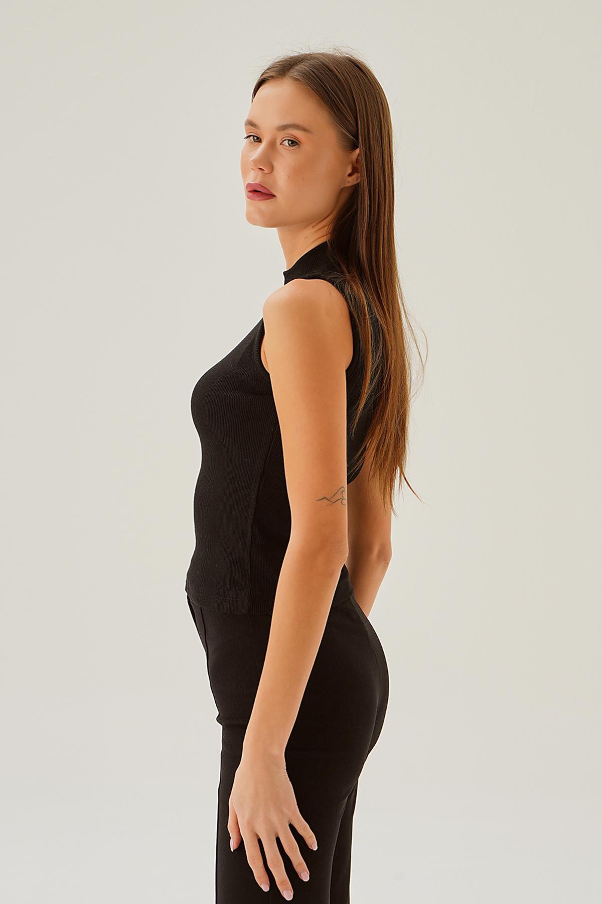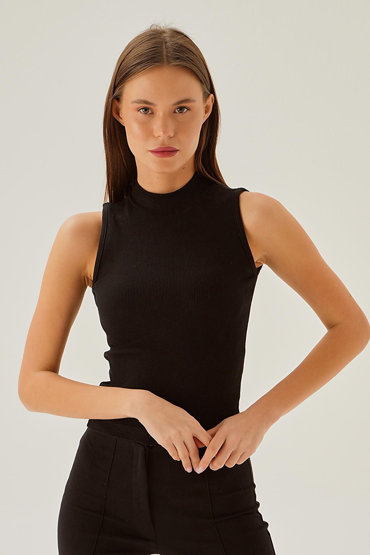 Siyah Balıkçı Yaka Kolsuz Bluz 214
