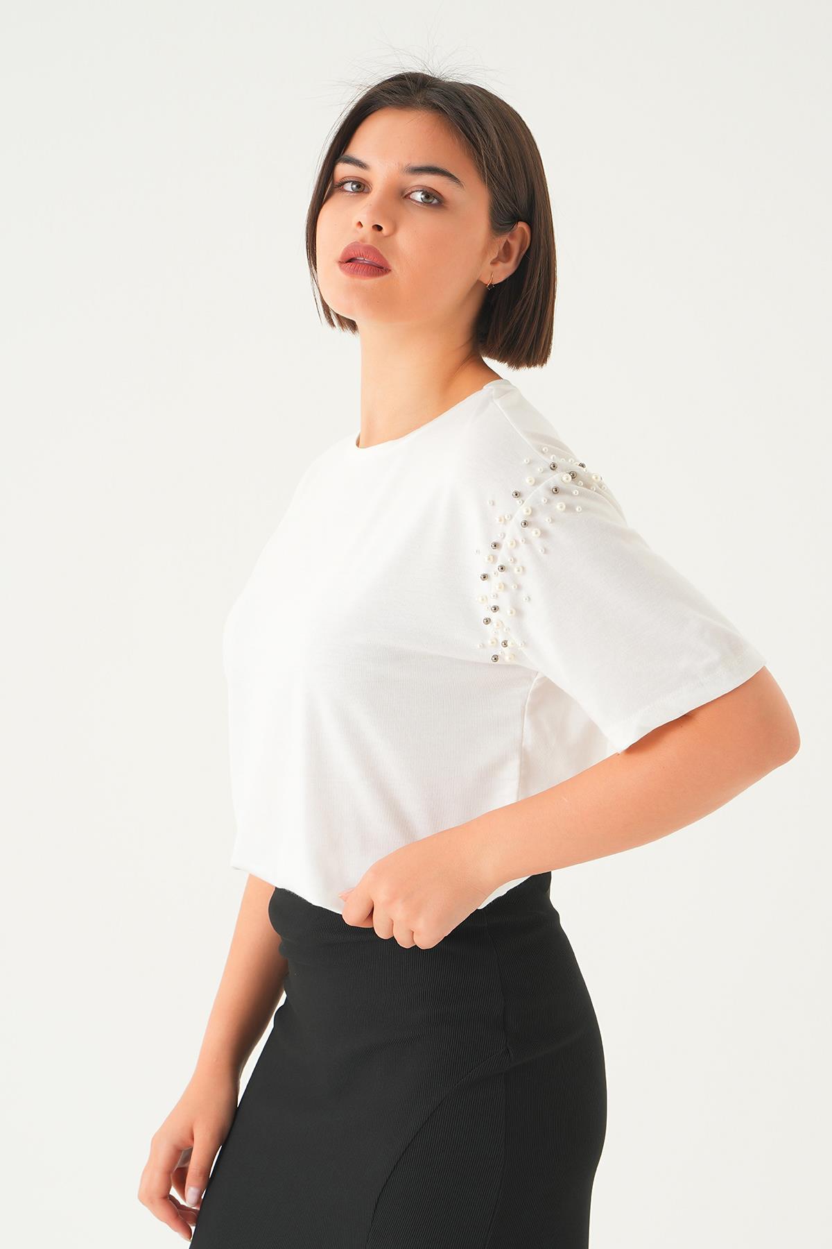 Beyaz Yazı Baskılı Regular Fit Ribana Detaylı Tişört 6325