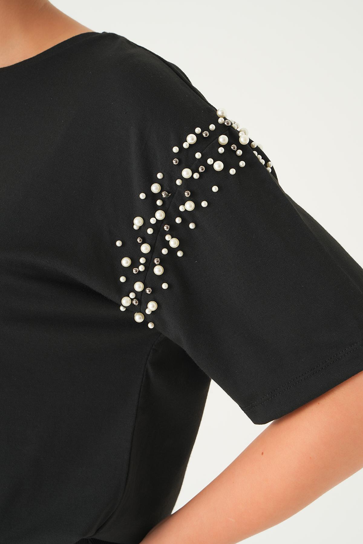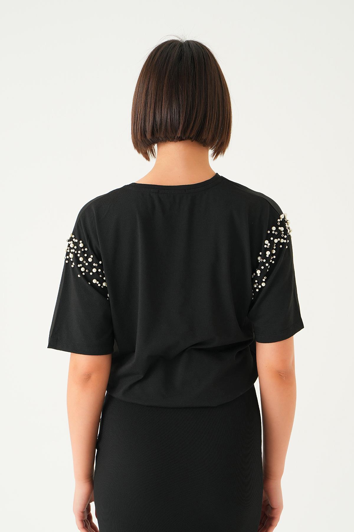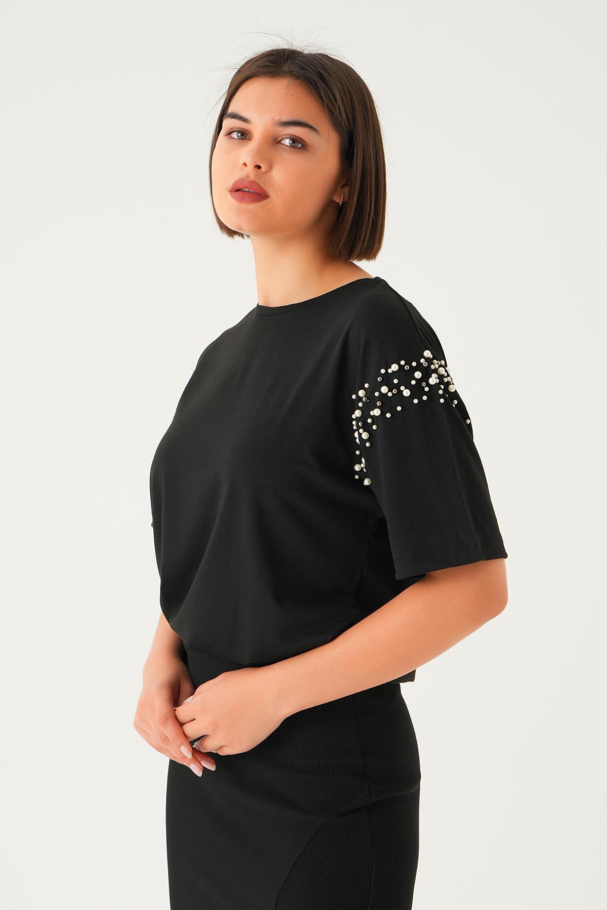 Siyah Kol İncili Tişört 21430