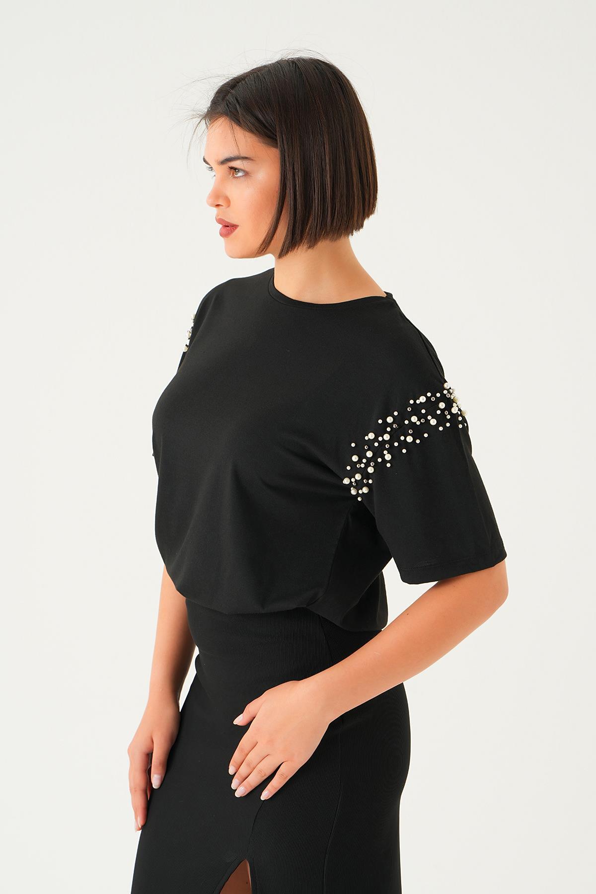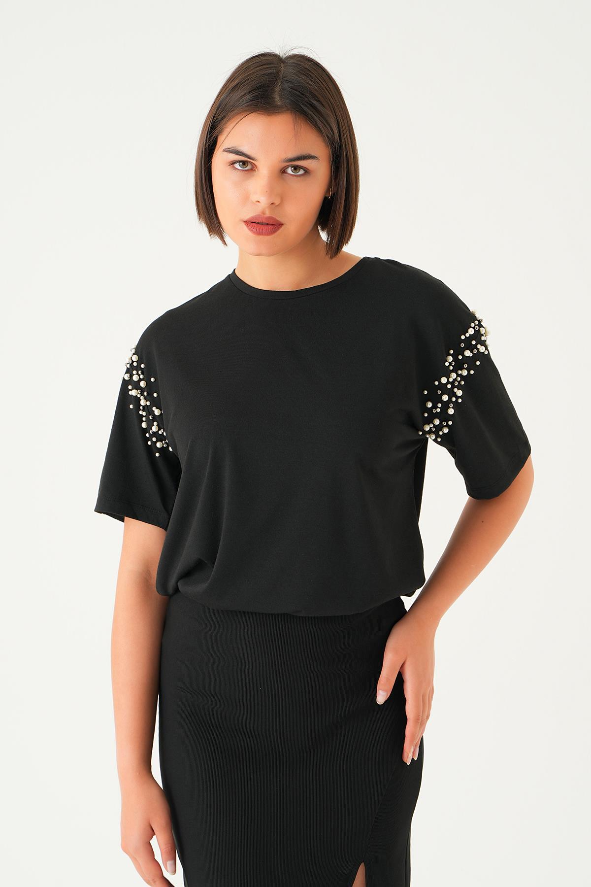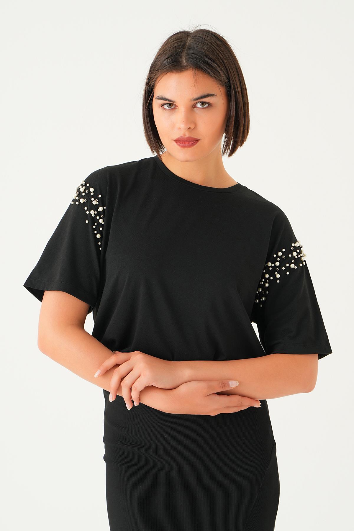 Siyah Kol İncili Tişört 21430