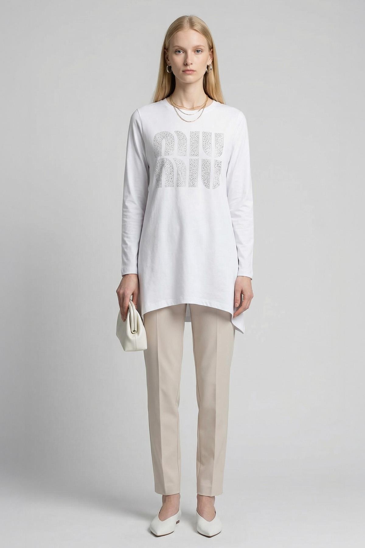 8363A Desenli Bisiklet Yaka Tunik Ekru - RAYS