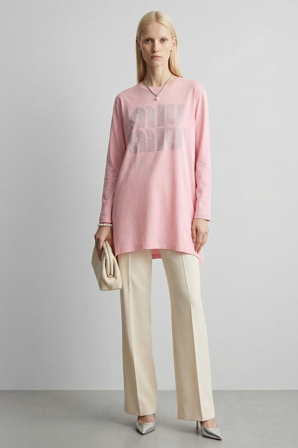 8363A Desenli Bisiklet Yaka Tunik Ekru - RAYS