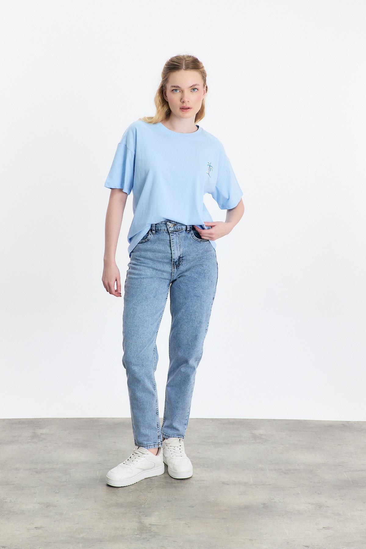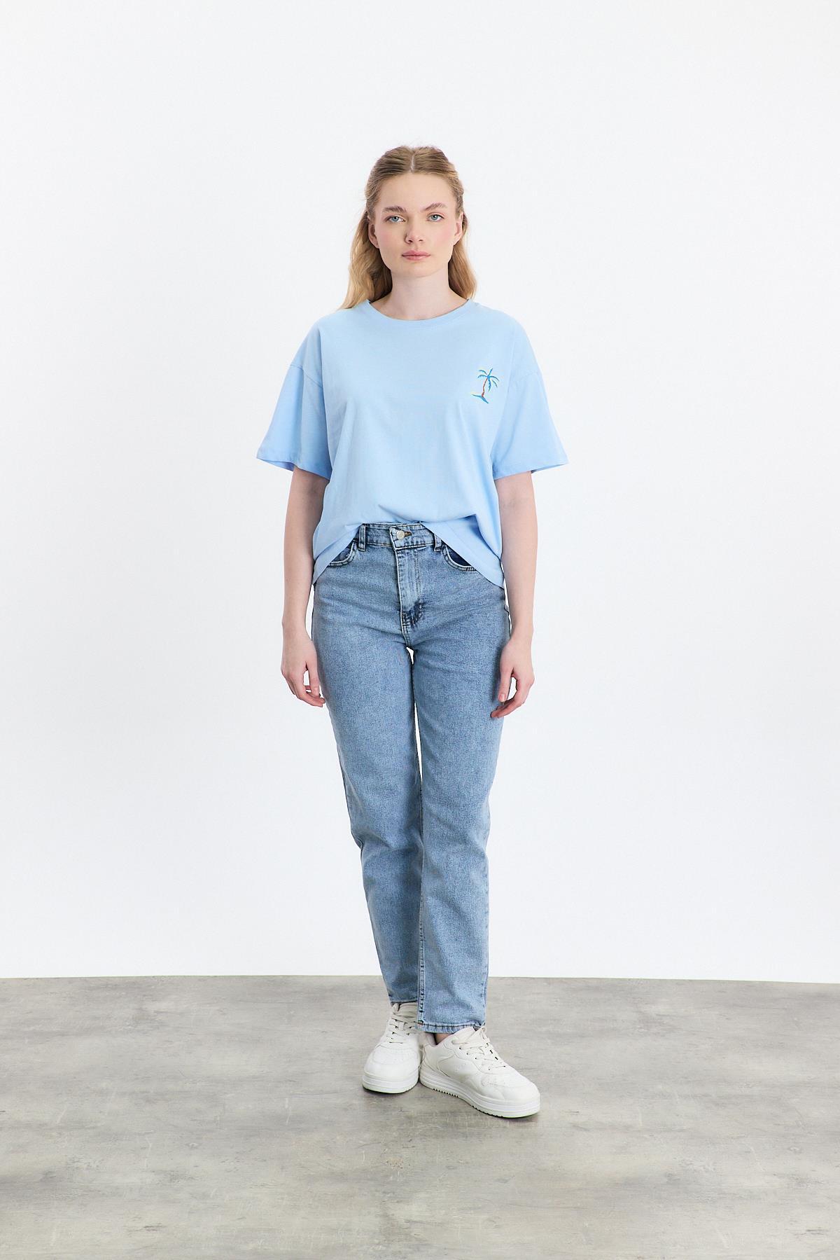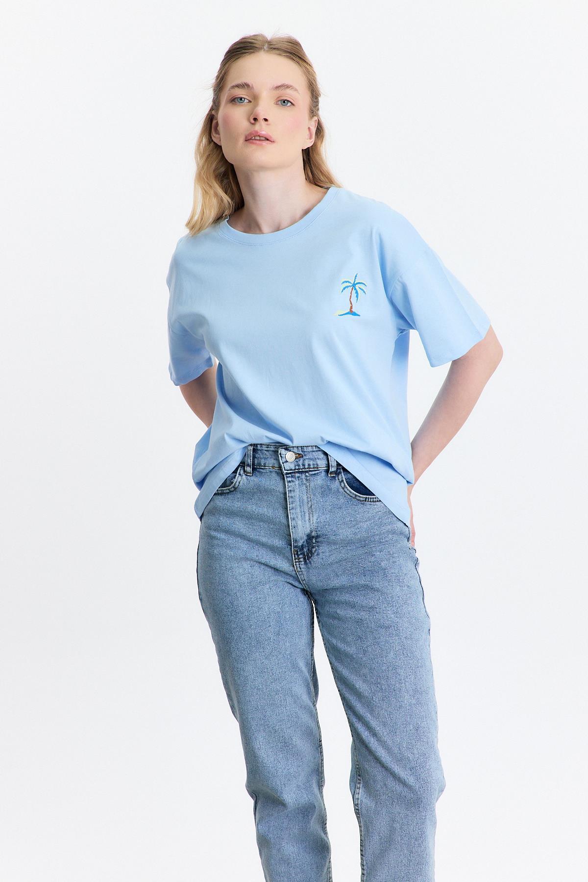 Mavi Bisiklet Yaka Nakışlı Tişört 2150-16M