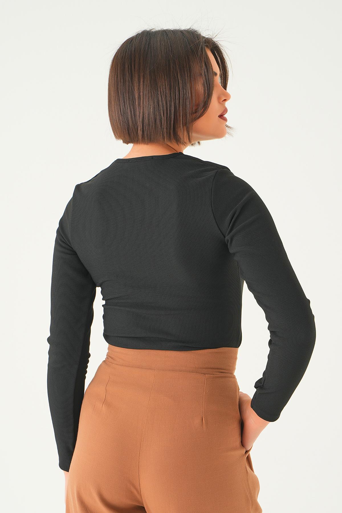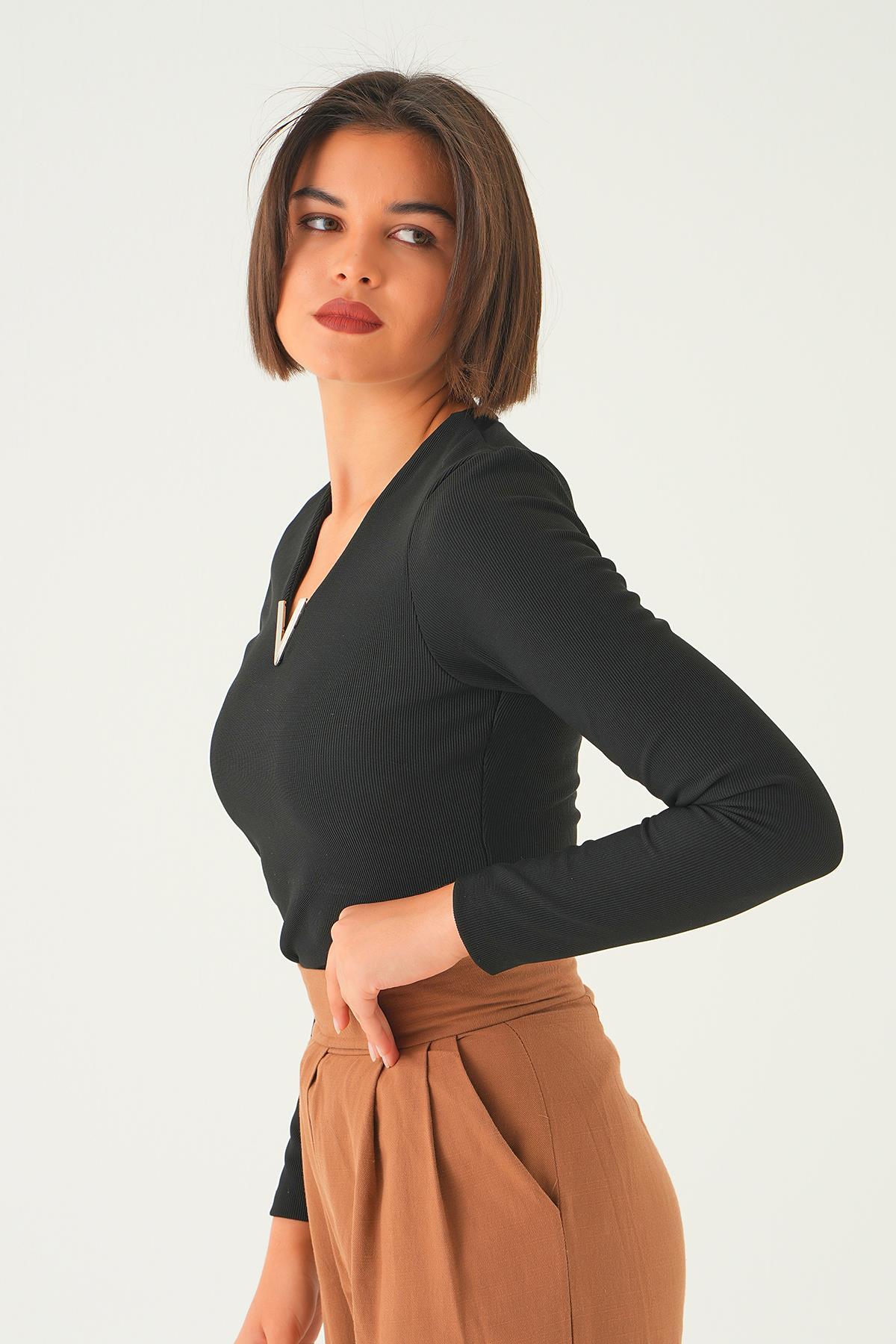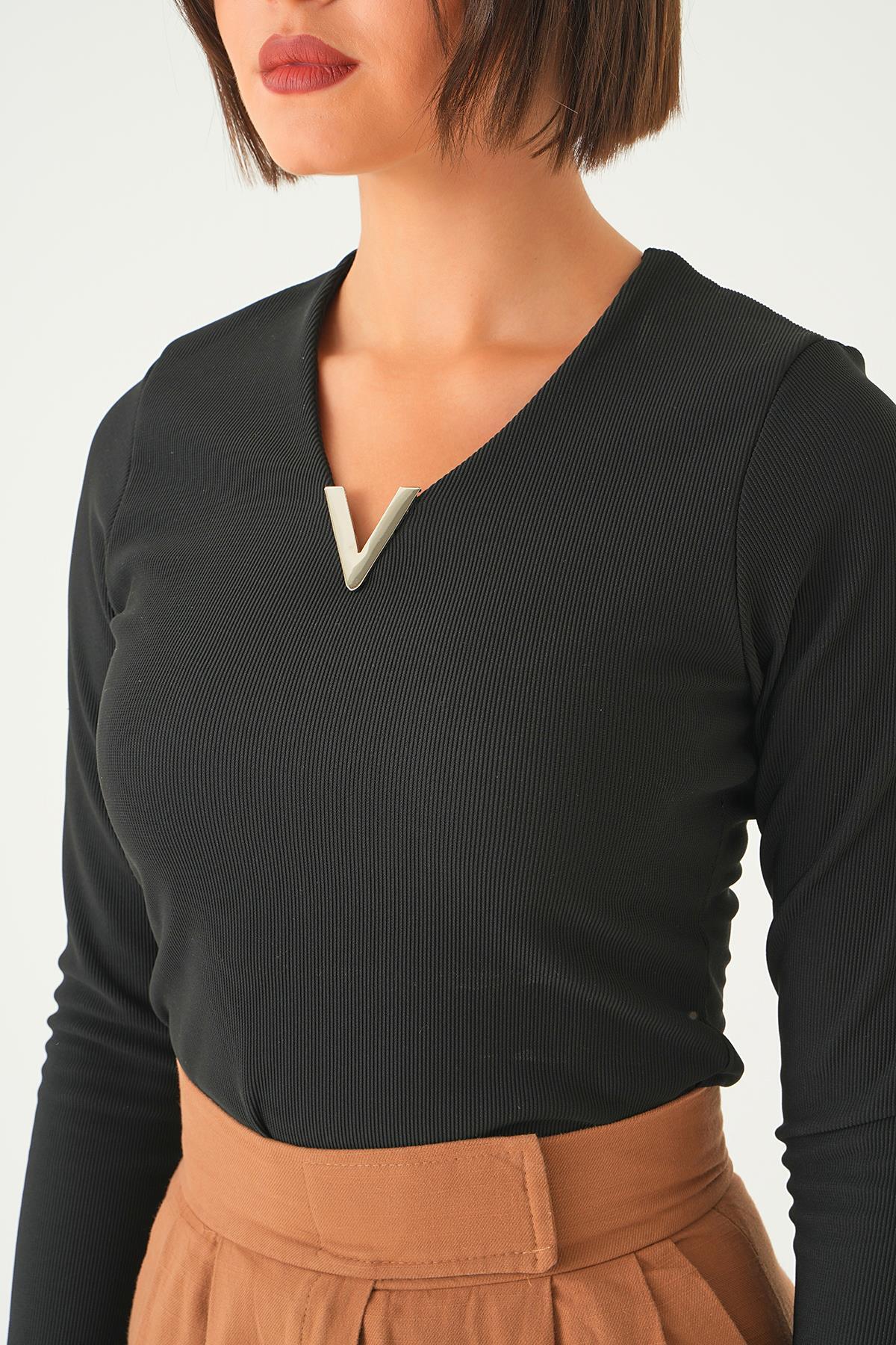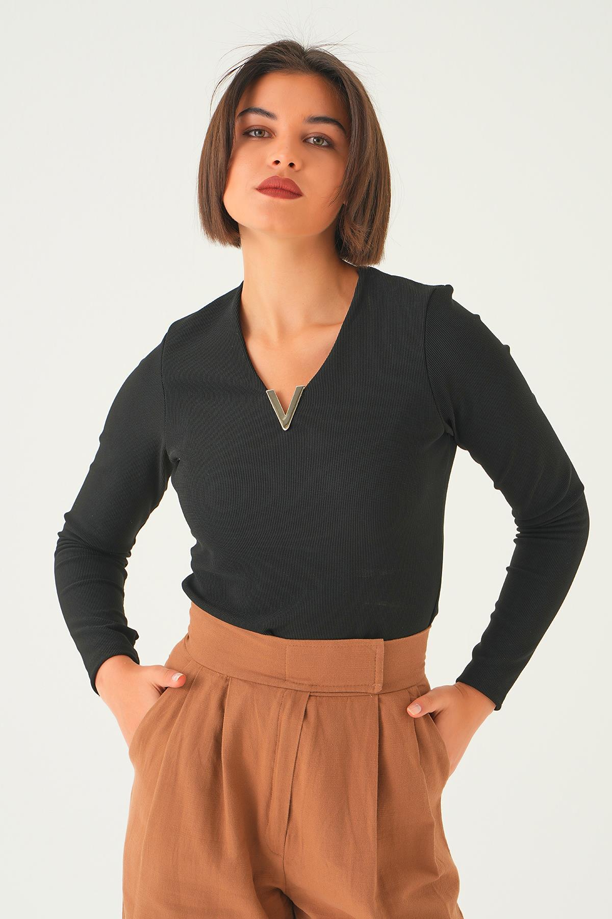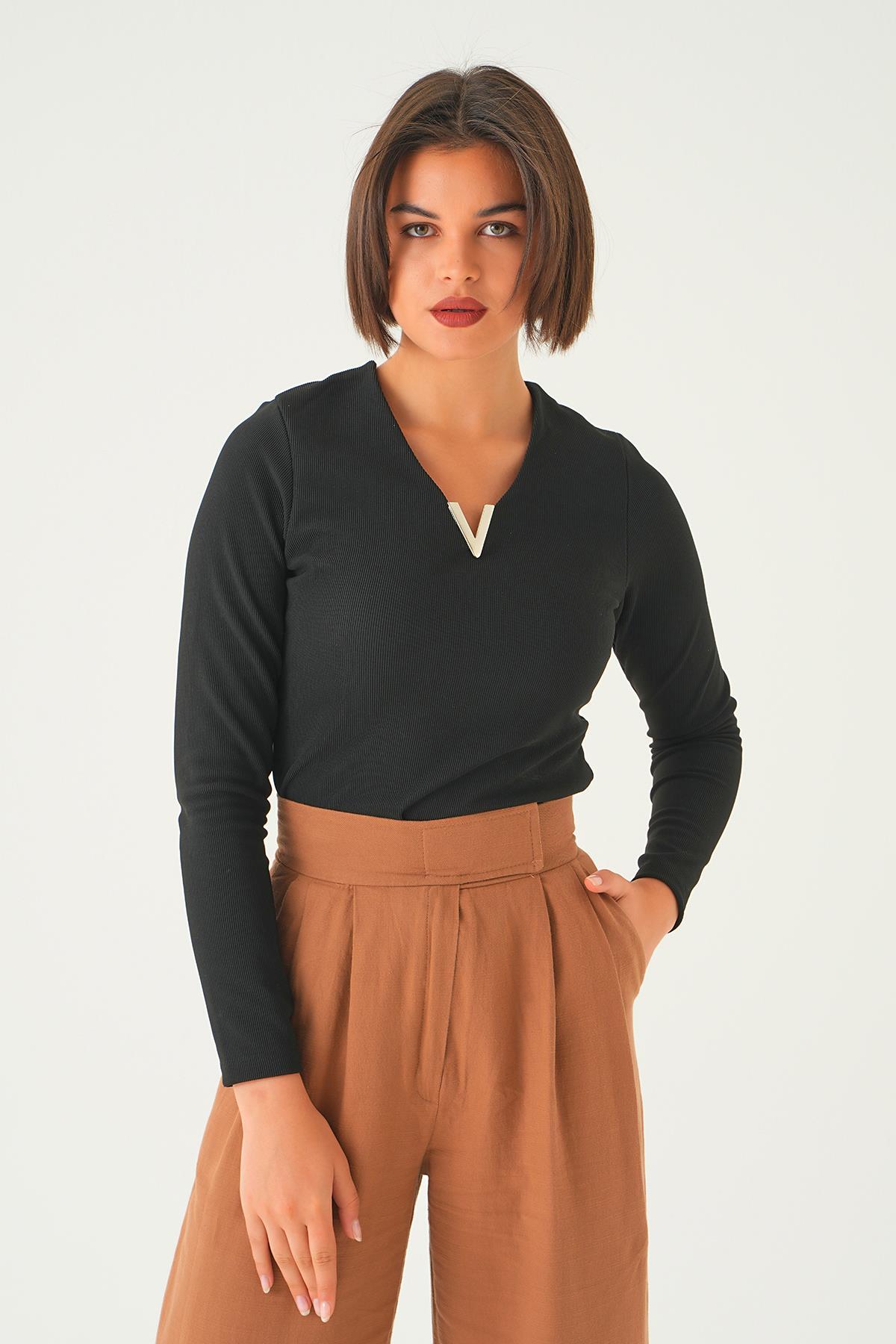Siyah Yaka Aksesuarlı Bluz 21502